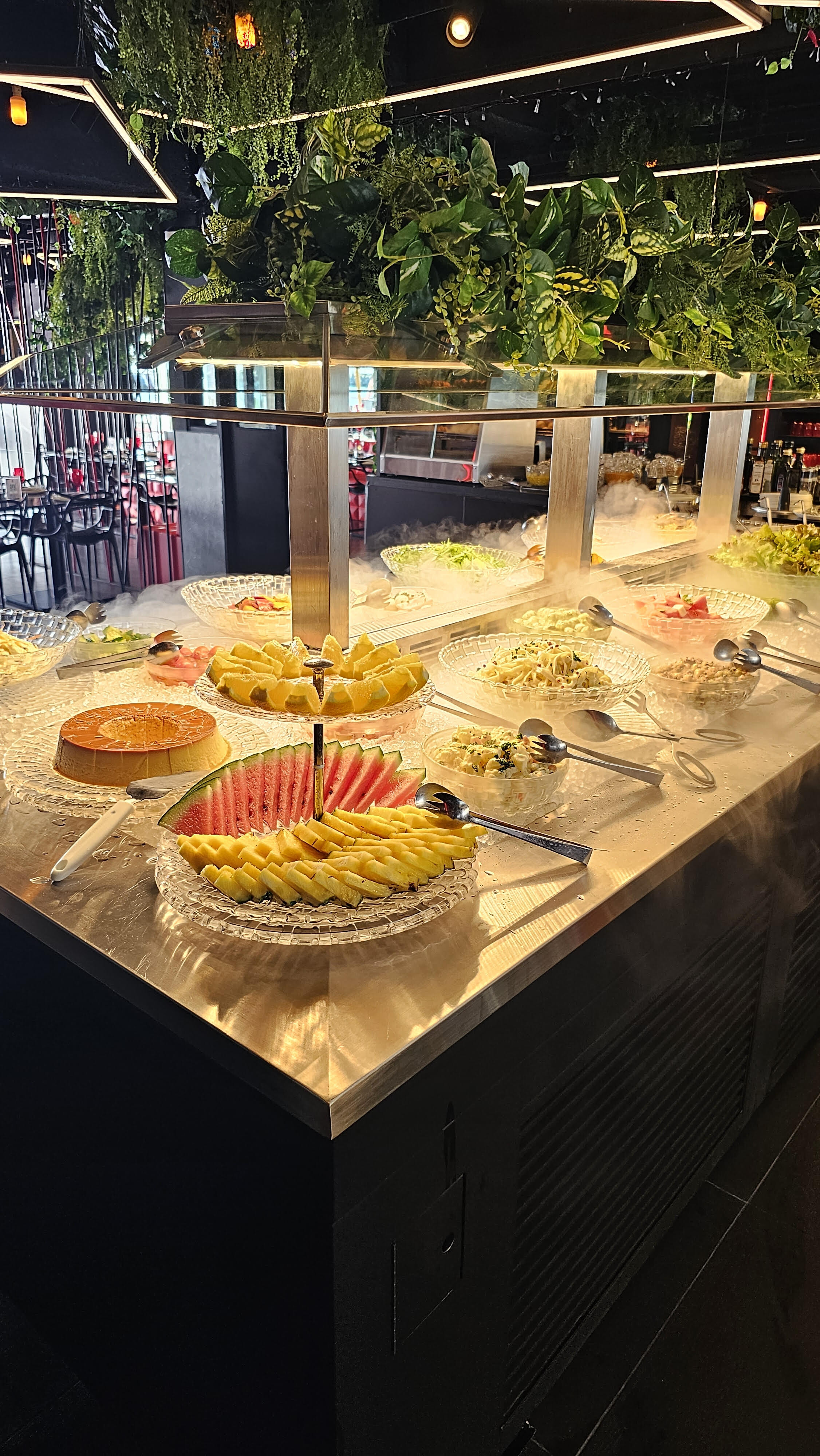 アペタイザーとなるサラダバーの料理とドリンクで乾杯したちょうど良い頃合いにお肉の登場!!