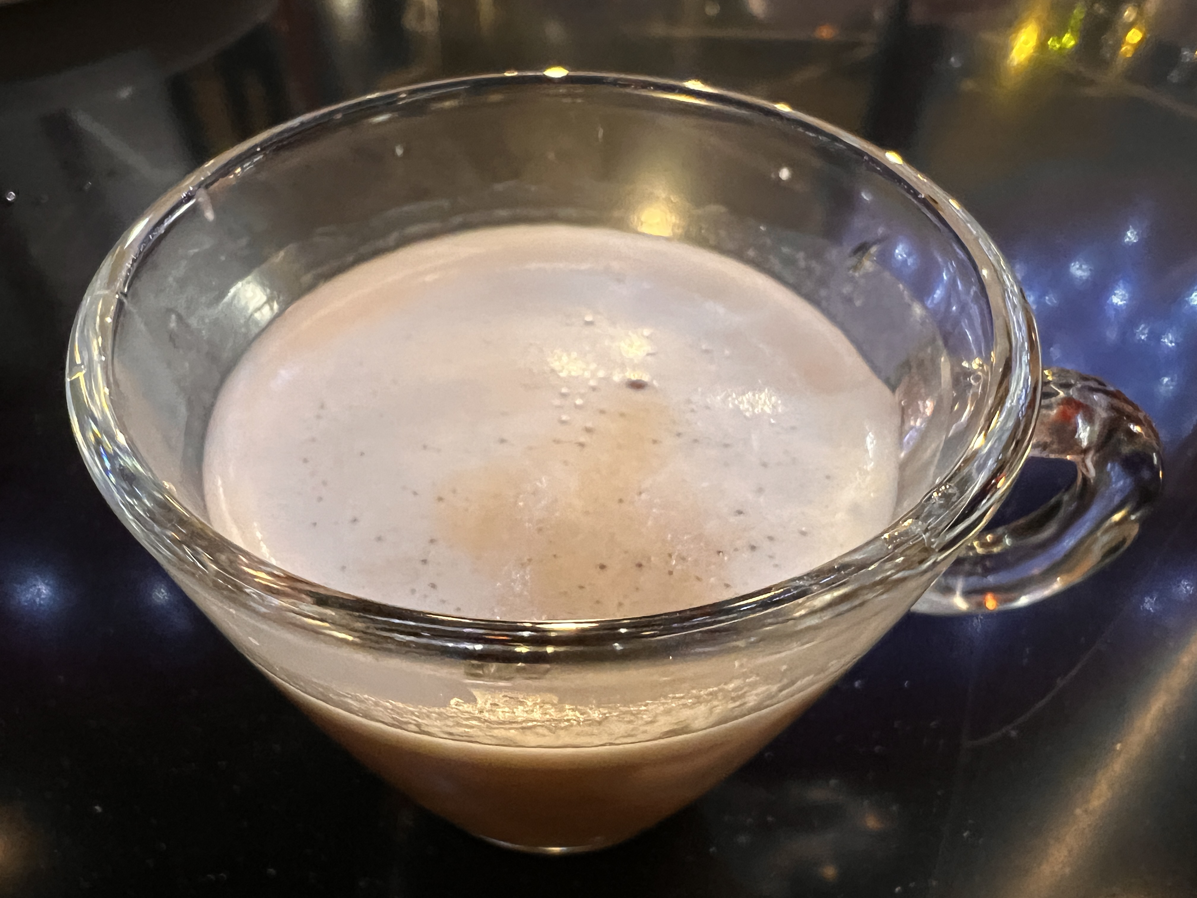 締めは食べ放題に含まれているドリンクバーからホットカフェオレをいただきました。