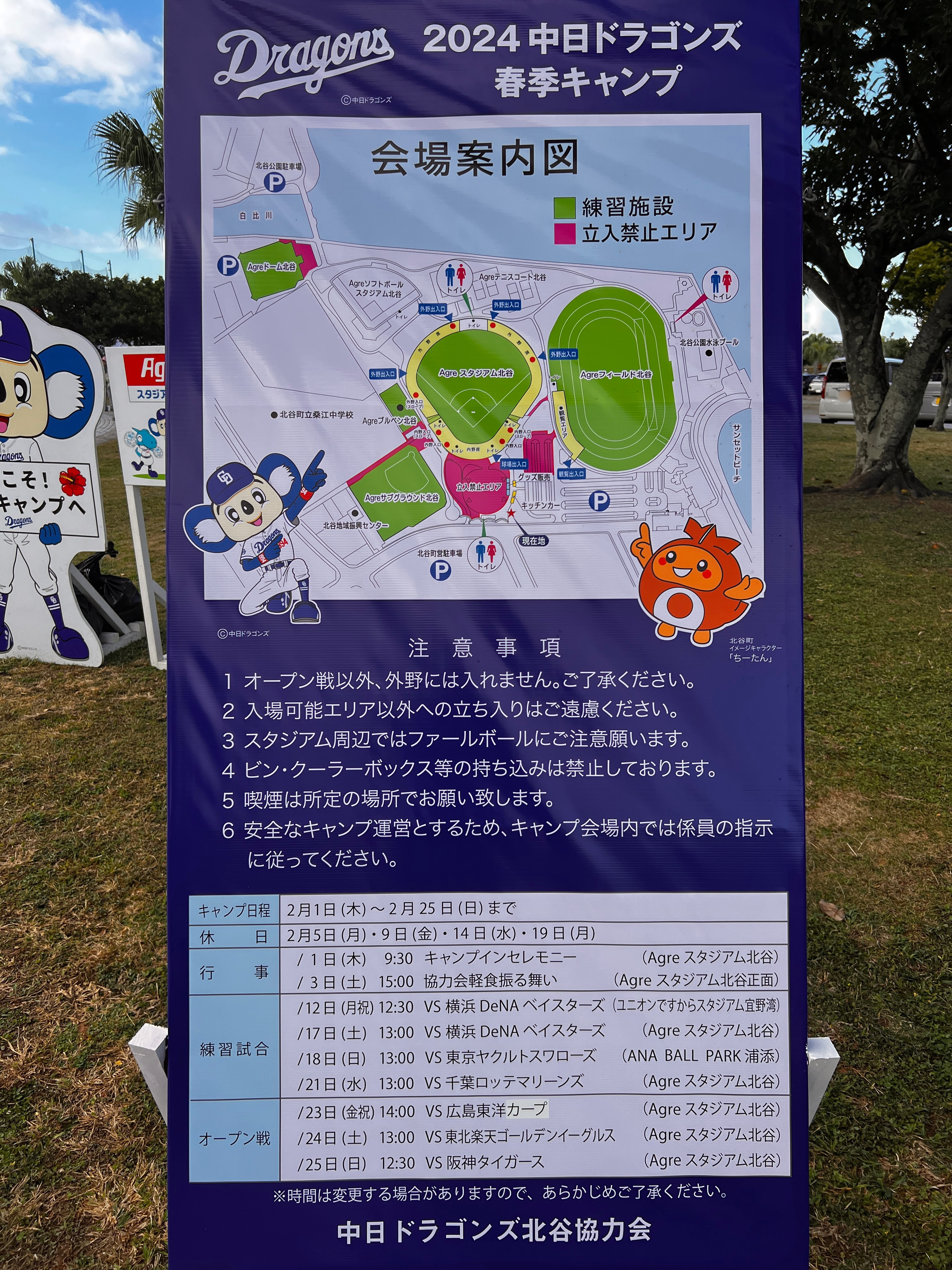北谷町美浜の球場「Agreスタジアム北谷」にて、プロ野球団・中日ドラゴンズの2024年春季キャンプが2月1日(木)より始まりました!