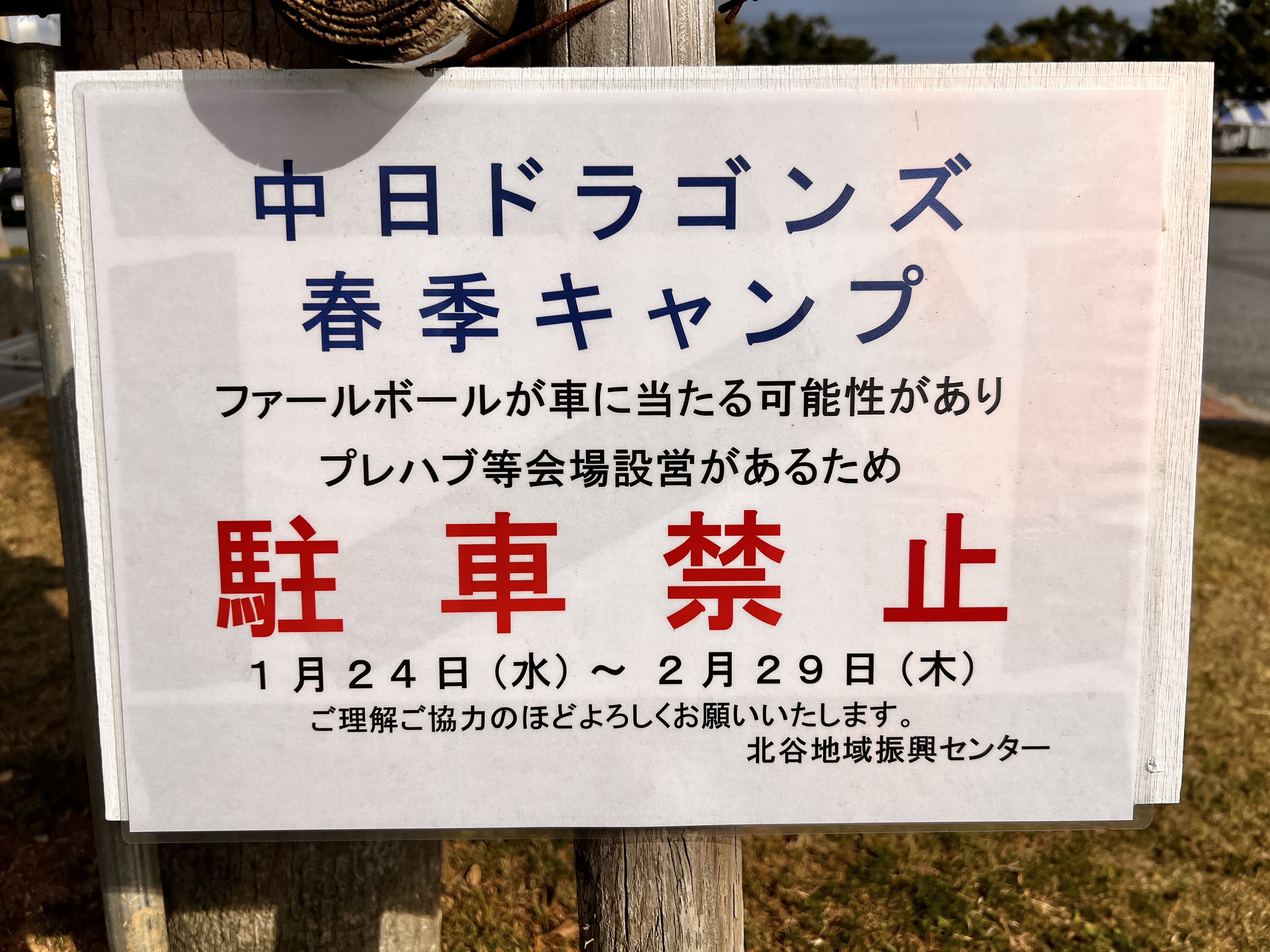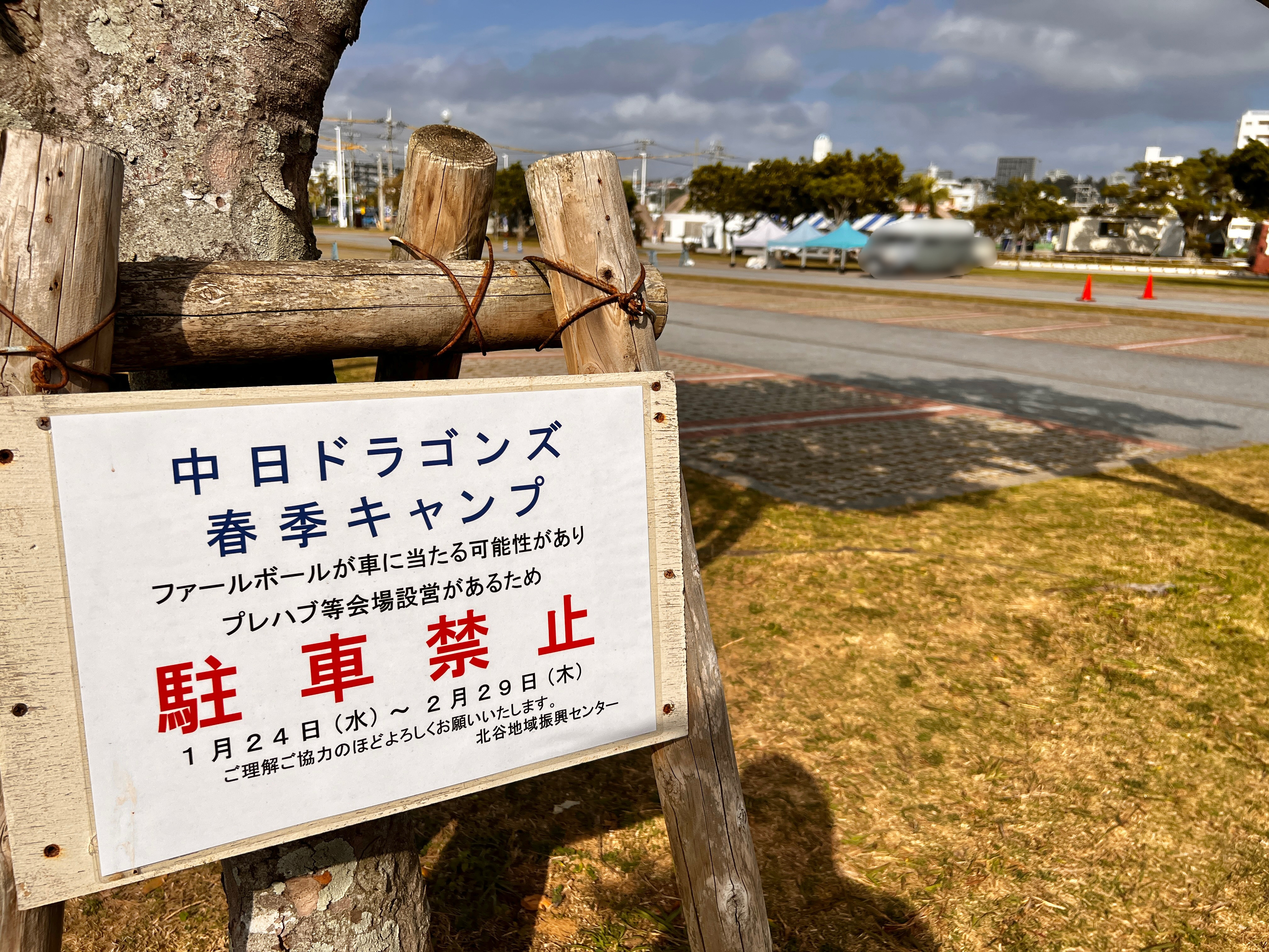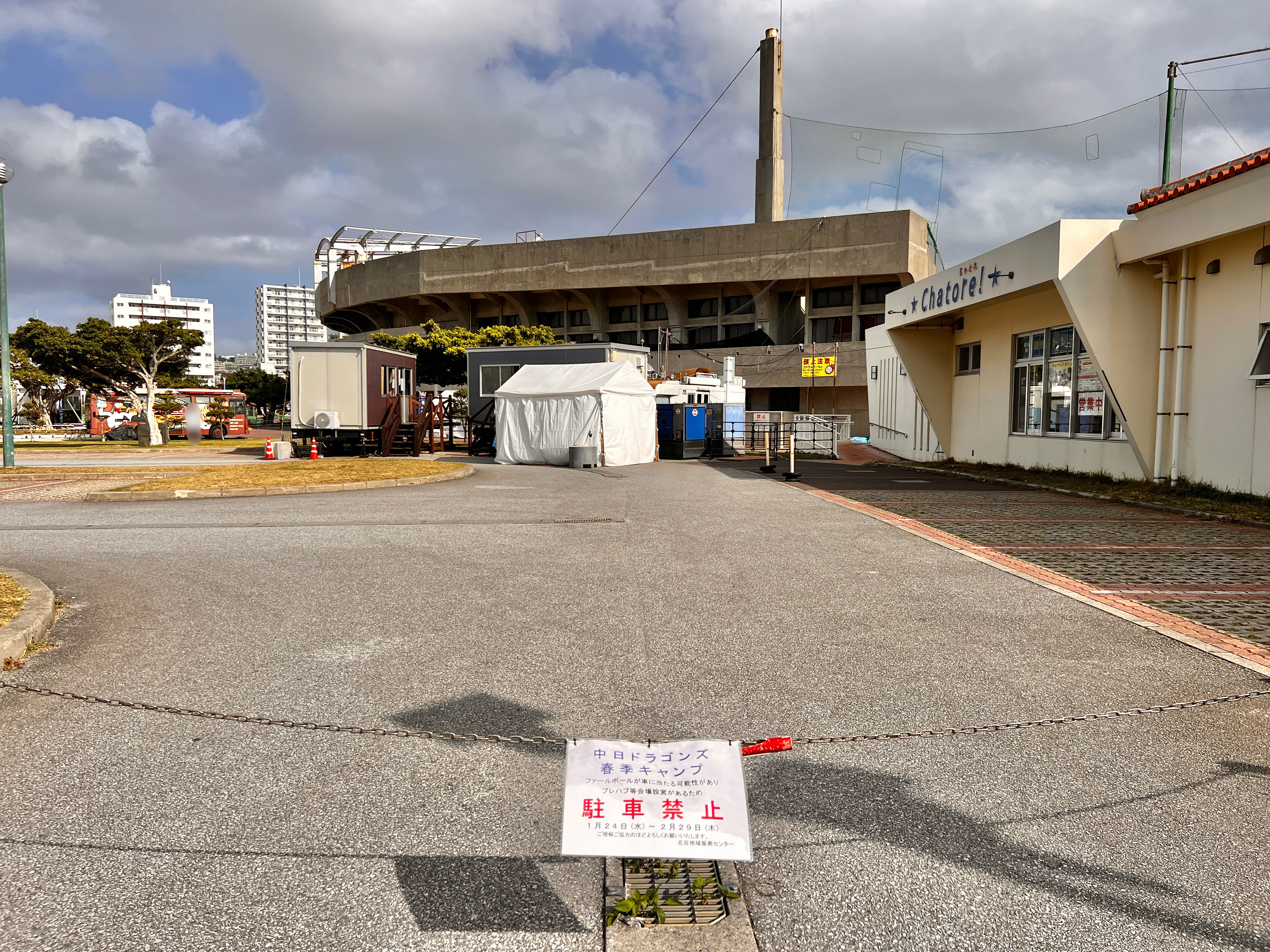 北谷公園の北谷町健康トレーニングセンター(チャトレ)前の駐車場が、現在駐車禁止になっています。