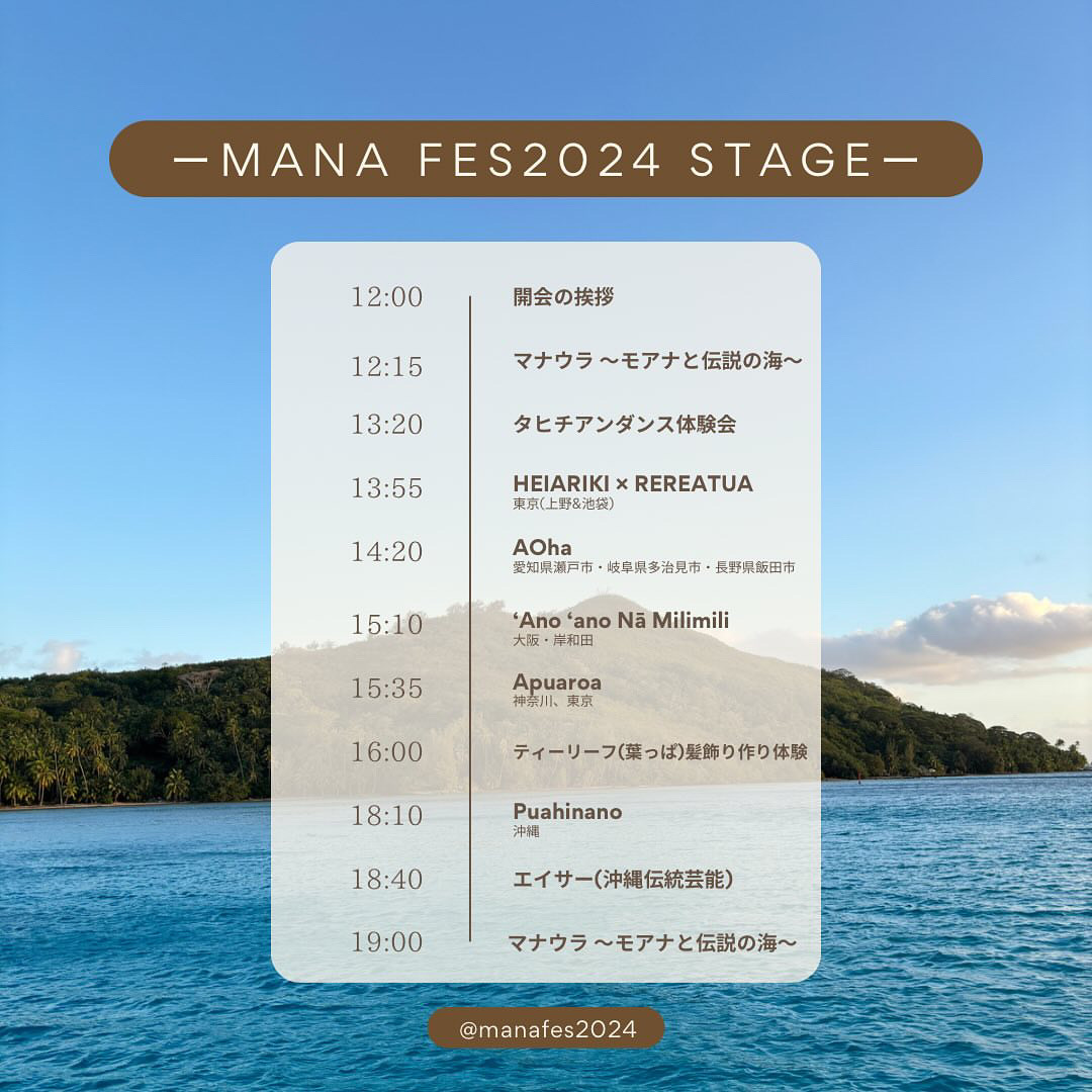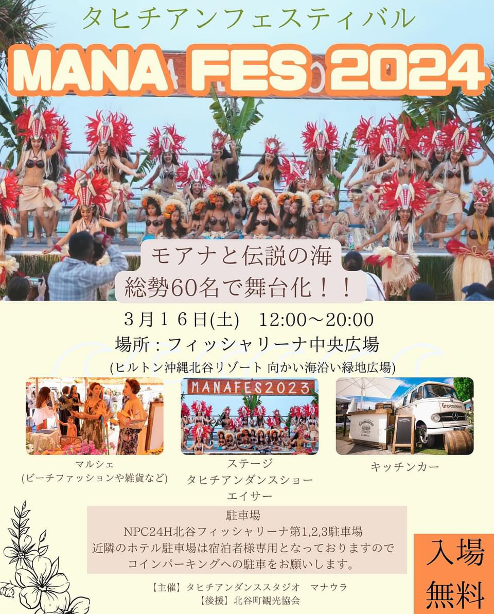 2024年3月16日(土)に、フィッシャリーナ中央広場にてタヒチアンフェスティバル MANA FES 2024が開催されますよー!