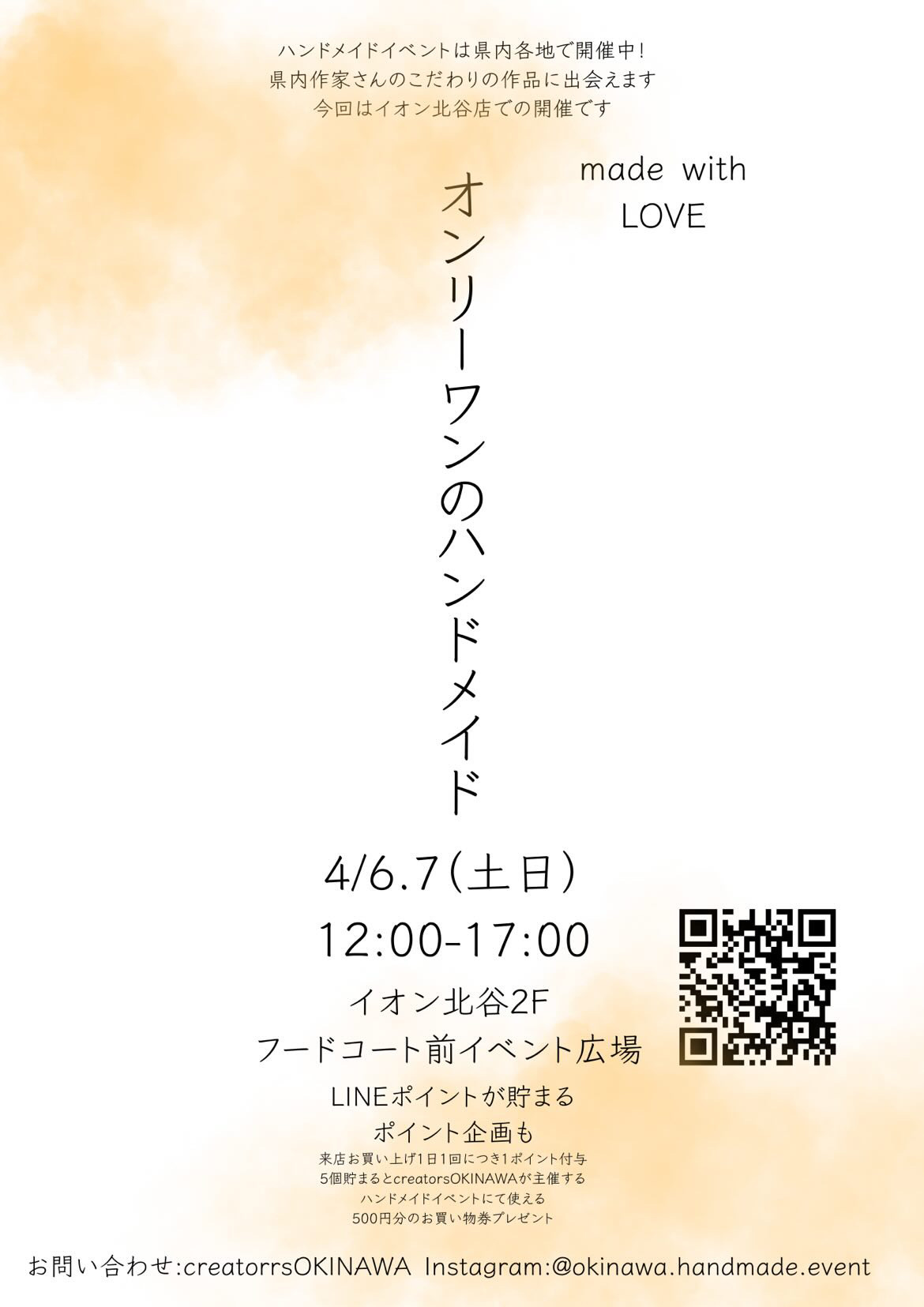イオン北谷店の2階で2024年4月6日(土)・7日(日)の2日間、ハンドメイドイベントが開催されますよー!