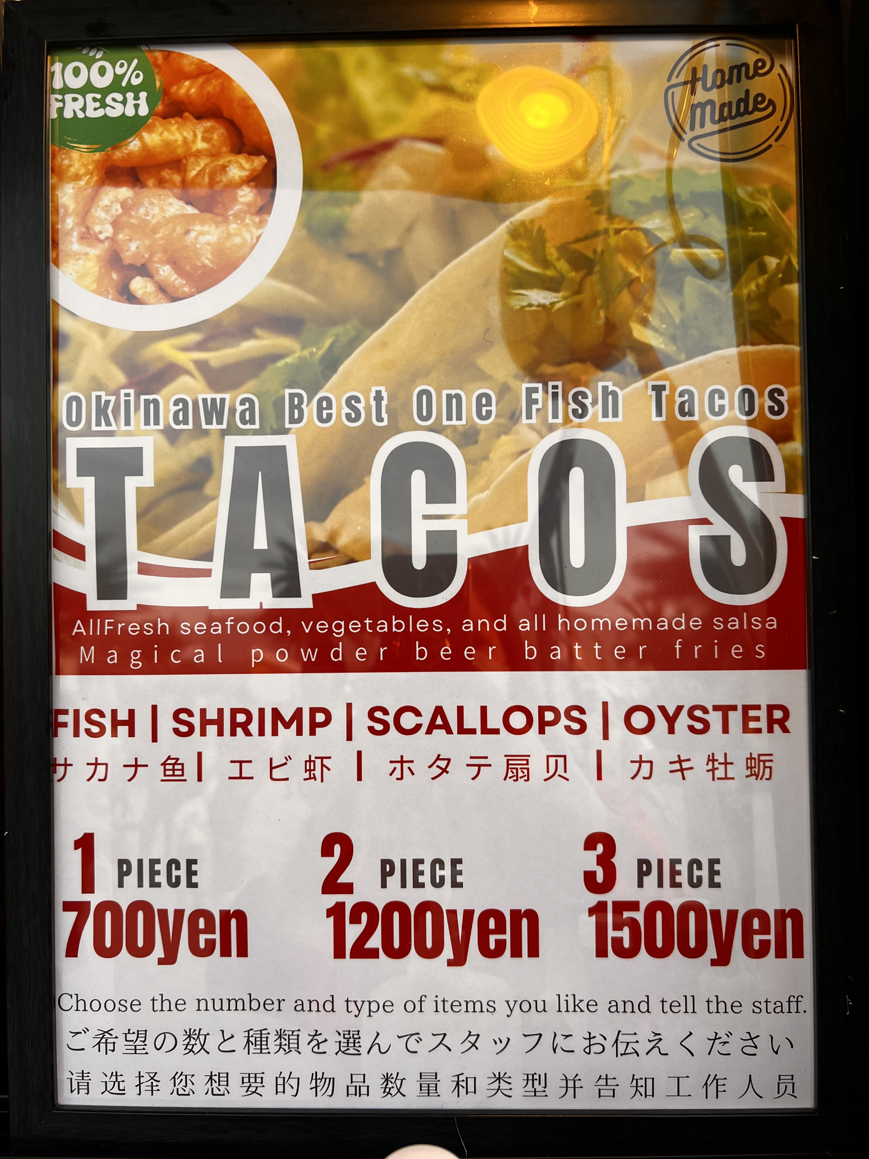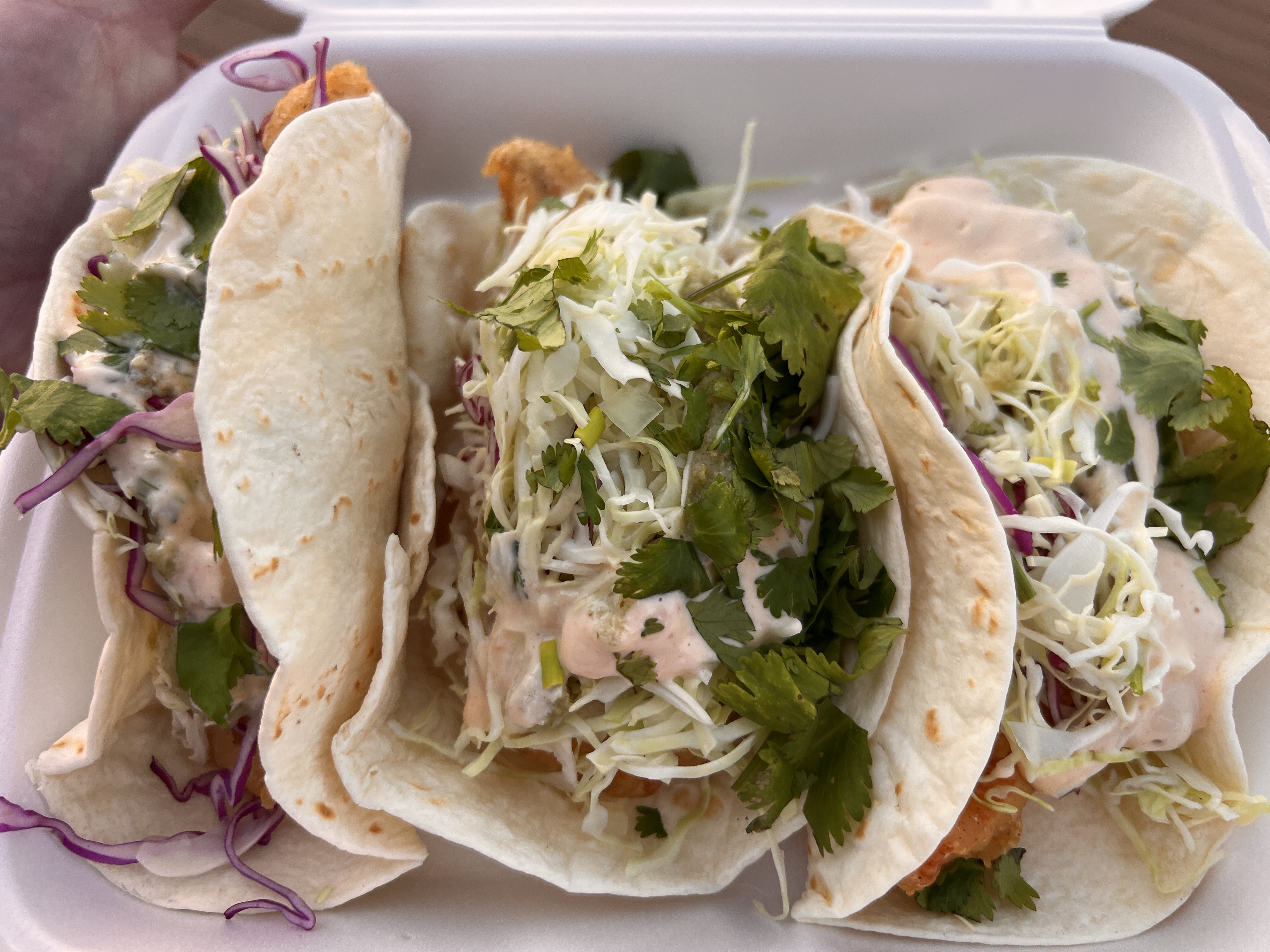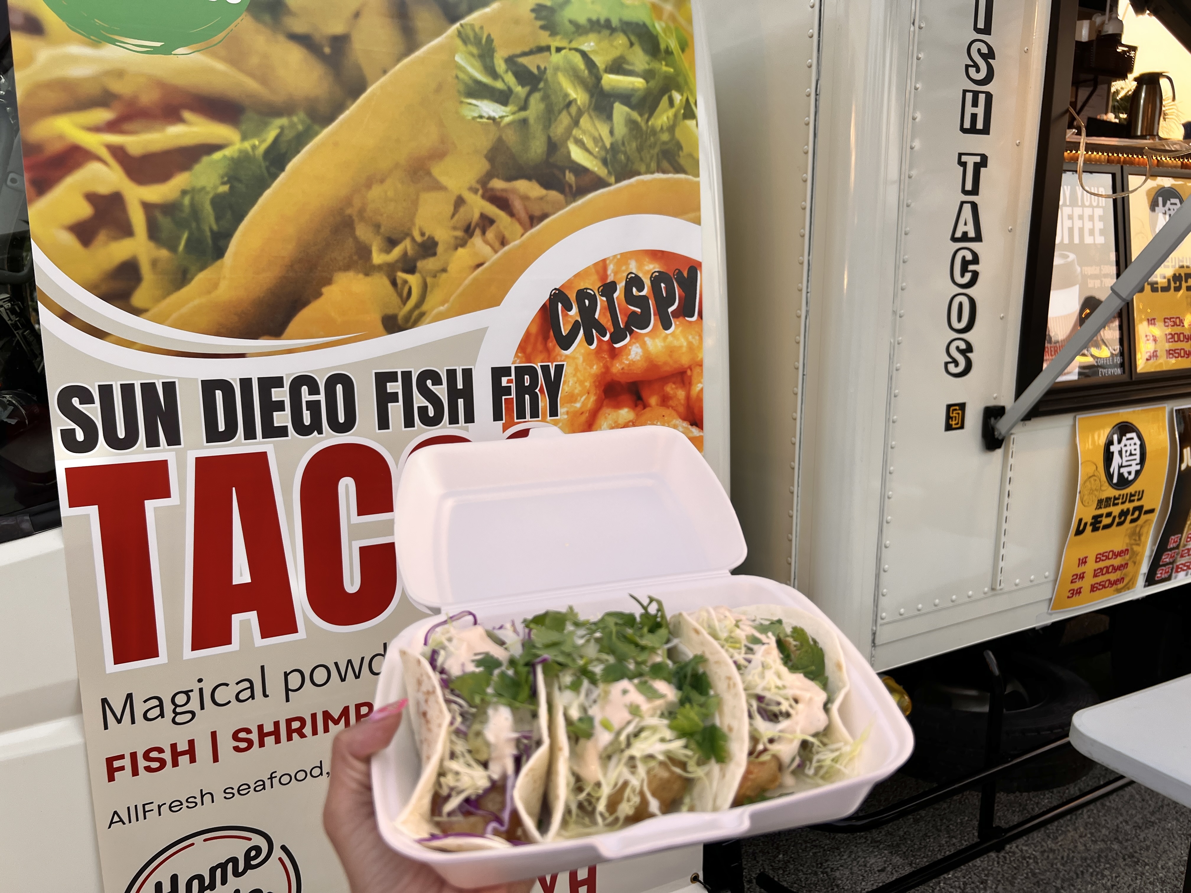 ボリュームたっぷりのフィッシュタコスですー!