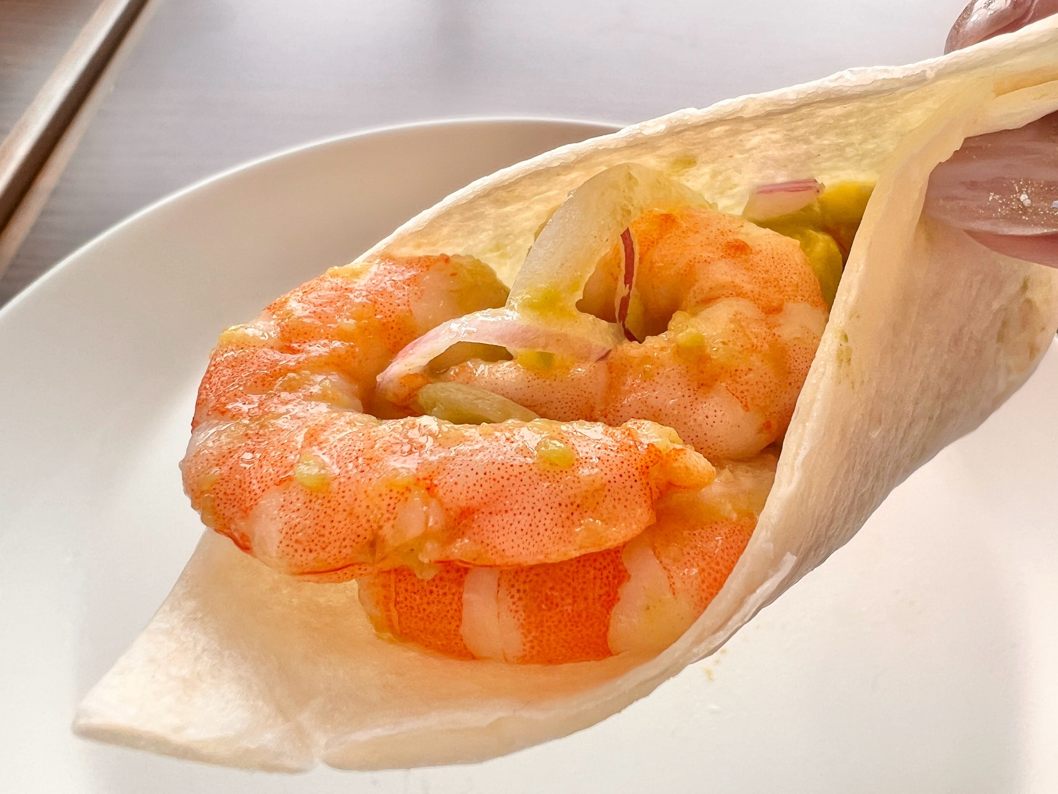 トルティーヤに自分でよそうので、好きな量を入れることができます。