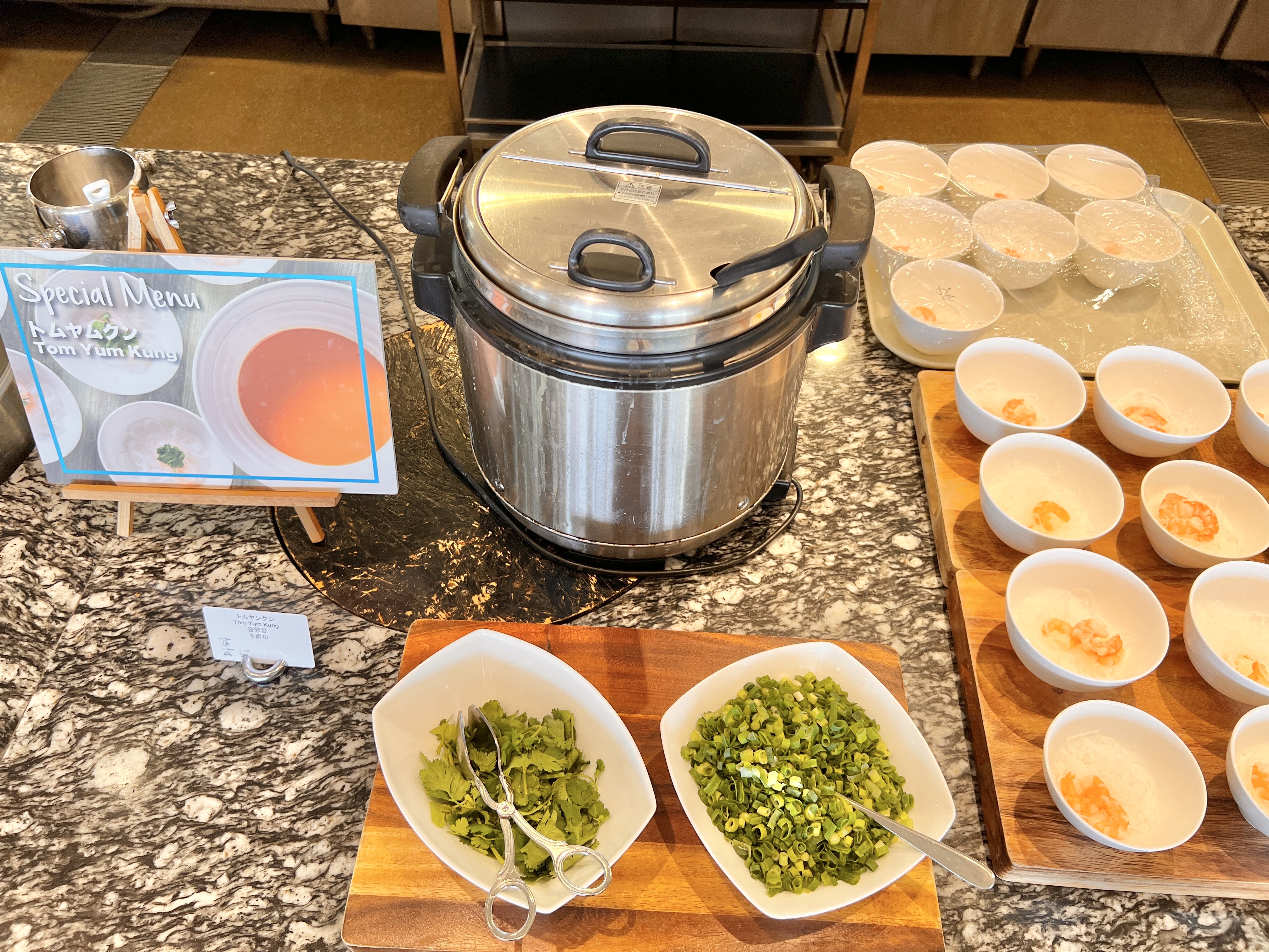 ビュッフェ台ではすぐに順番を待つ列ができていたので、私も続けて並びました。