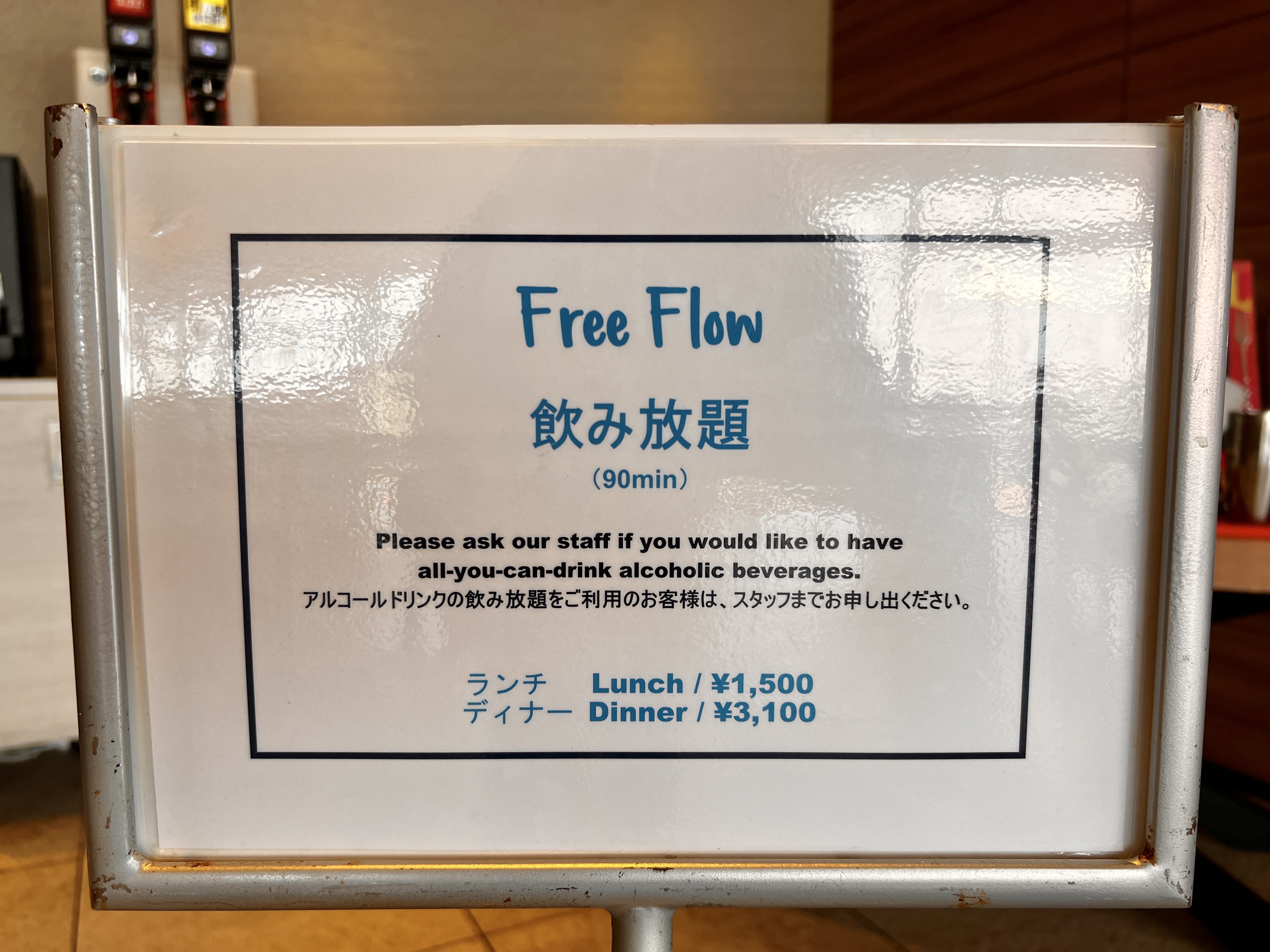 90分飲み放題でランチ時は1,500円、ディナー時は3,100円です。