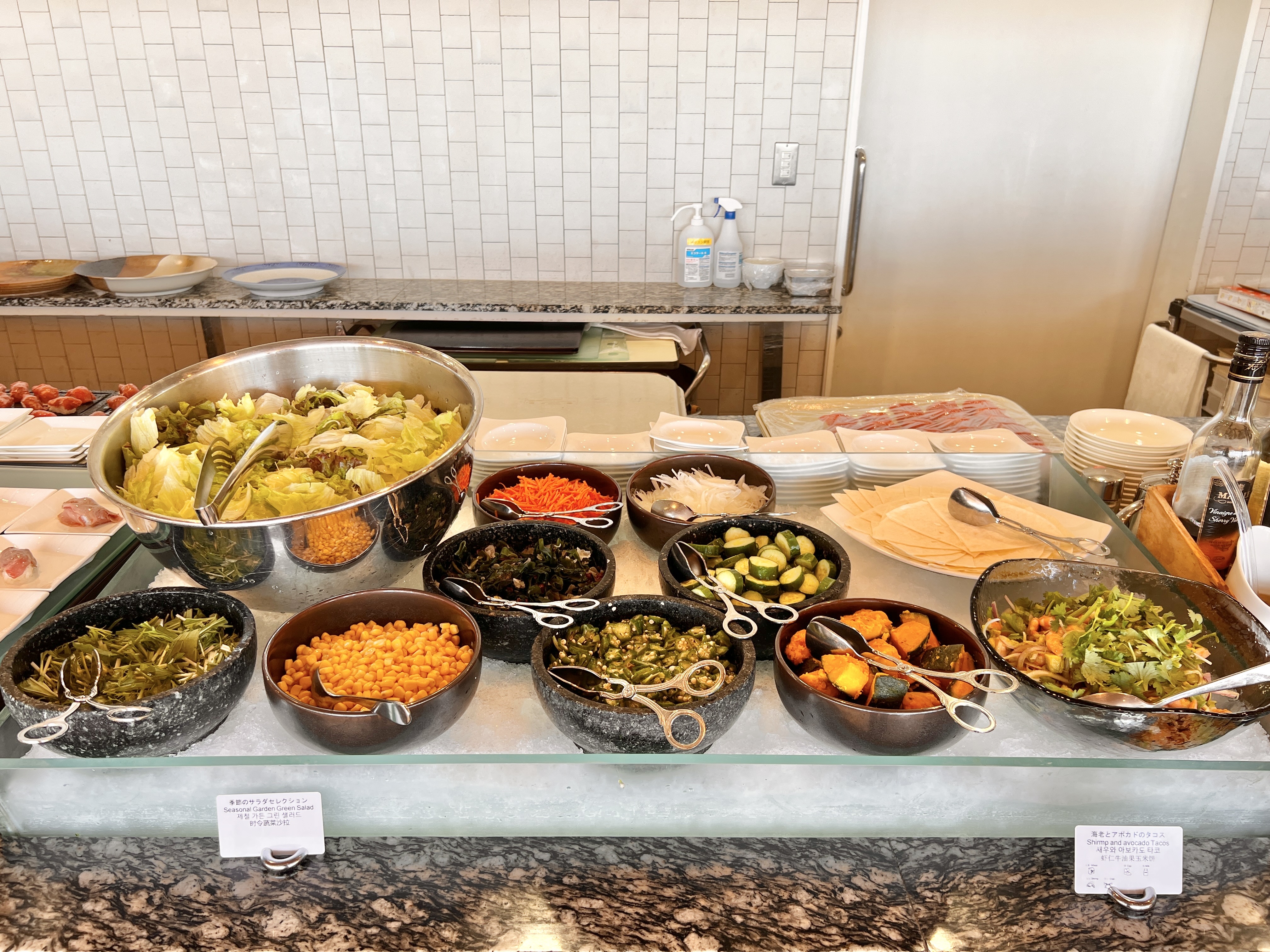 サラダセクションでは、レタス、きゅうり、人参、コーンと種類も豊富です。