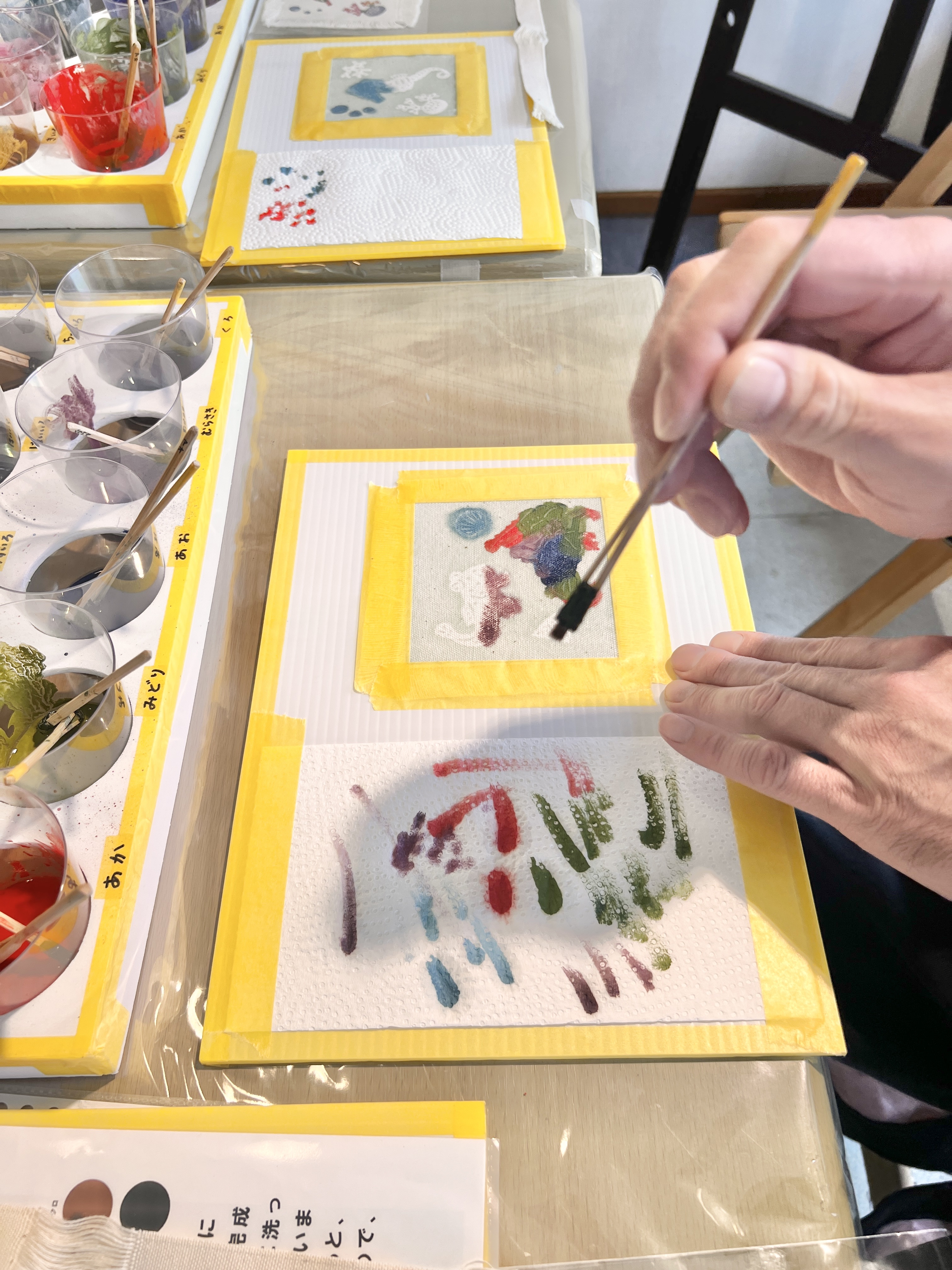 説明が終わって、私と夫で思い思いの色を筆に取り、それぞれ色付けしていきました☆