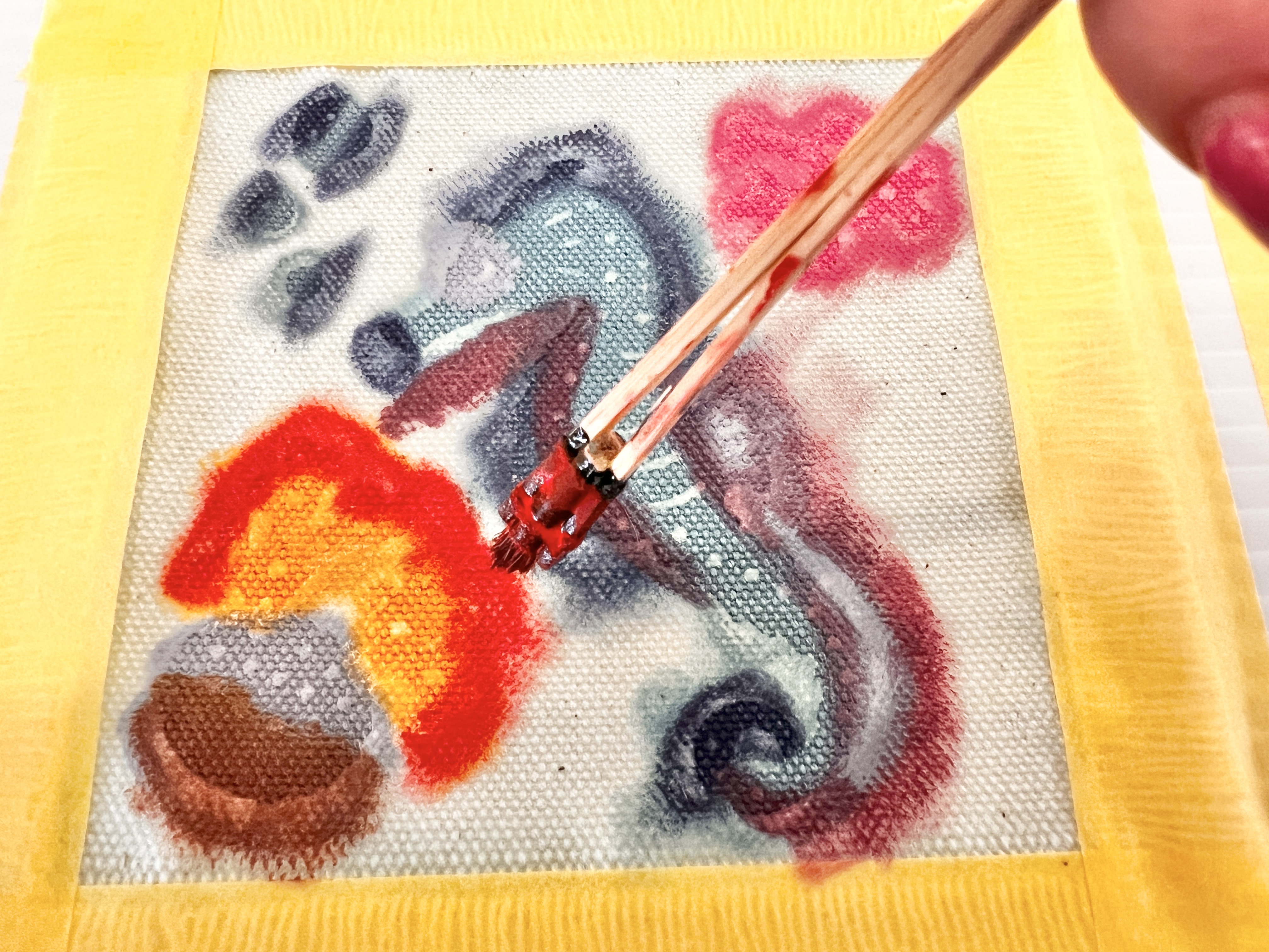 筆についた余分な顔料を切るときにつけた、キッチンペーパーにできあがった模様にも注目です!