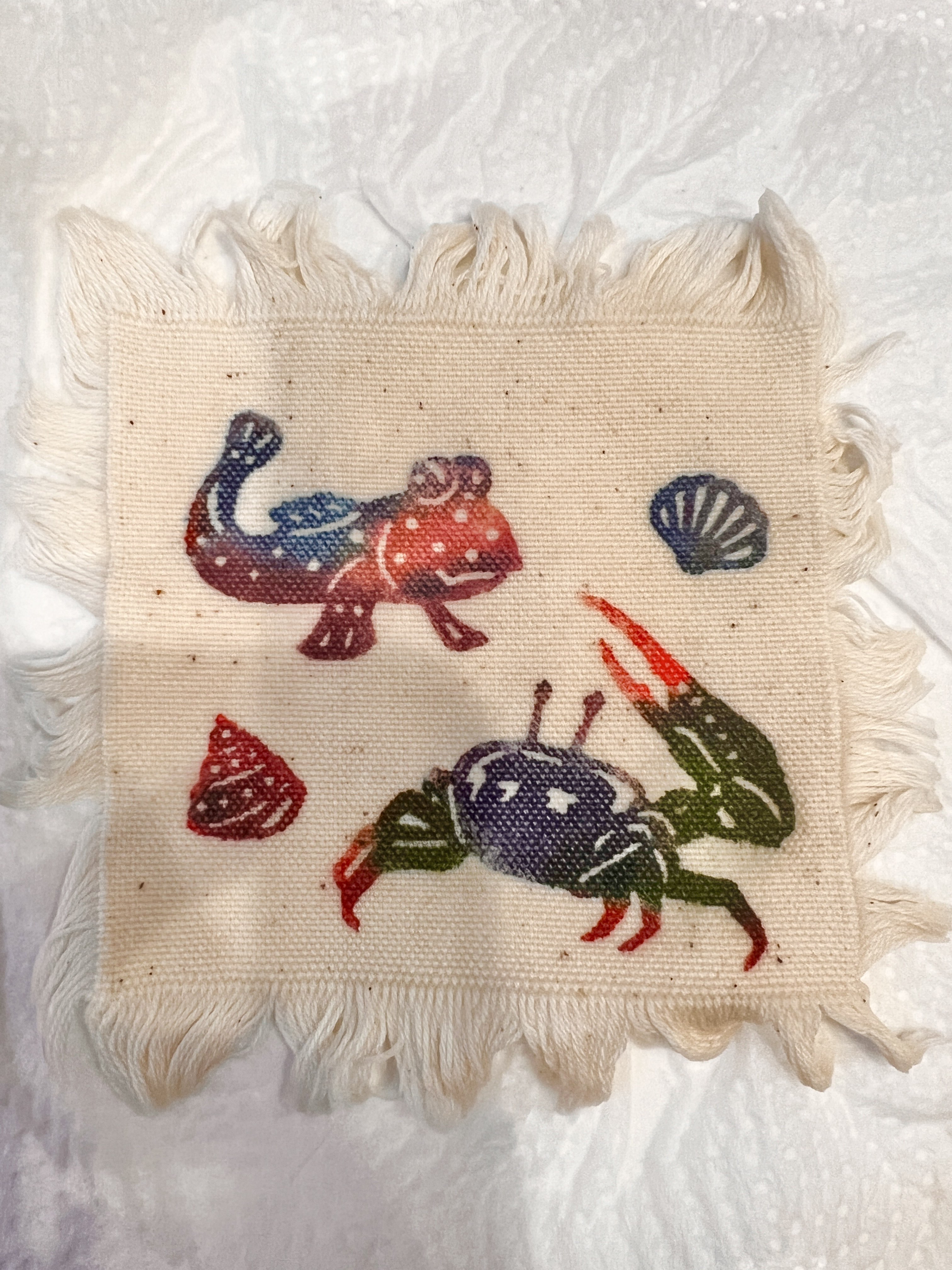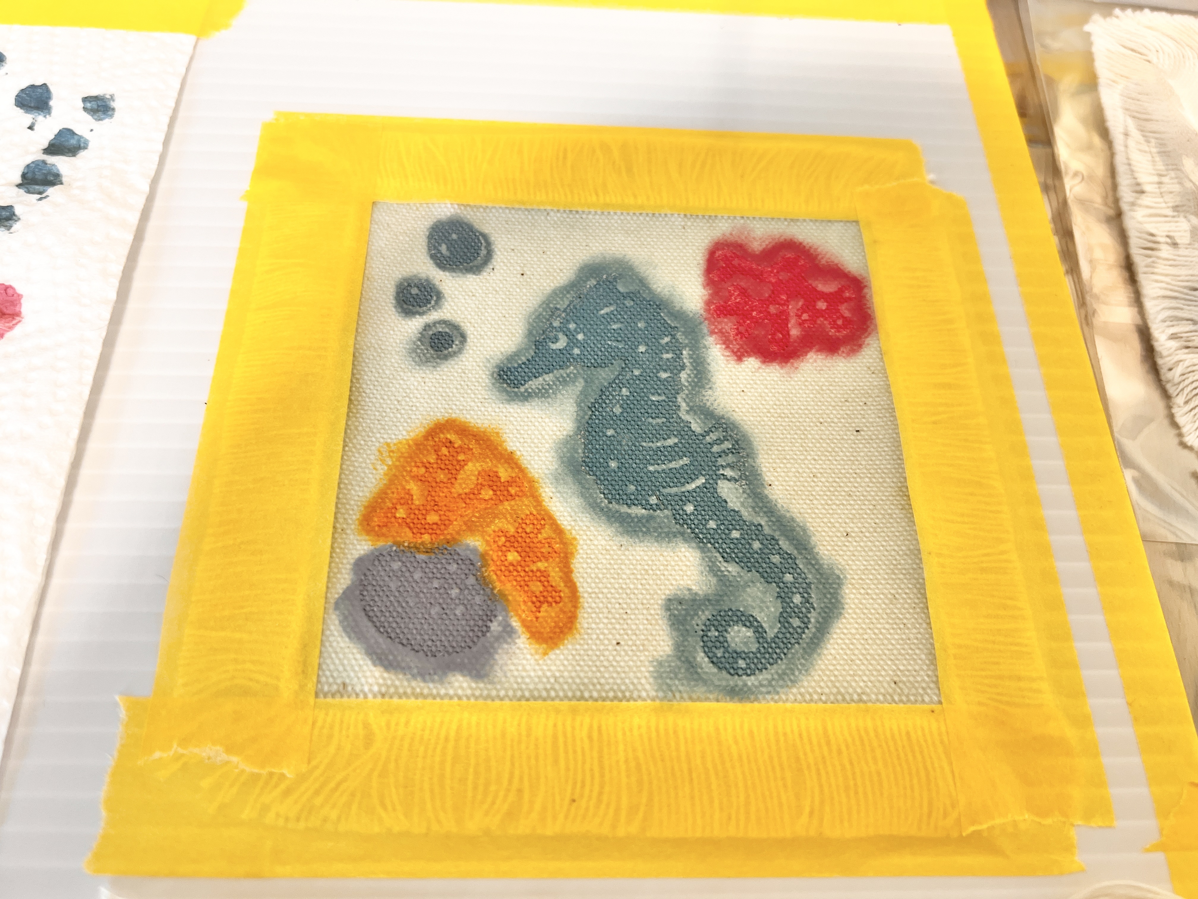 完成した紅型コースターは使うのがもったいないので、額縁に入れてアートとして楽しみたい程です☆