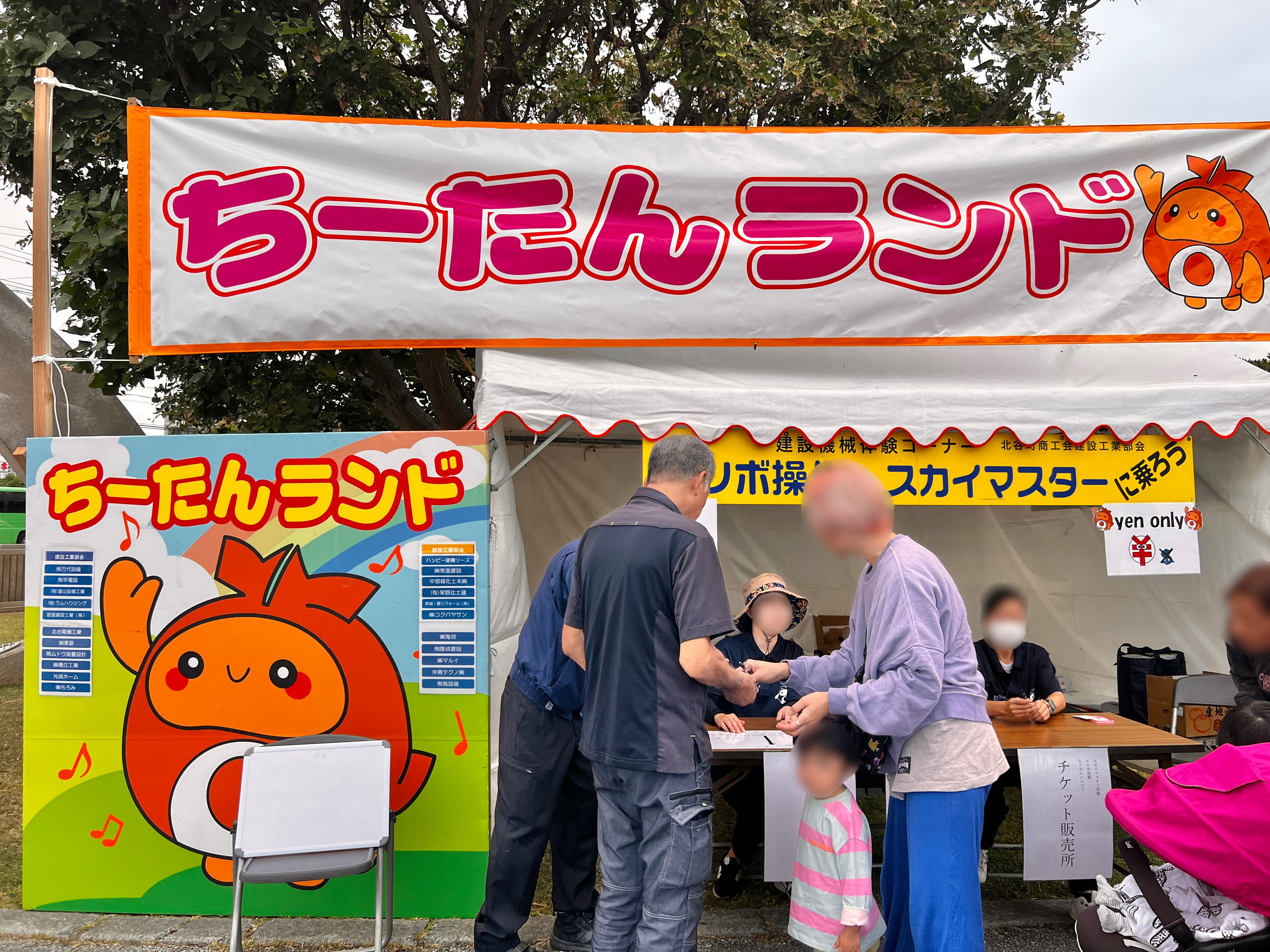 ちーたんランドでは、スカイマスター体験、ユンボー体験、ハンマーゲームができます。