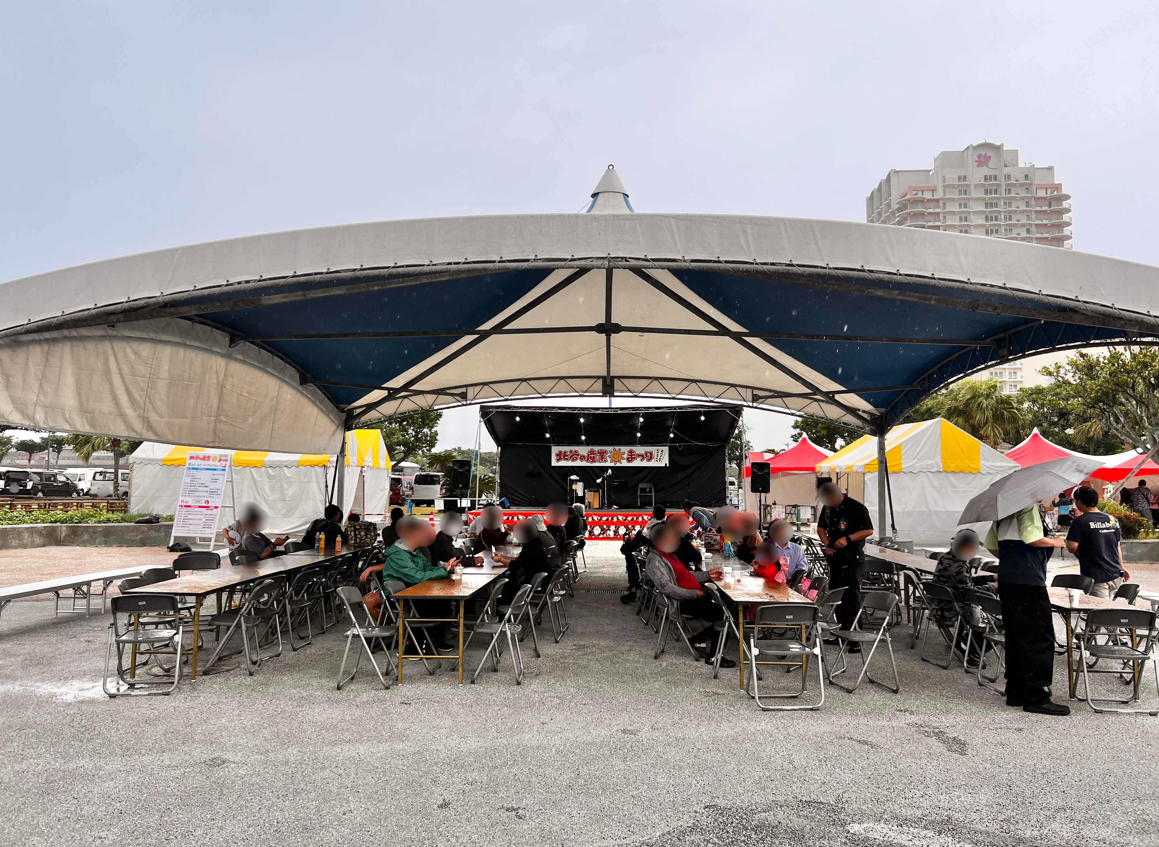 ステージの前には大きな屋根付きテントが設置されていて、来場者は会場で販売されている飲食物を楽しみながらステージ鑑賞をされていました。