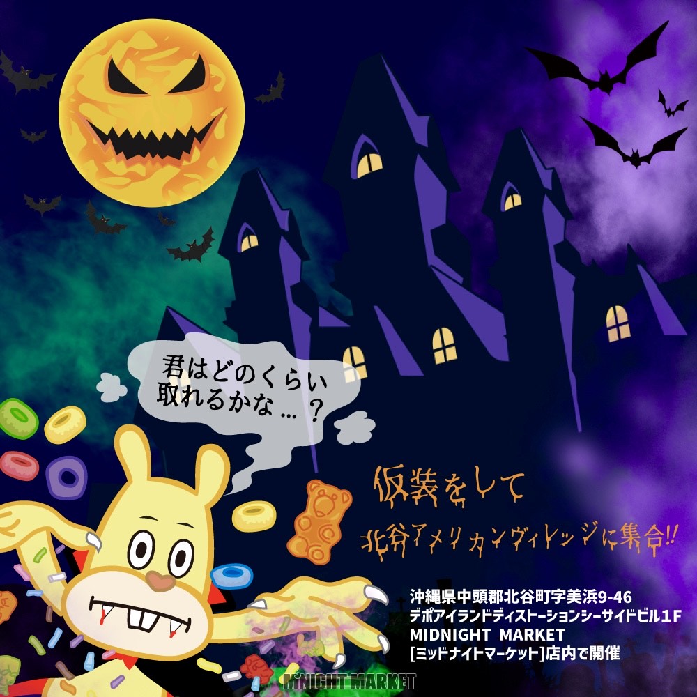 2024年9月にオープンしたばかりの美浜・デポアイランド内にあるアパレルショップ「Midnight Market(ミッドナイトマーケット)」にて、2024年10月27日(日)に「SMILE PROJECT ハロウィンパーティー」を開催しますよー!