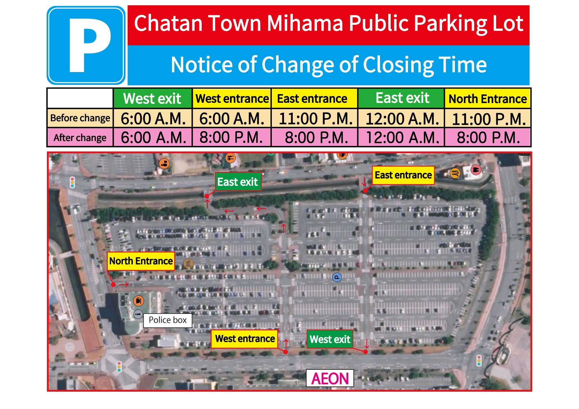 2024年10月31日(木)は、北谷町美浜公共駐車場の閉門時間が変更になるので、ご利用の際はご注意ください!