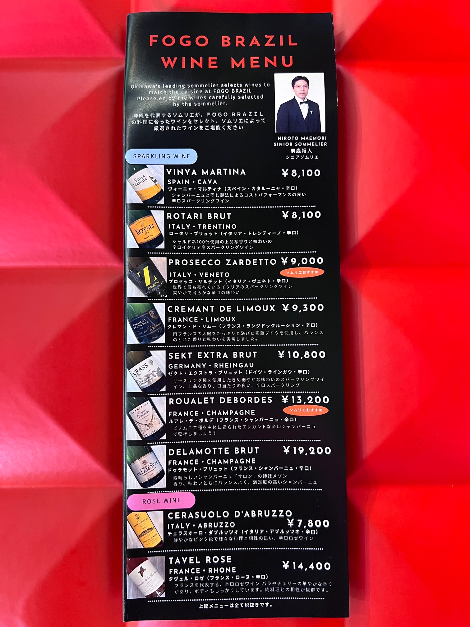沖縄を代表するソムリエの前森裕人氏が、『FOGO BRAZIL』の料理に合ったワインをセレクトしています。柚子胡椒やワサビもあるので、和風な味付けもできちゃいますね。