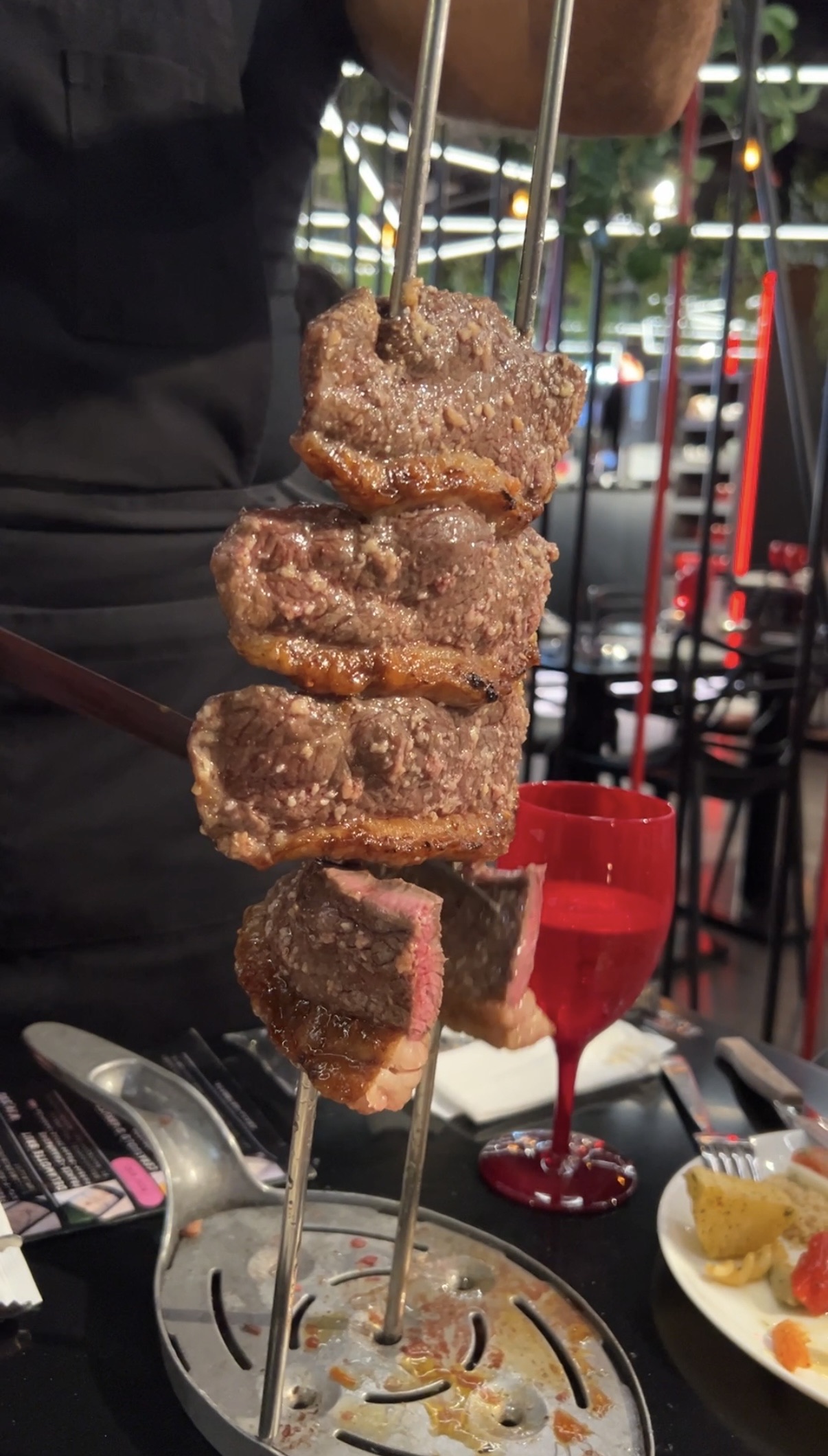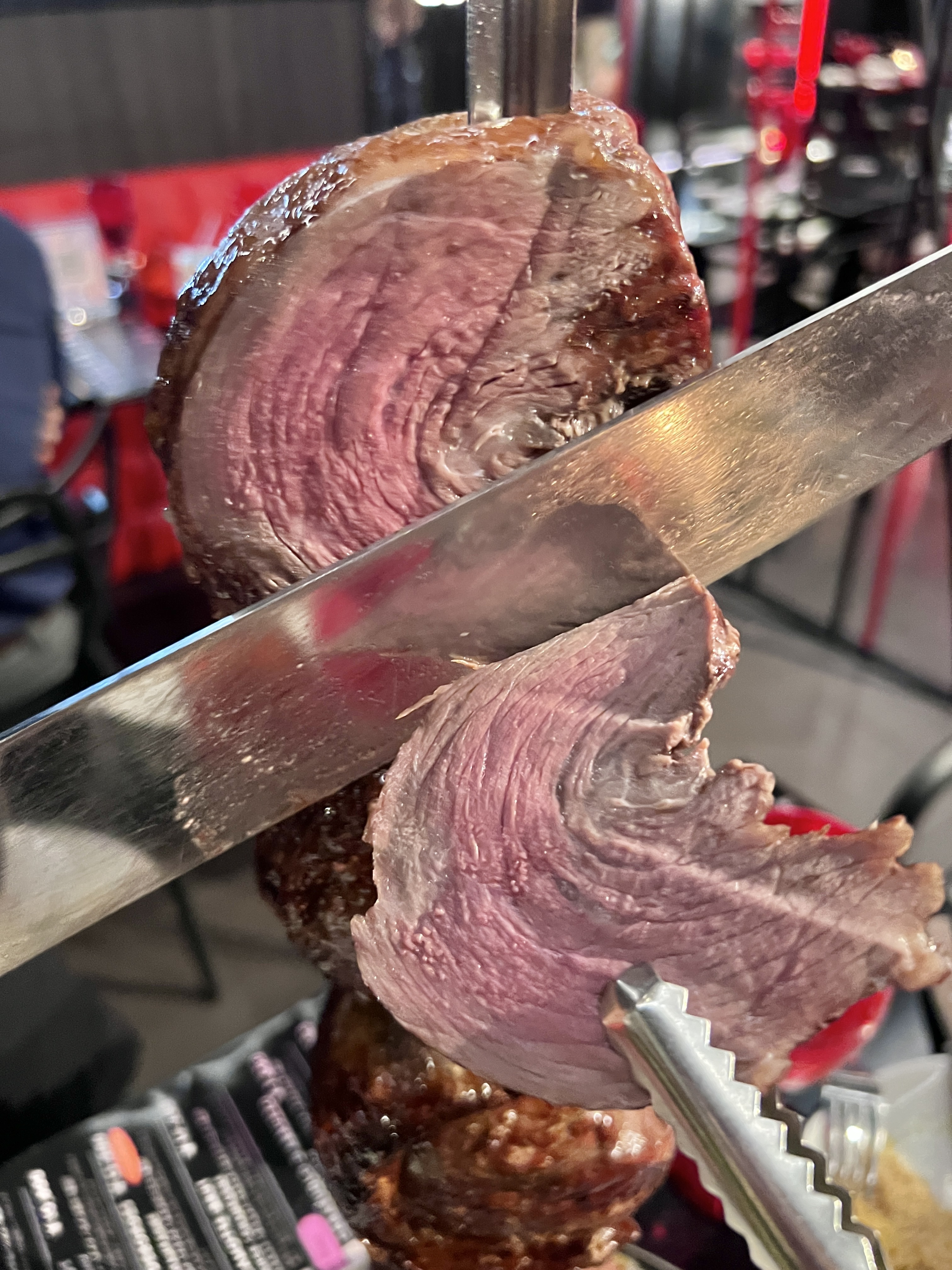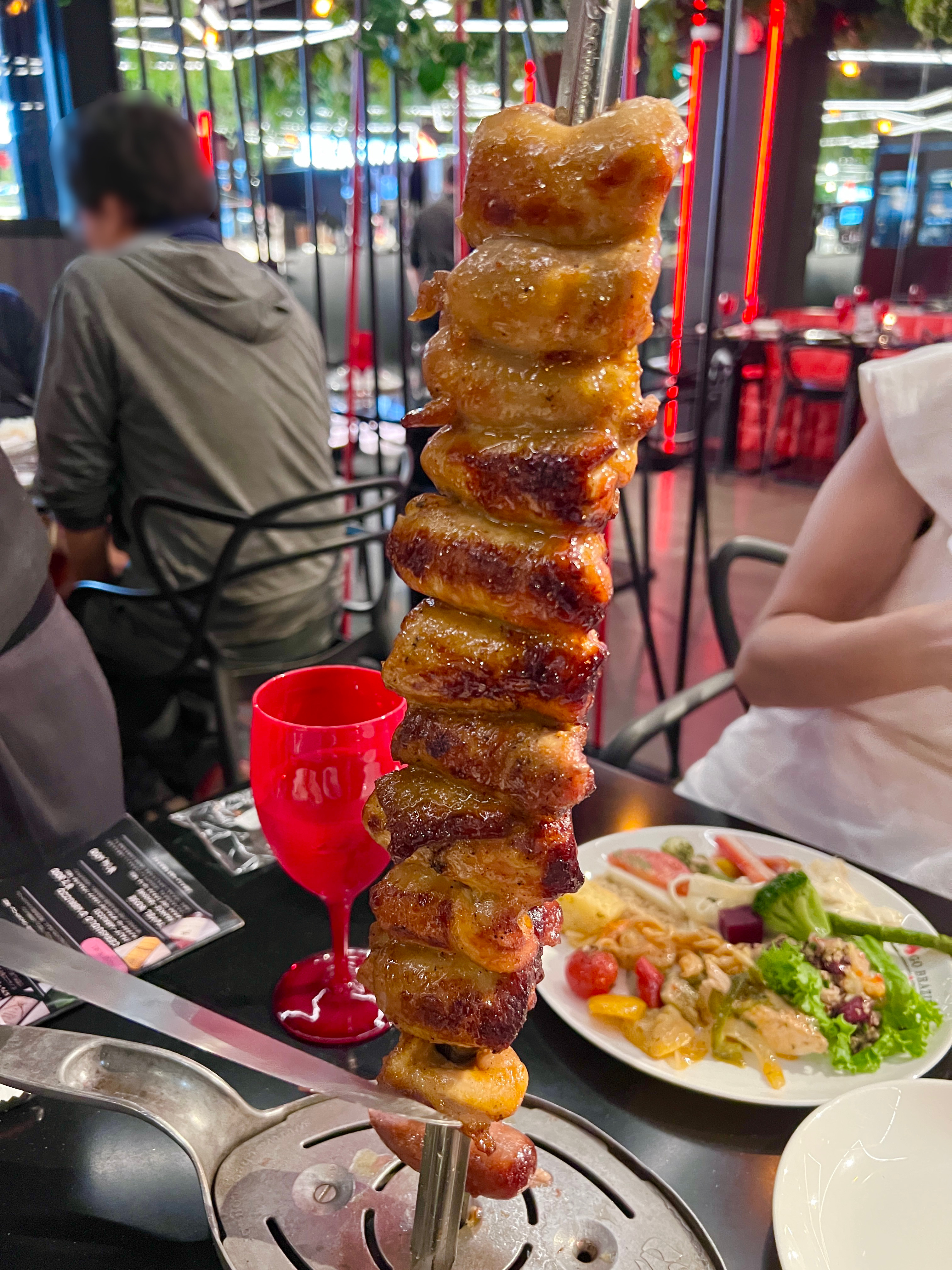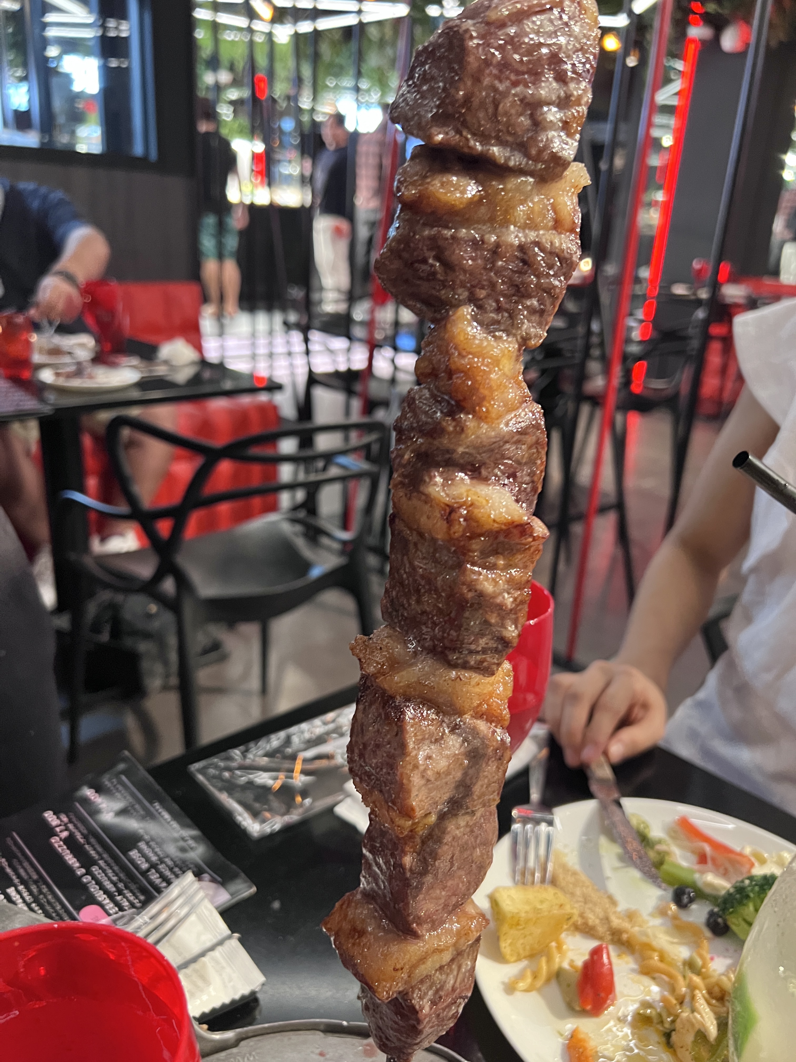 スタッフの方ができたてのシュラスコを各テーブルまで運んできてくれますよ。