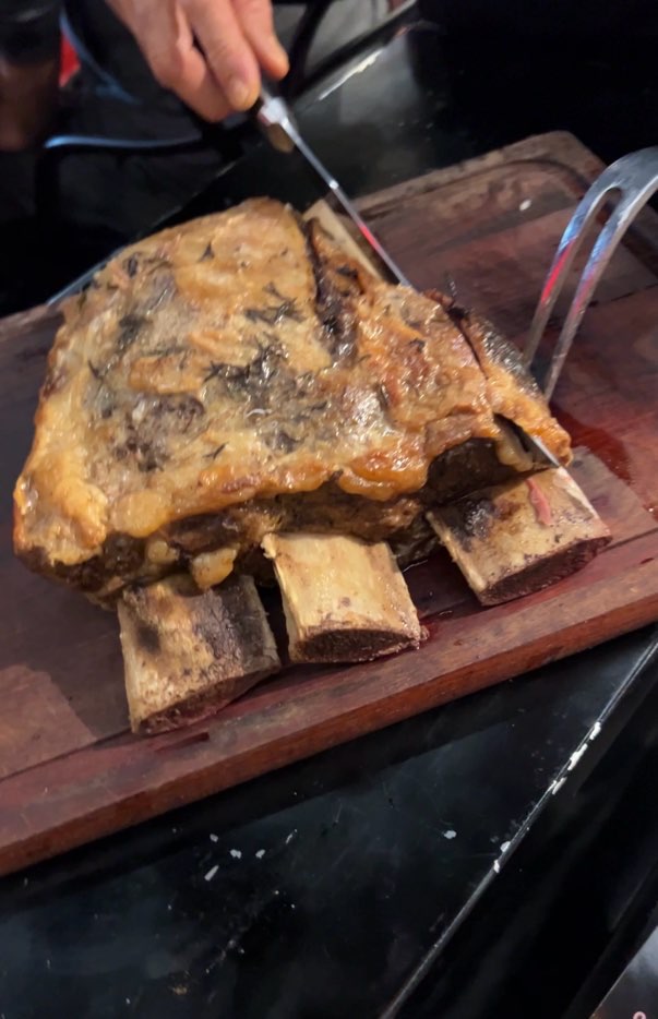 迫力抜群の骨付きお肉の塊が運ばれてきました。