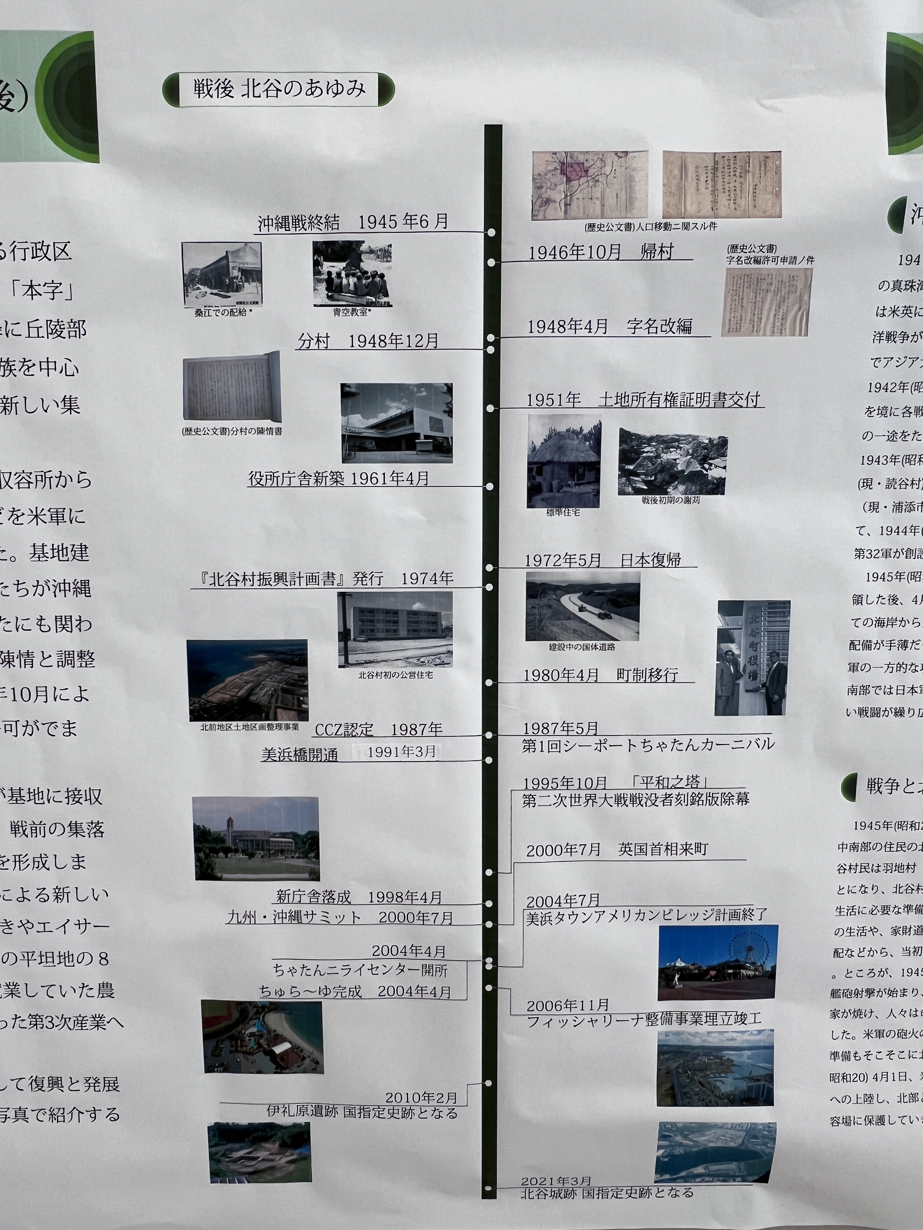 『平和祈念展』では、北谷町の復興と発展、戦後から現在までの変化をみることができます。