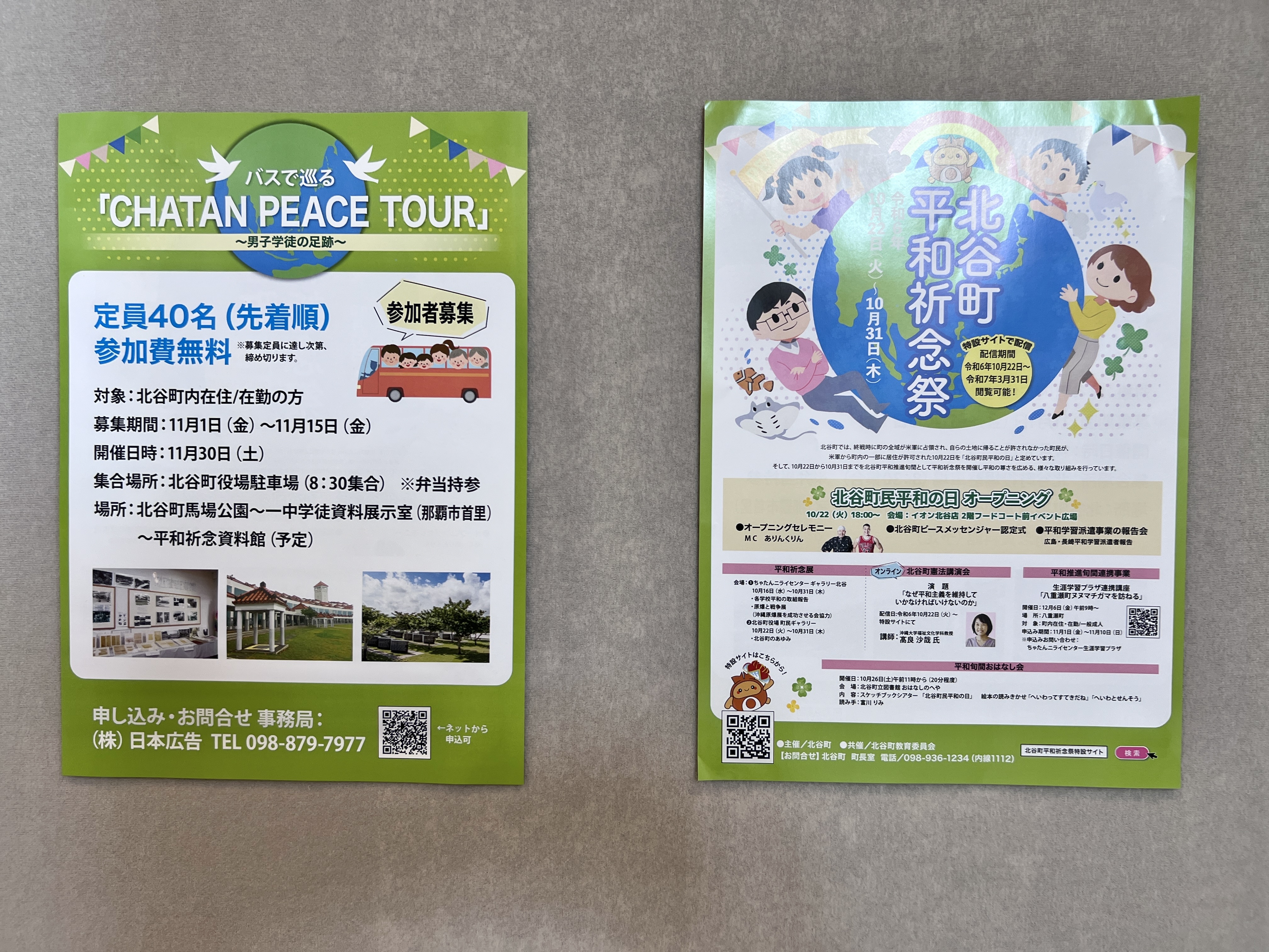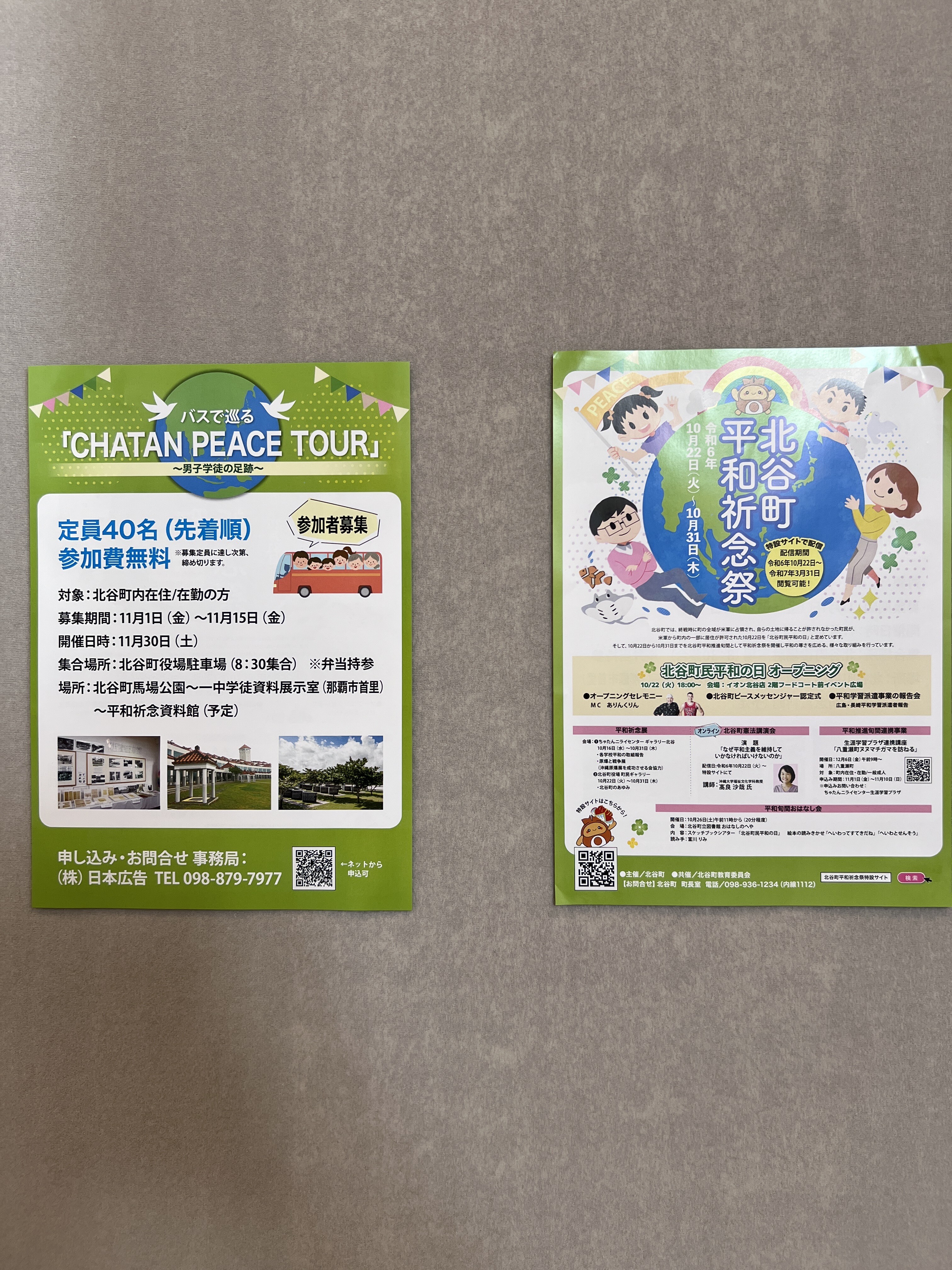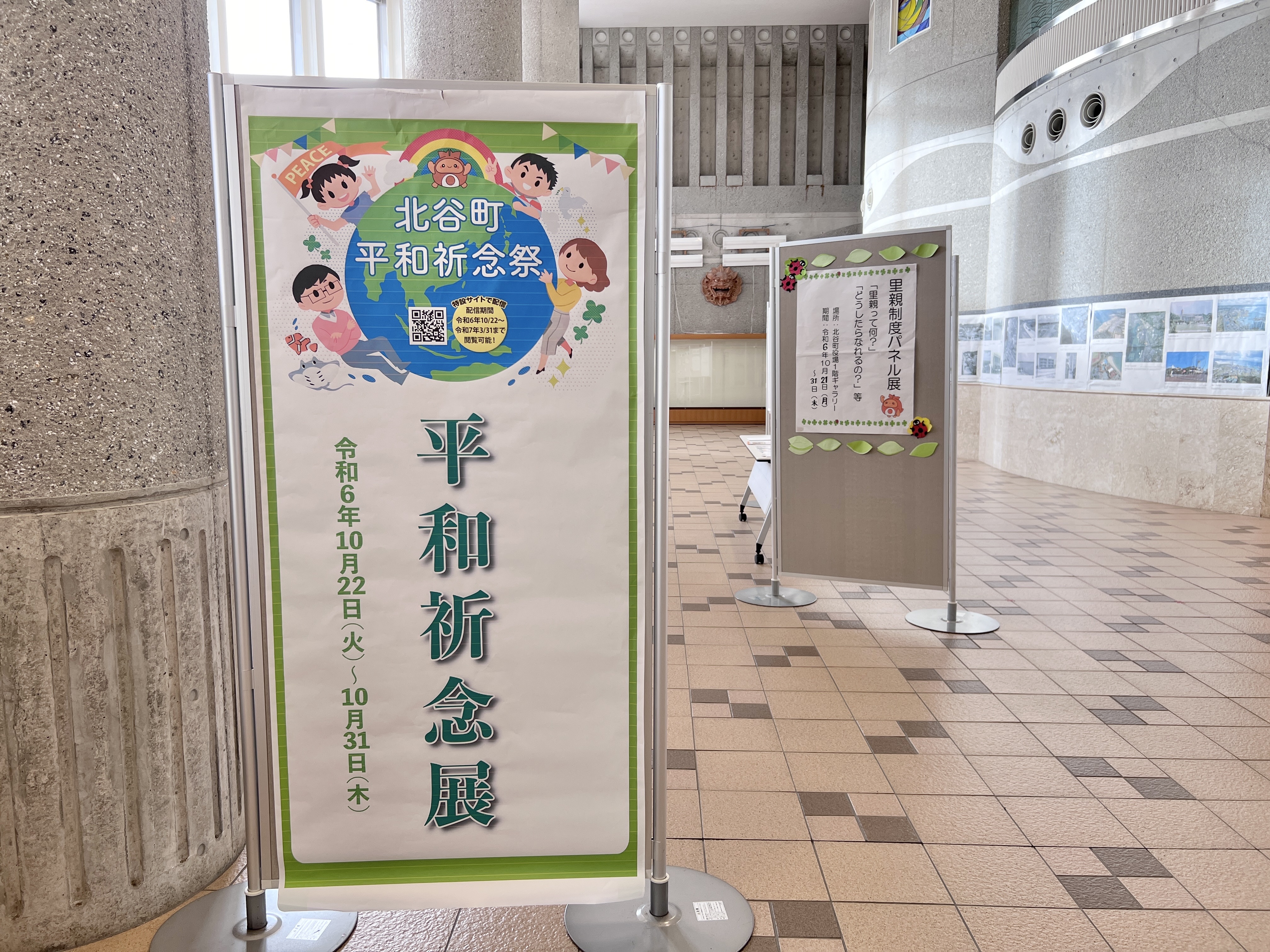 北谷町役場に入館して左手側にある町民ギャラリーにて、2024年10月22日(火)~10月31日(木)の期間『平和祈念展』を行っています。