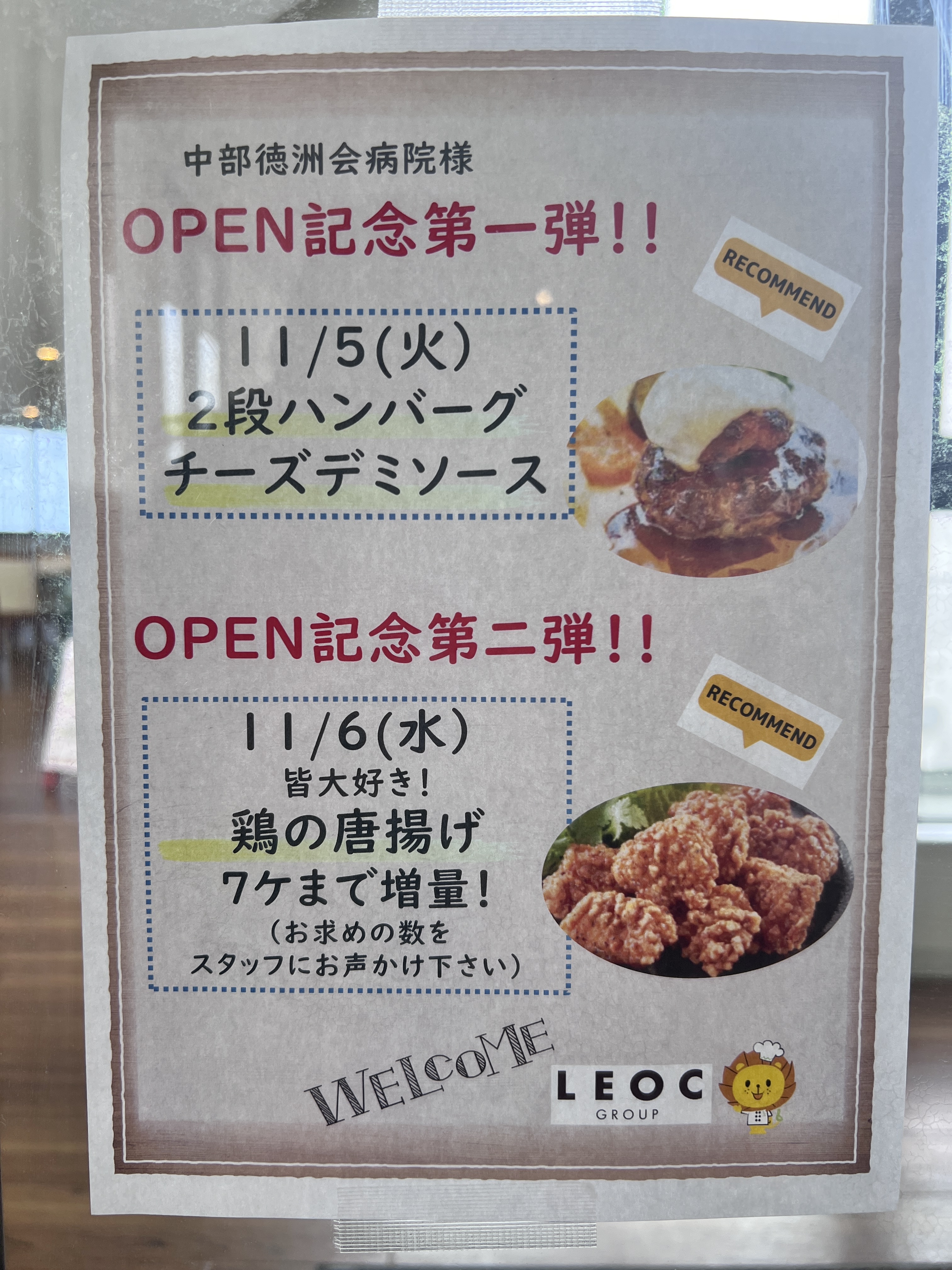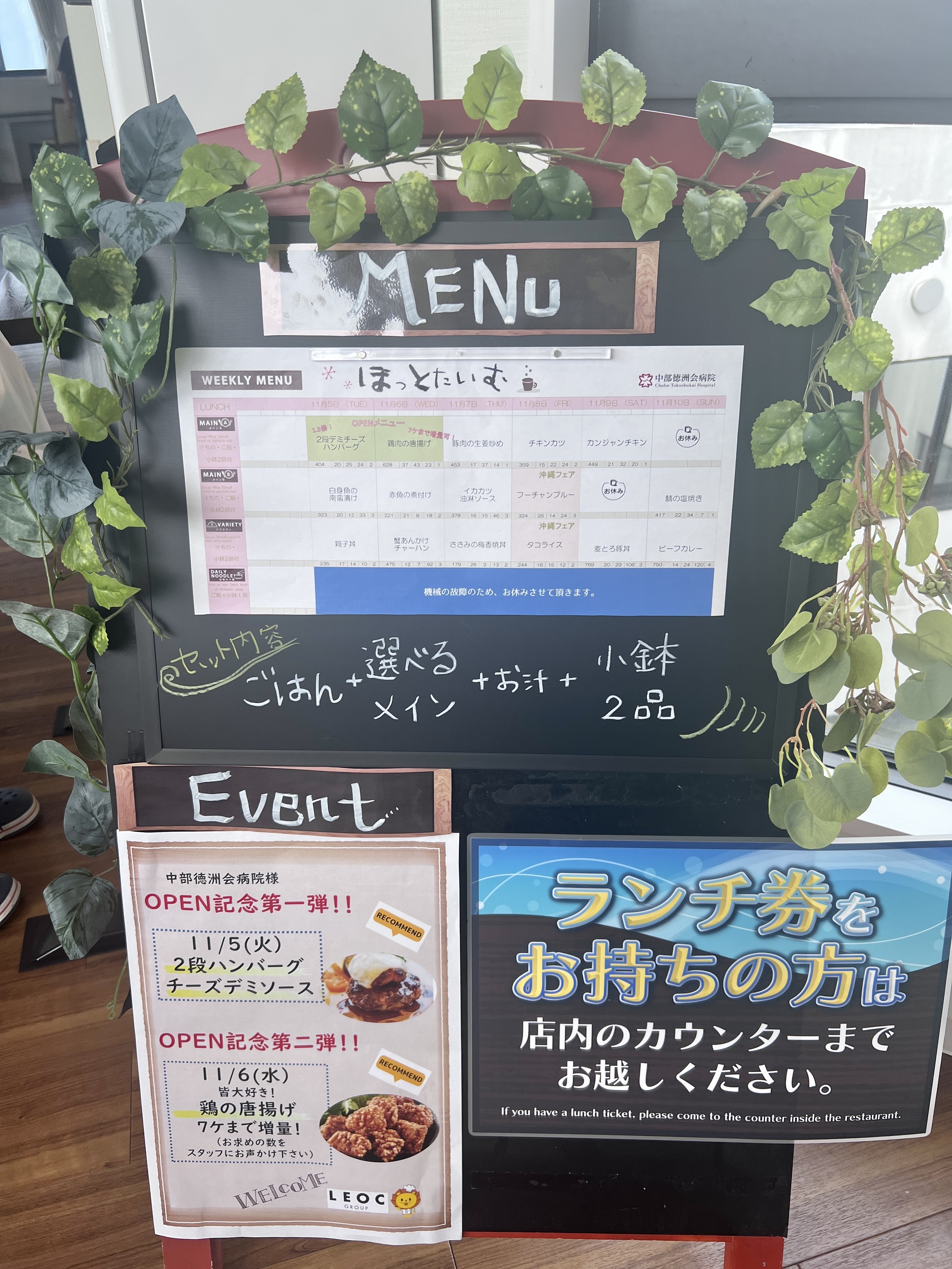 夫の診察の付き添いで中部徳洲会病院へ11月6日(水)に行ってきたのですが、待合室のモニターに「レストランのリニューアル情報」が流れてきました。