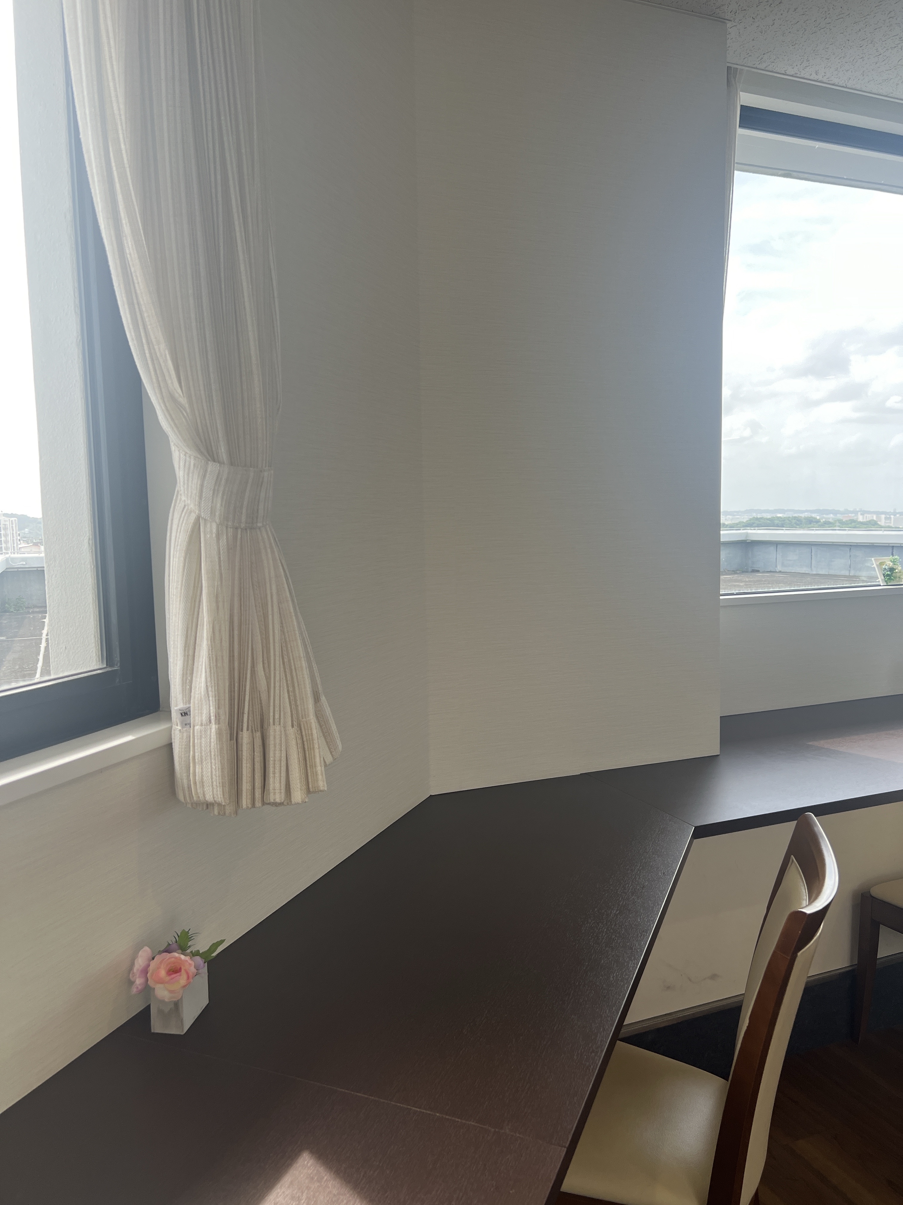 この日のお空は雲に覆われ、視界は全体的に白かったのですが、病院内から海もみえましたー!