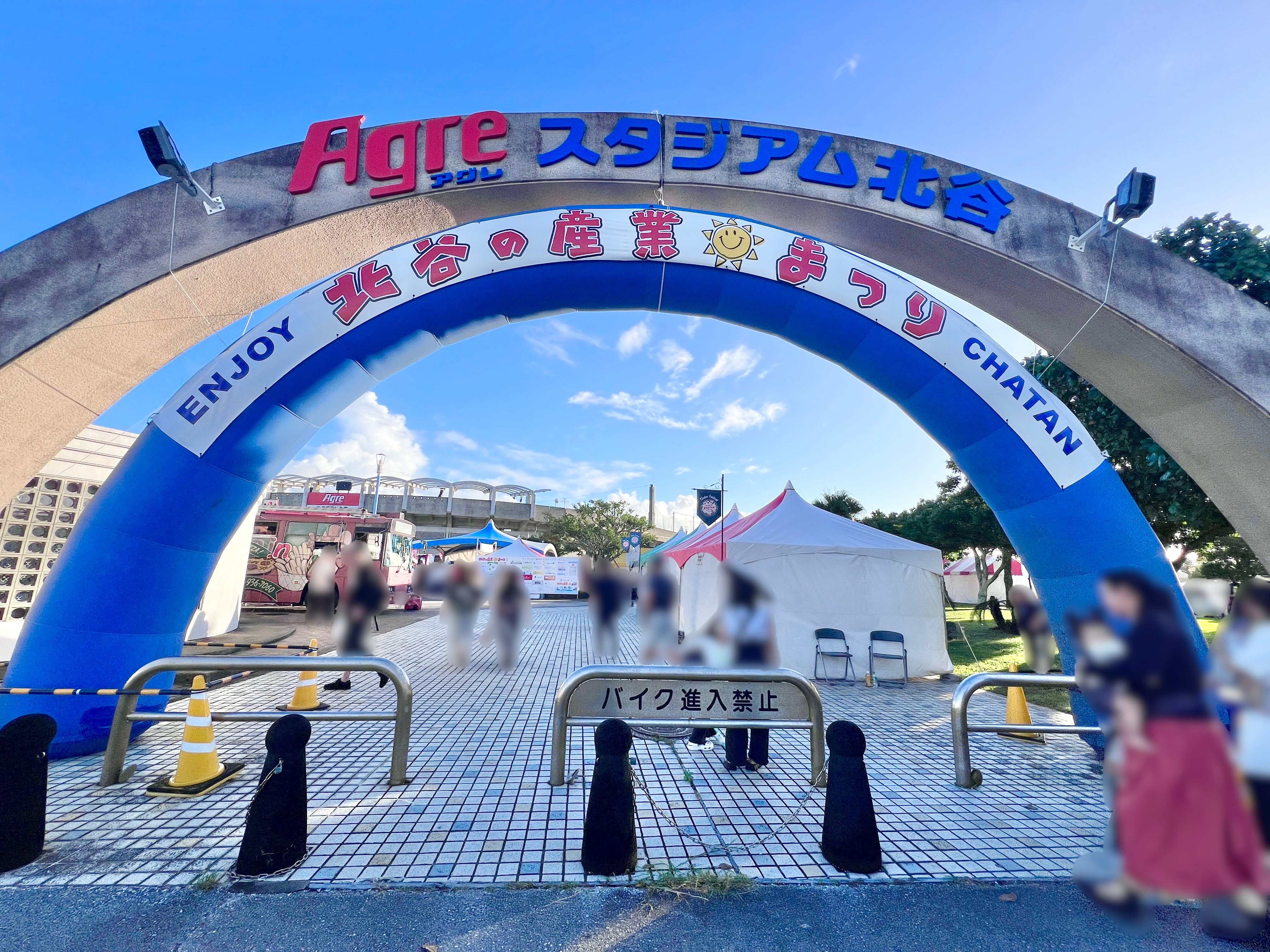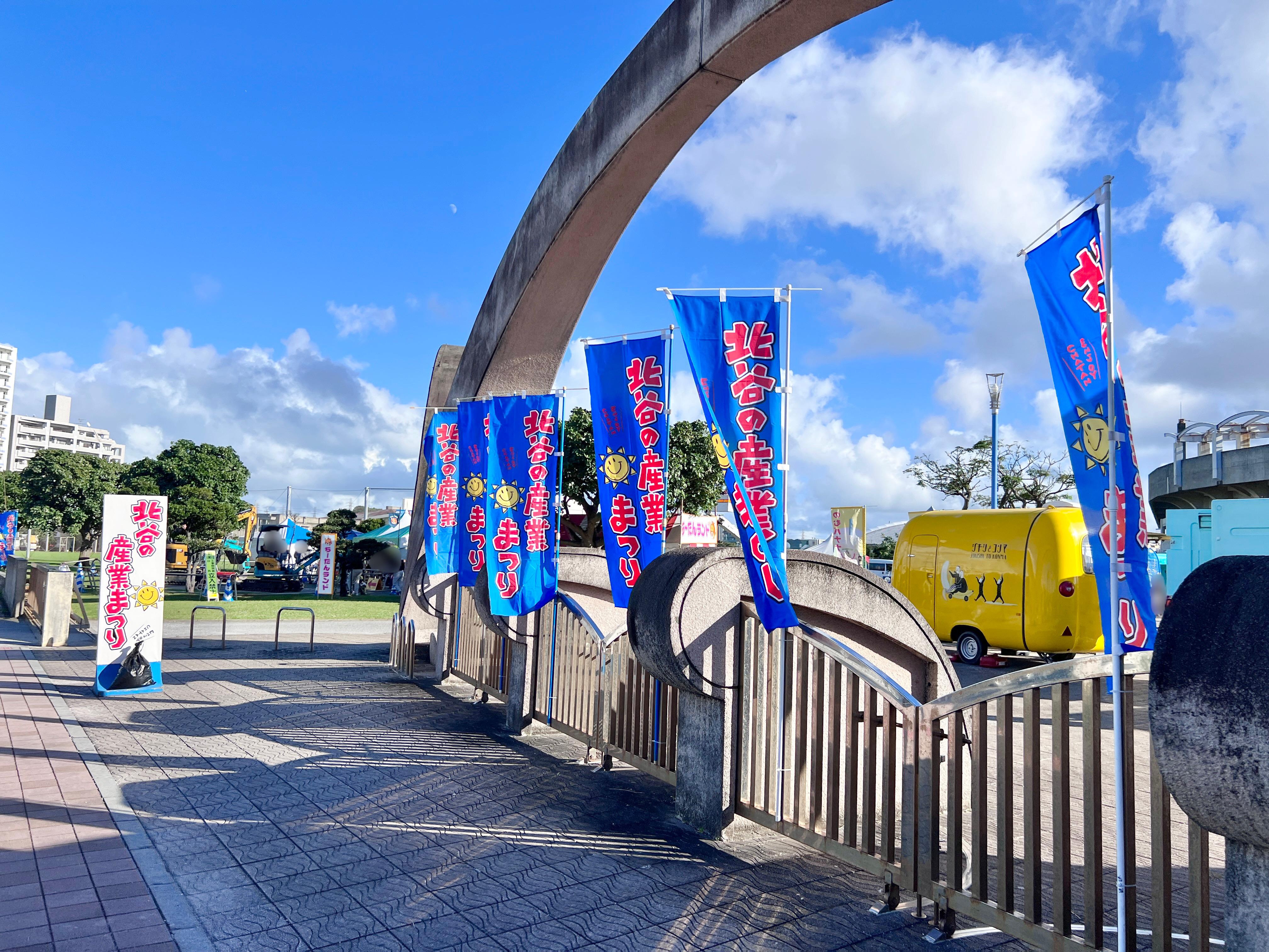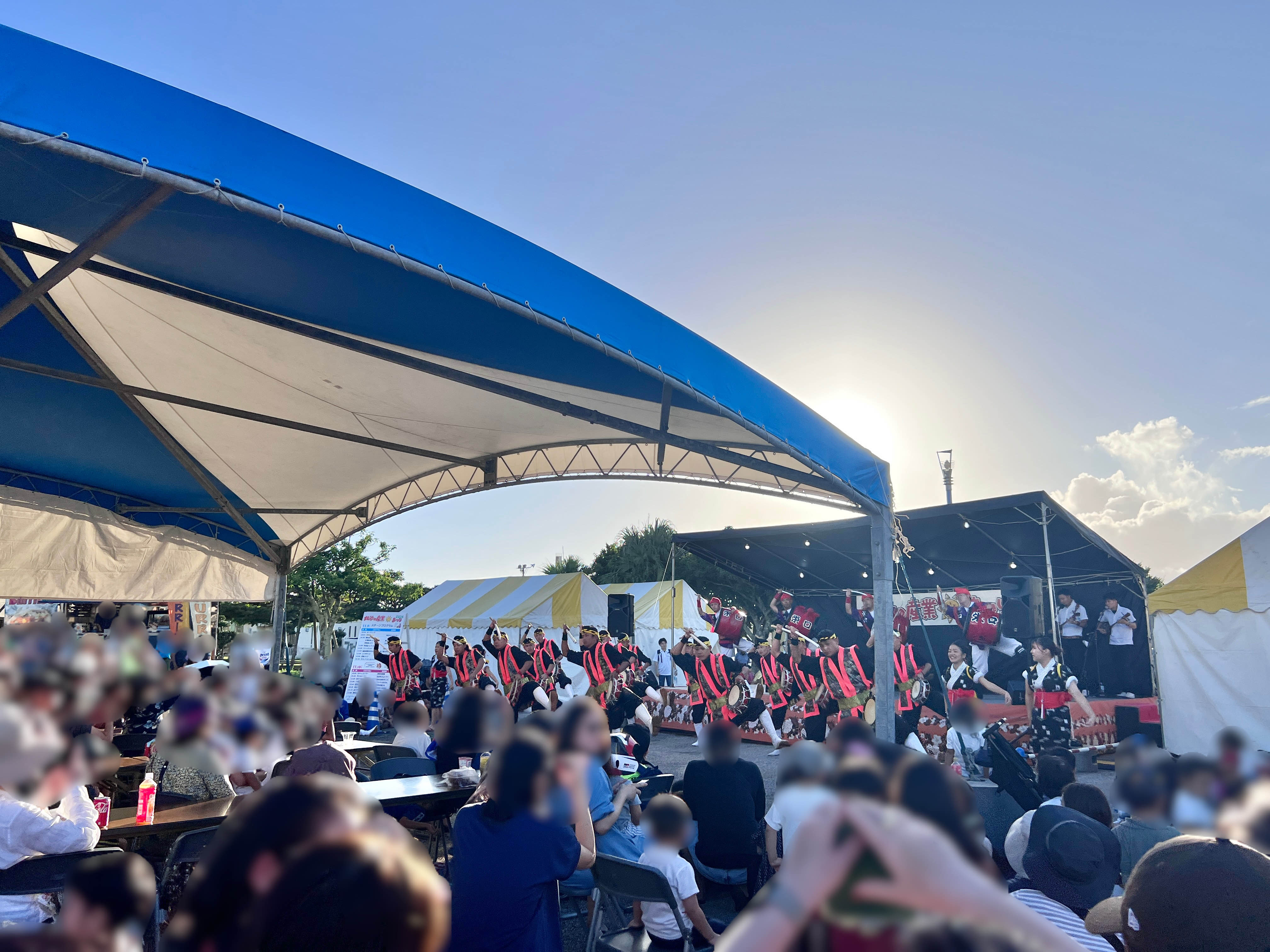 北谷町営美浜駐車場に車を停めて野球場前まで歩いて向かっていると、会場のにぎやかな様子が見えてきました☆