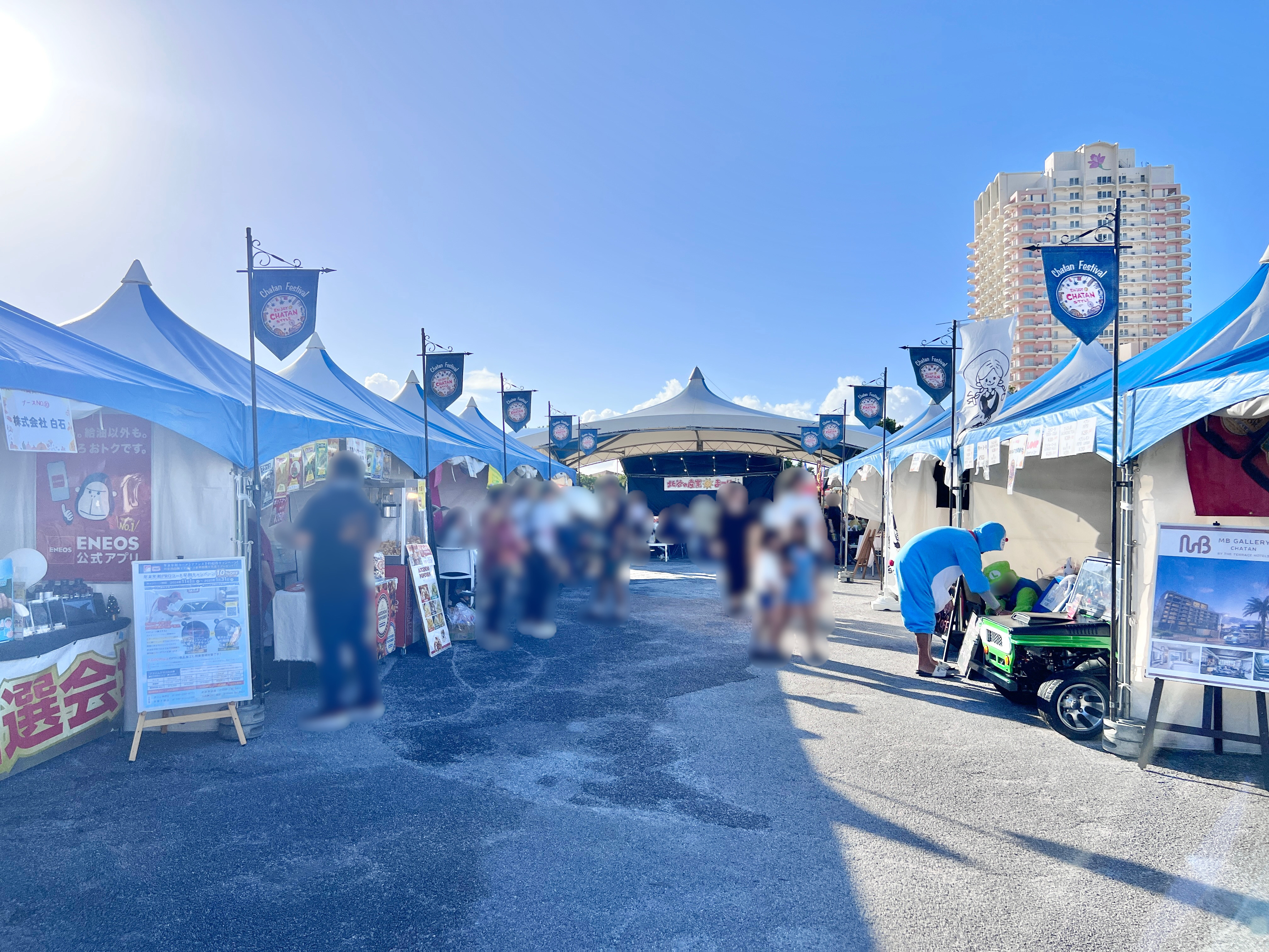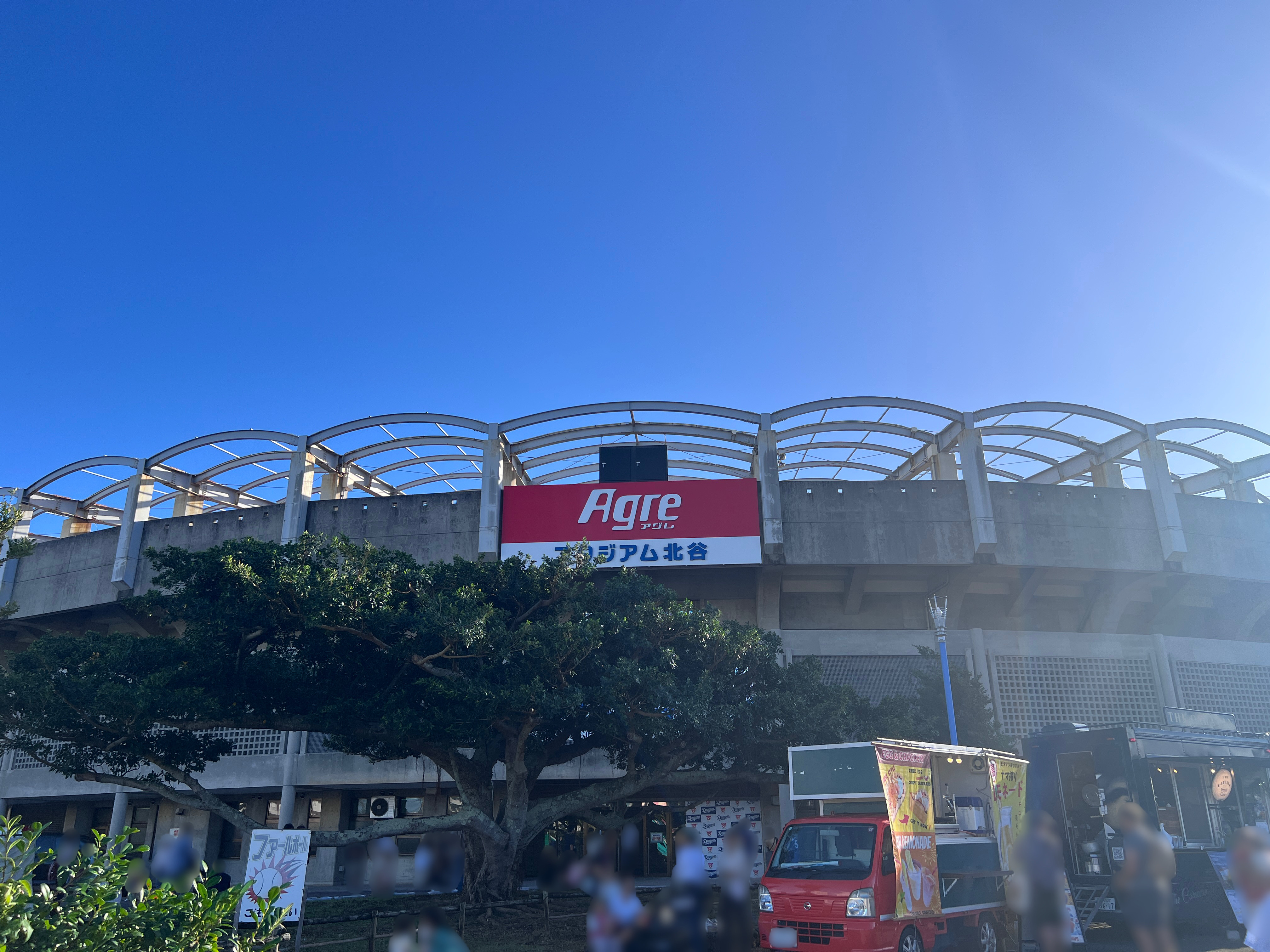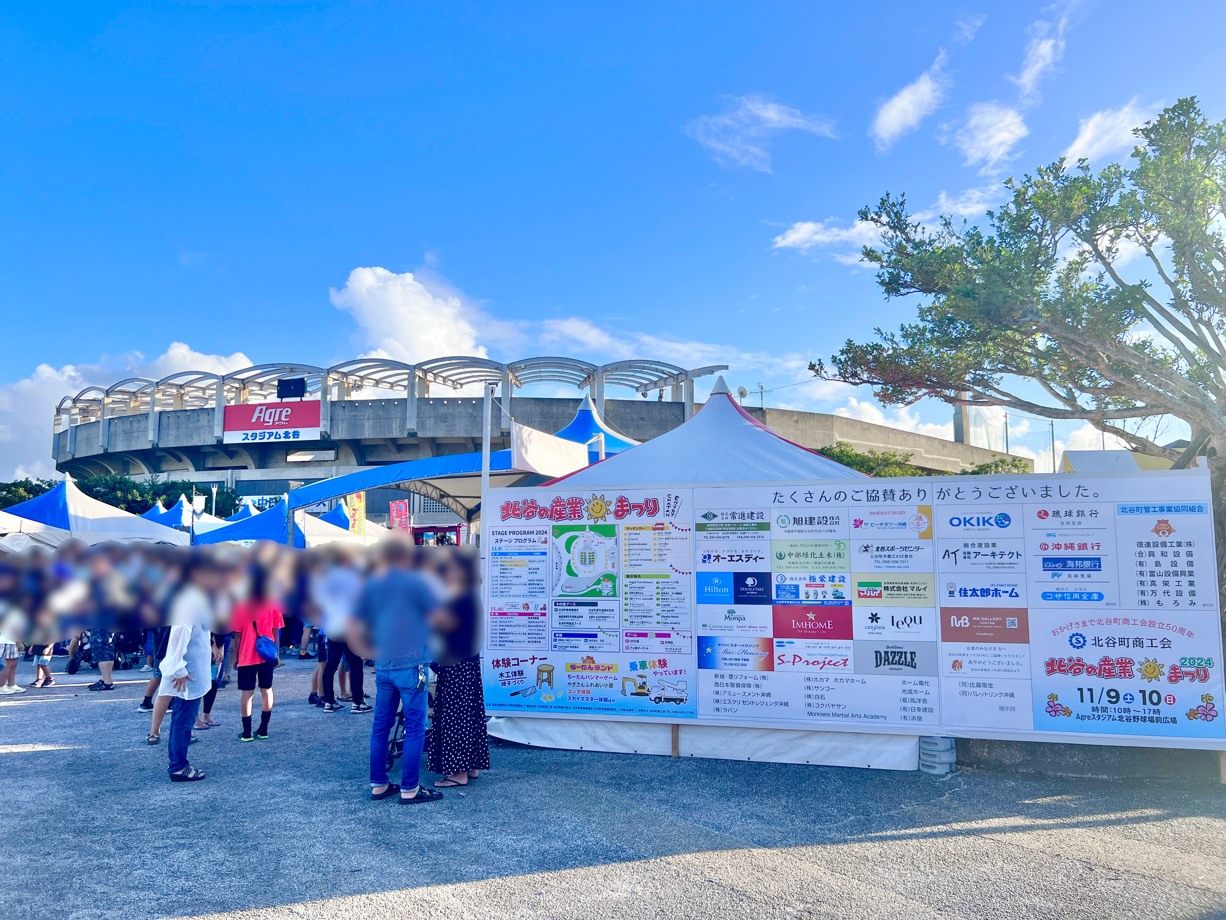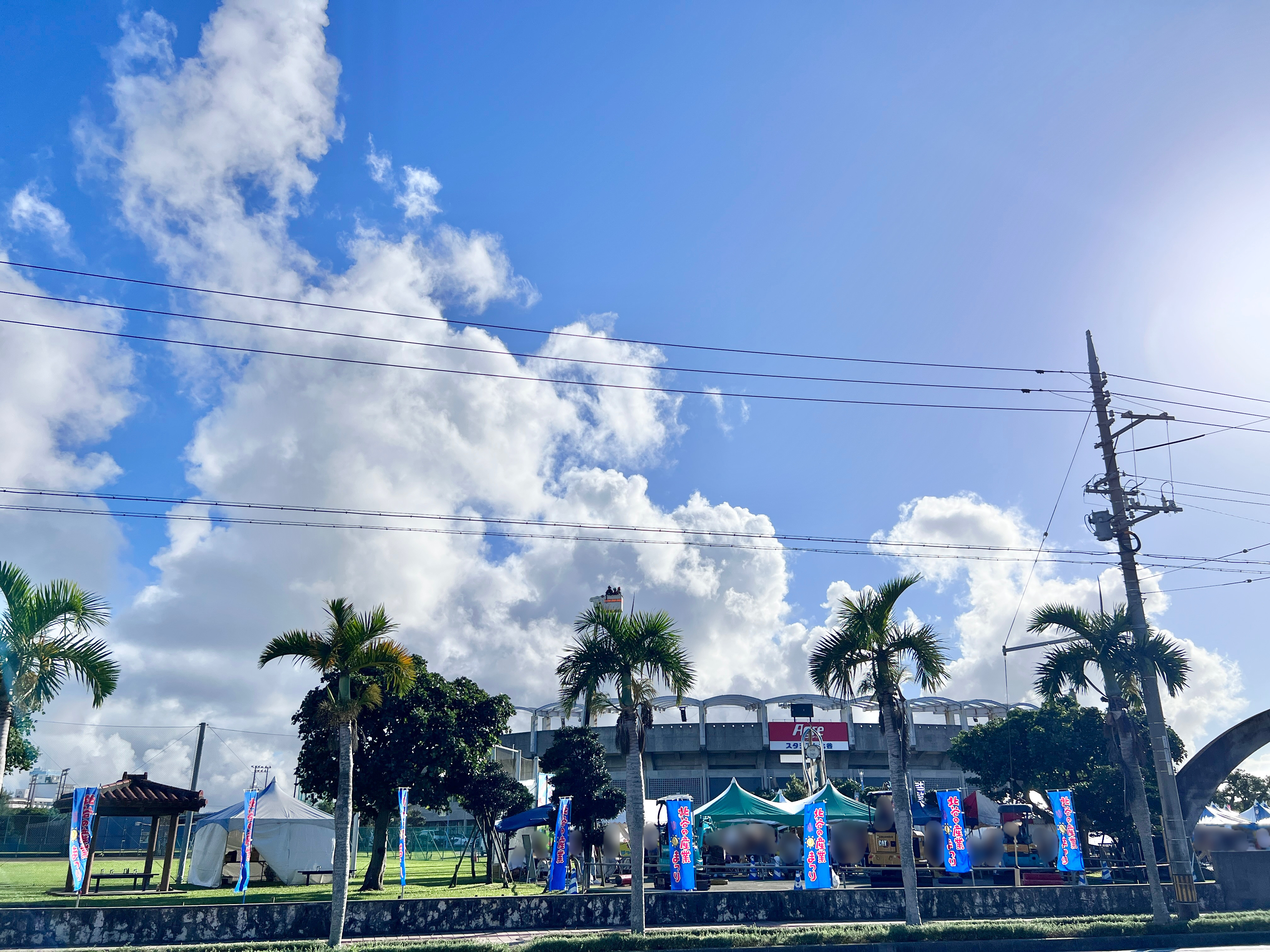 北谷町営美浜駐車場に車を停めて野球場前まで歩いて向かっていると、会場のにぎやかな様子が見えてきました☆