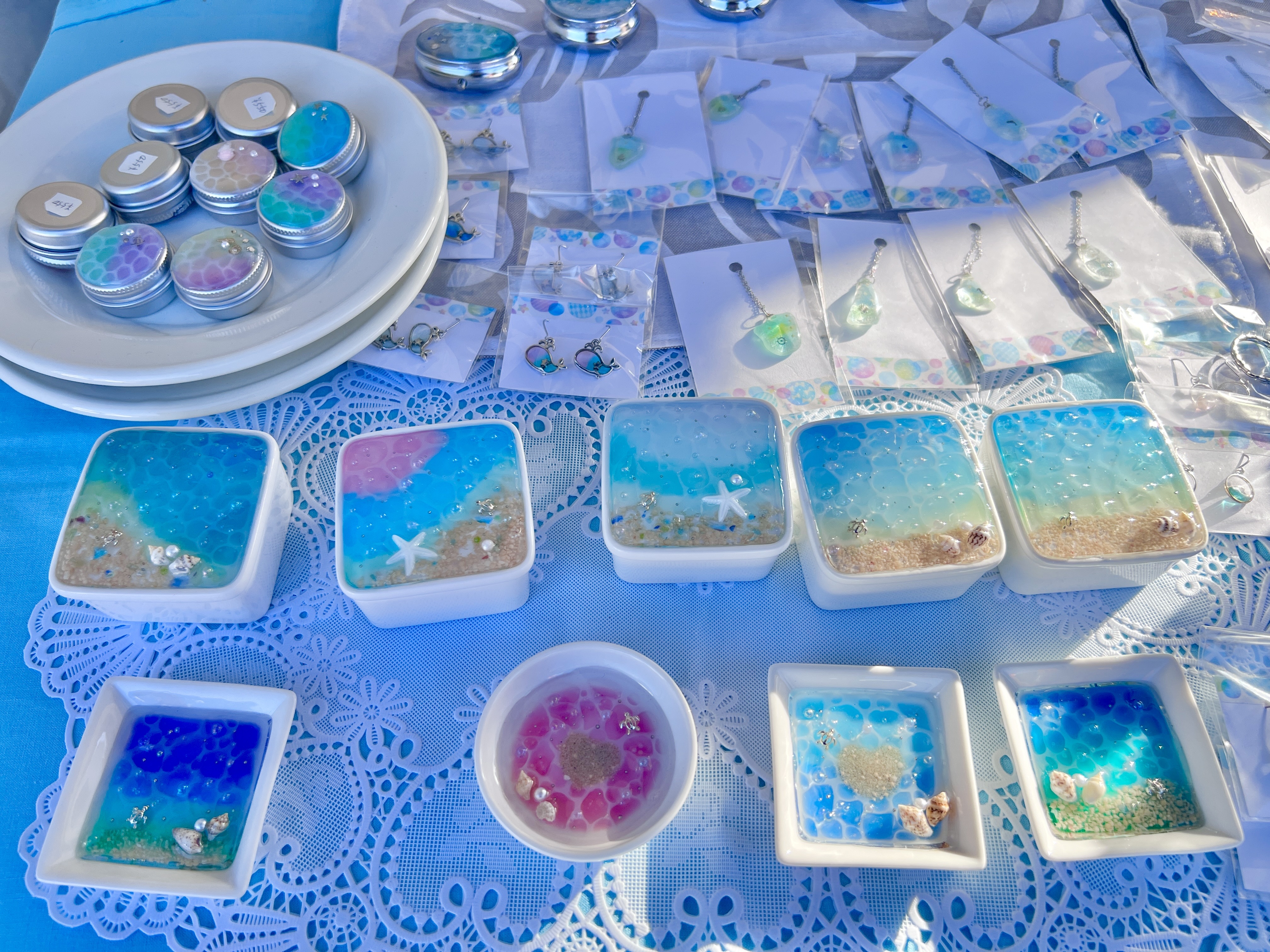 沖縄県内のレジンアーティスト・HIKARU氏とのコラボ作品で、美ら海アートキーホルダーです。
