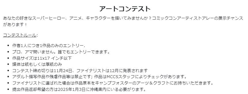 2024年12月8日(日)に、キャンプ・フォスター内で『コミック コン オキナワ』が開催されますよー!