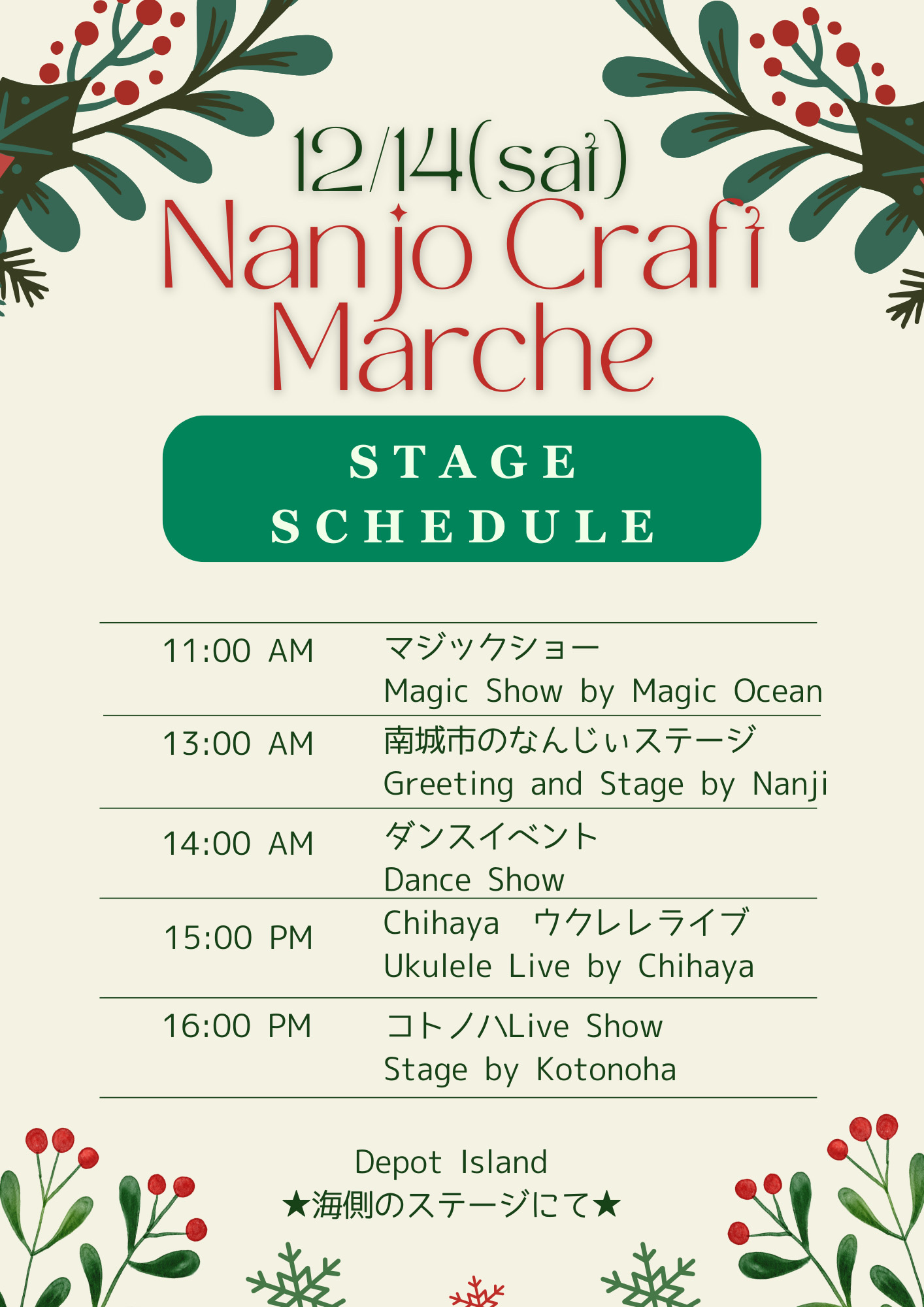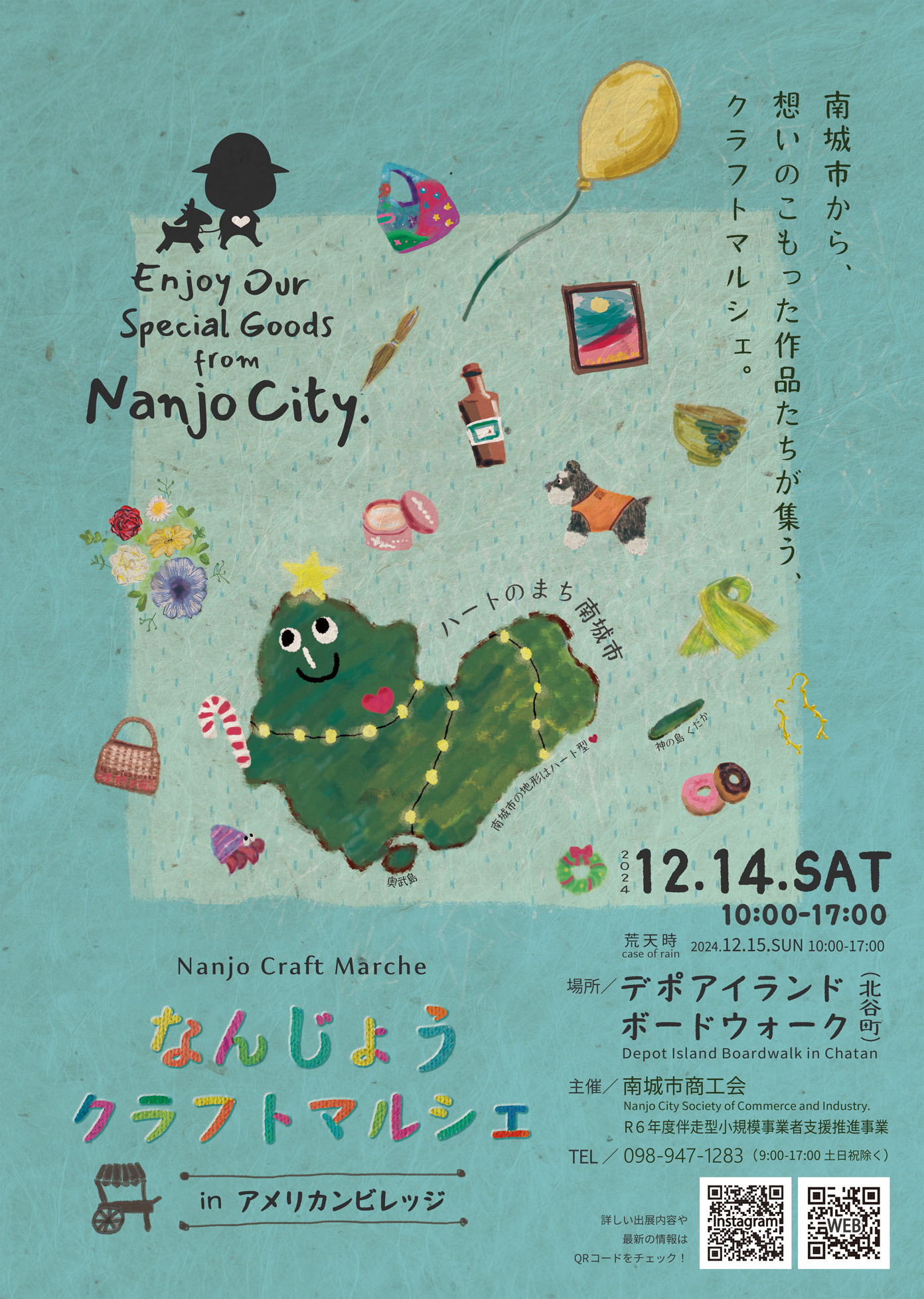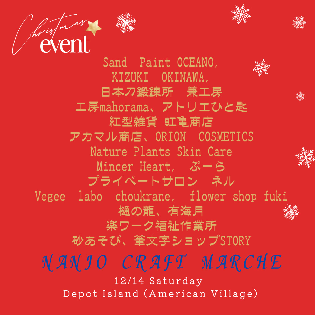 2024年12月14日(土)に、北谷町美浜のデポアイランド・ボードウォークにて『なんじょうクラフトマルシェ』が開催されます。