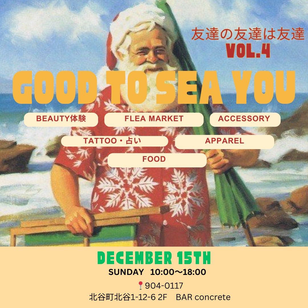 【GOOD TO SEA YOU Vol.4】 日にち:2024年12月15日(日) 時 間:10:00~18:00 場 所:Bar Concrete(バー コンクリート) 住 所:沖縄県中頭郡北谷町北谷1-12-6 2F