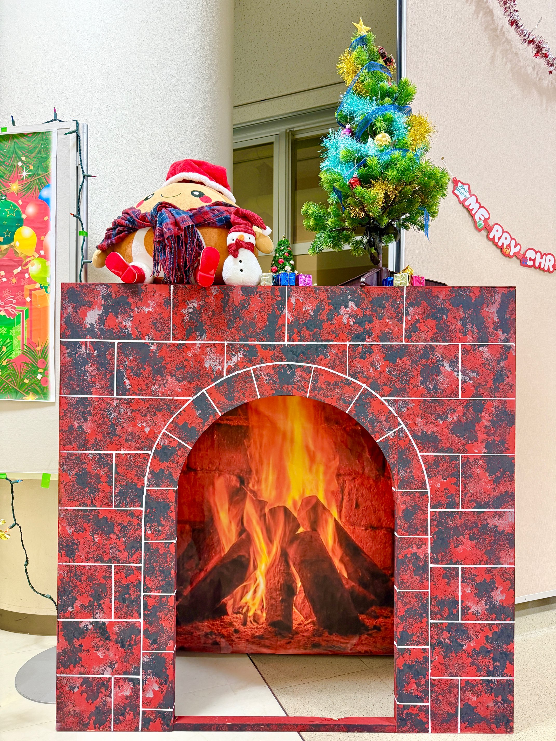 こちらの暖炉のオブジェは、なんと「北谷町子ども劇団-NIRAI-」の劇中で使われた小道具なんだそうです。