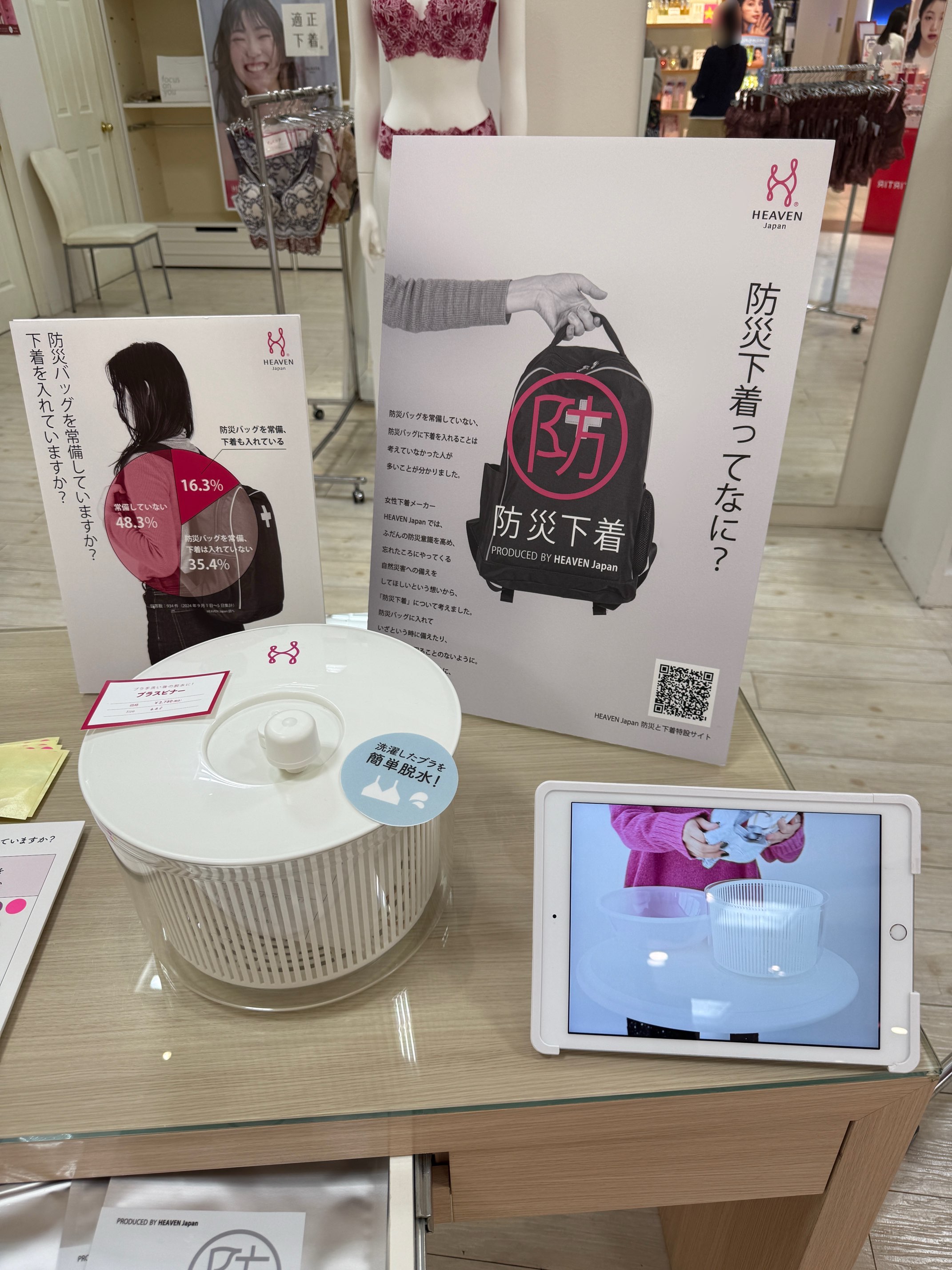 期間限定で開催されているポップアップストアでは、「防災下着コーナー」をもうけています。
