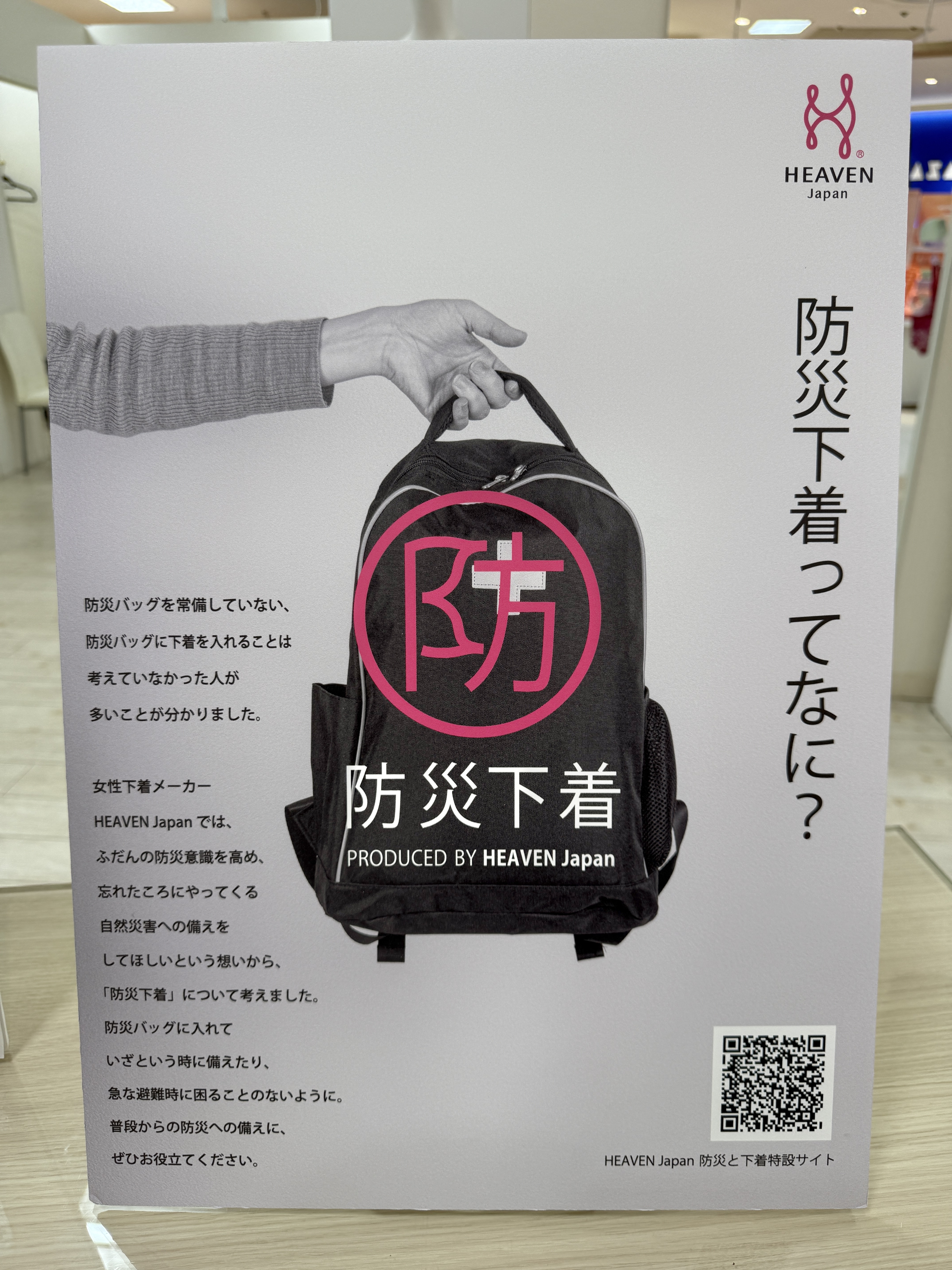 災害時における下着の重要性を広く伝えるため、ヘブンジャパンは、2022年より自社HPやSNSを