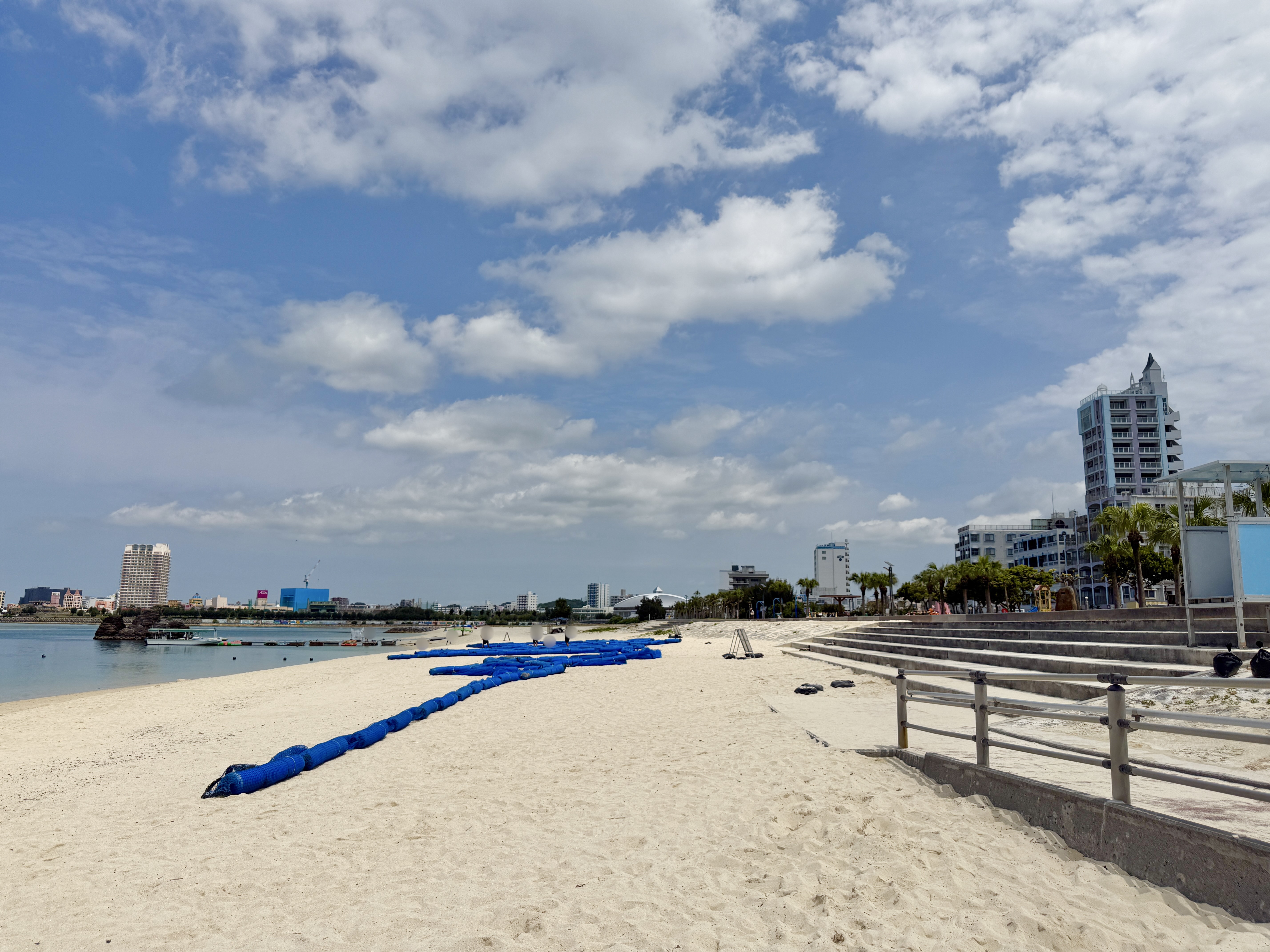 アラハビーチではまだ遊泳はできませんが、砂浜では日光浴を楽しまれている方がすでにいらっしゃいます。