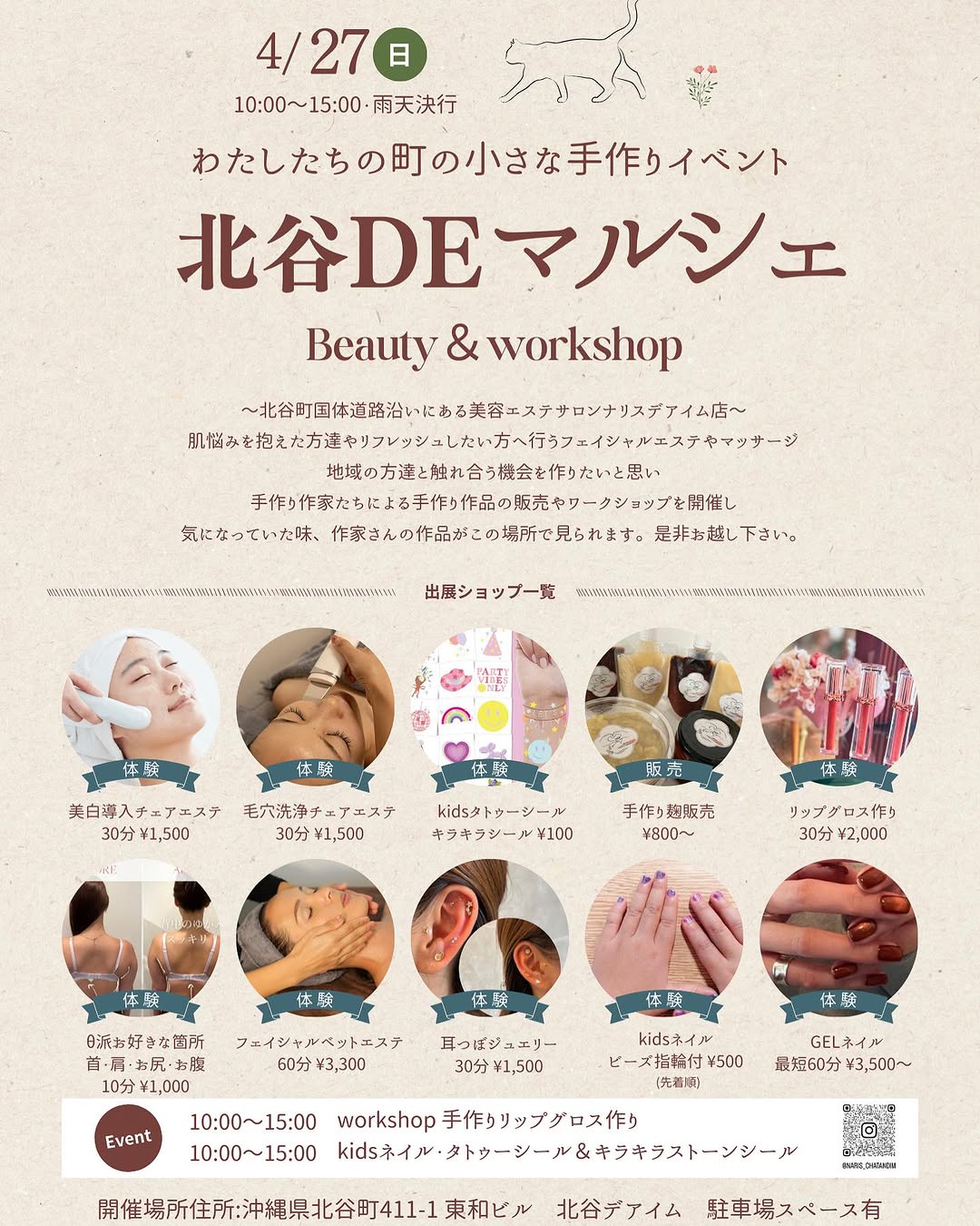 場所は、国体道路沿いのトータルビューティーサロン「ナリス北谷デアイム」にておこなわれます。
