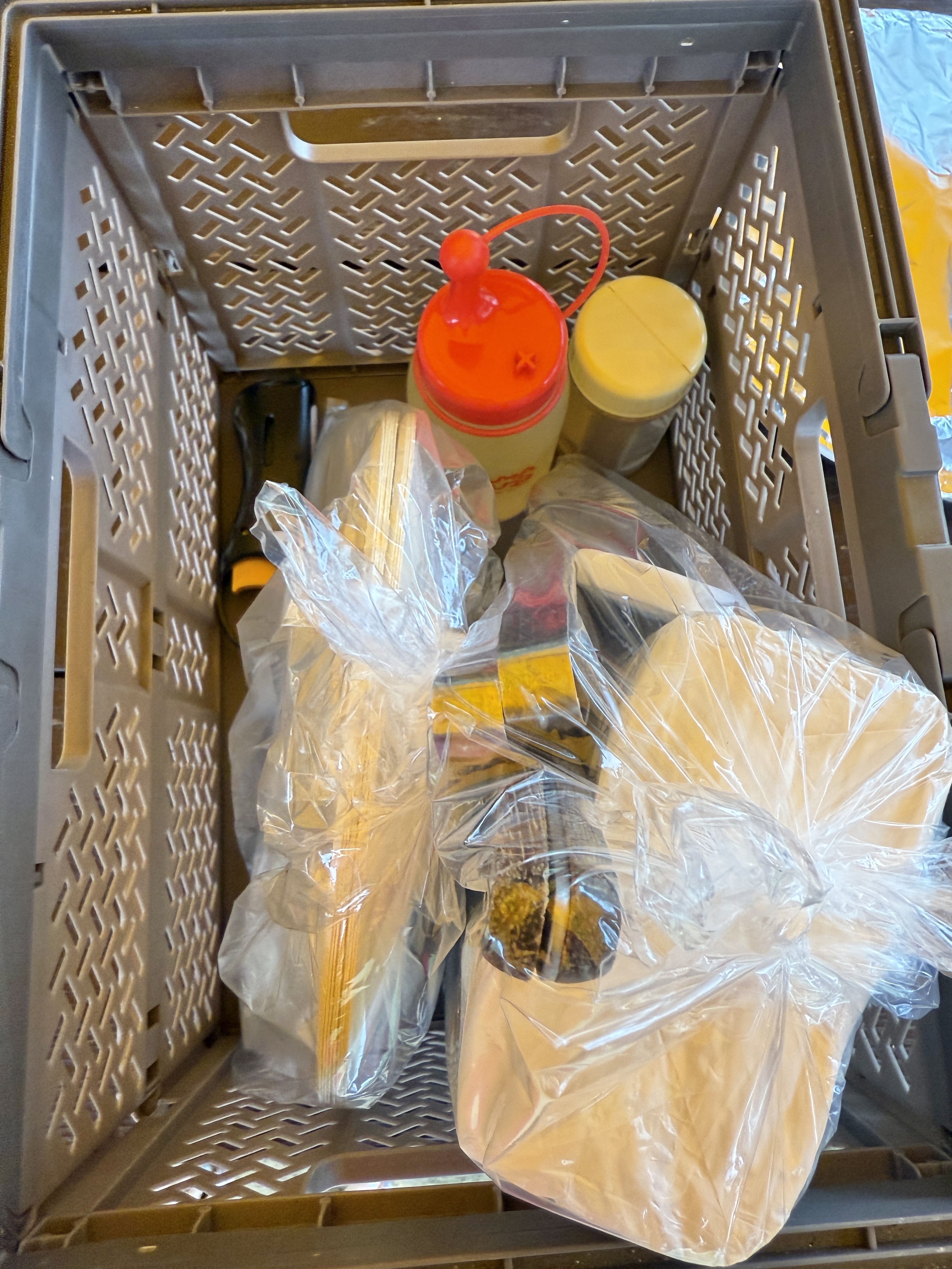 (紙皿、お箸、油、キッチンペーパー、トングなど必要なツールも付いてます)