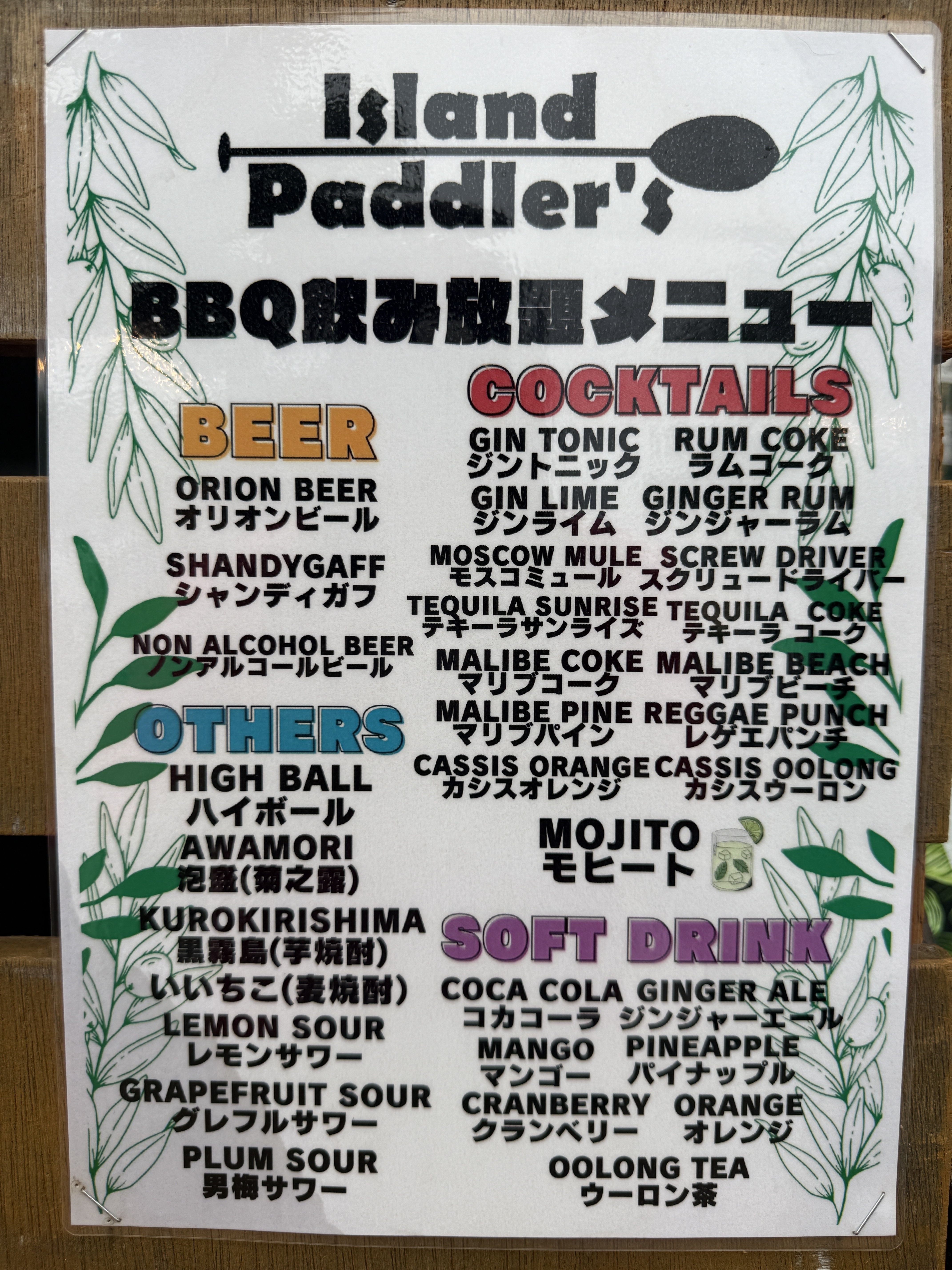 「ISLAND BBQ」プランは、飲み放題付きなので飲み物の持ち込みは不可です。