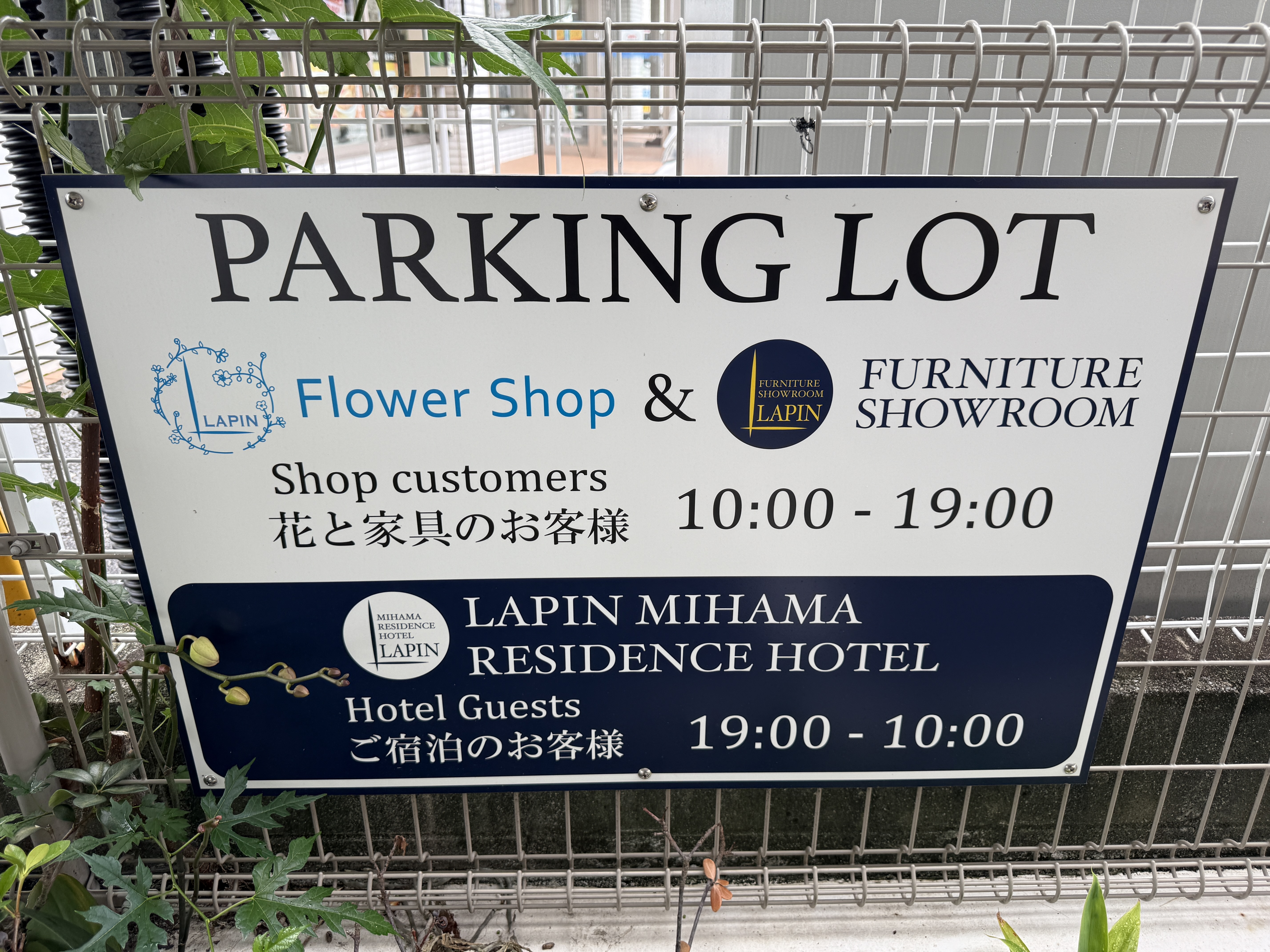 ホテル「ラパン ミハマレジデンスホテル」も併設している建物で、お車で行かれる方は、お花屋さんと家具屋さんを利用される方専用の駐車場があります。