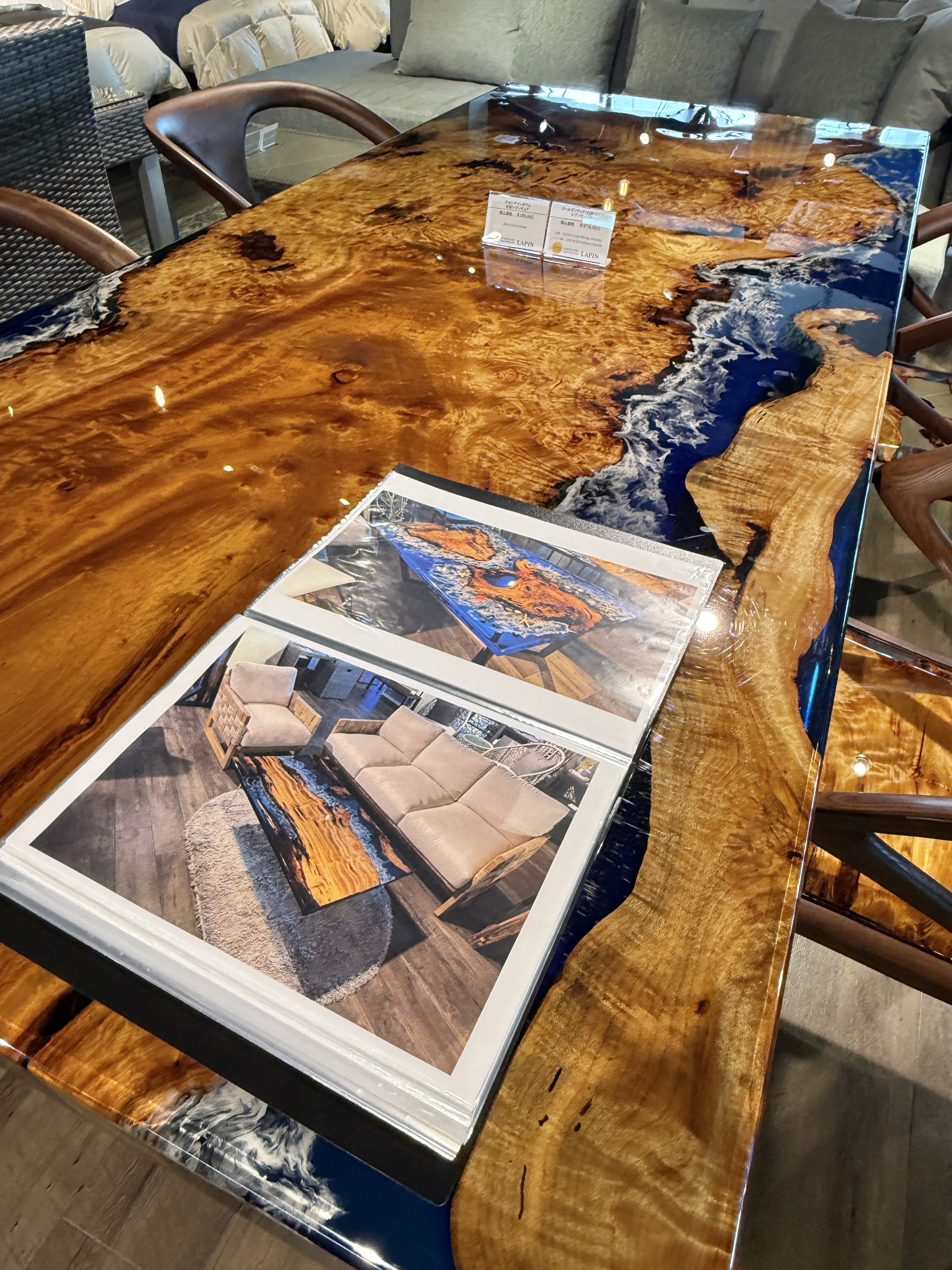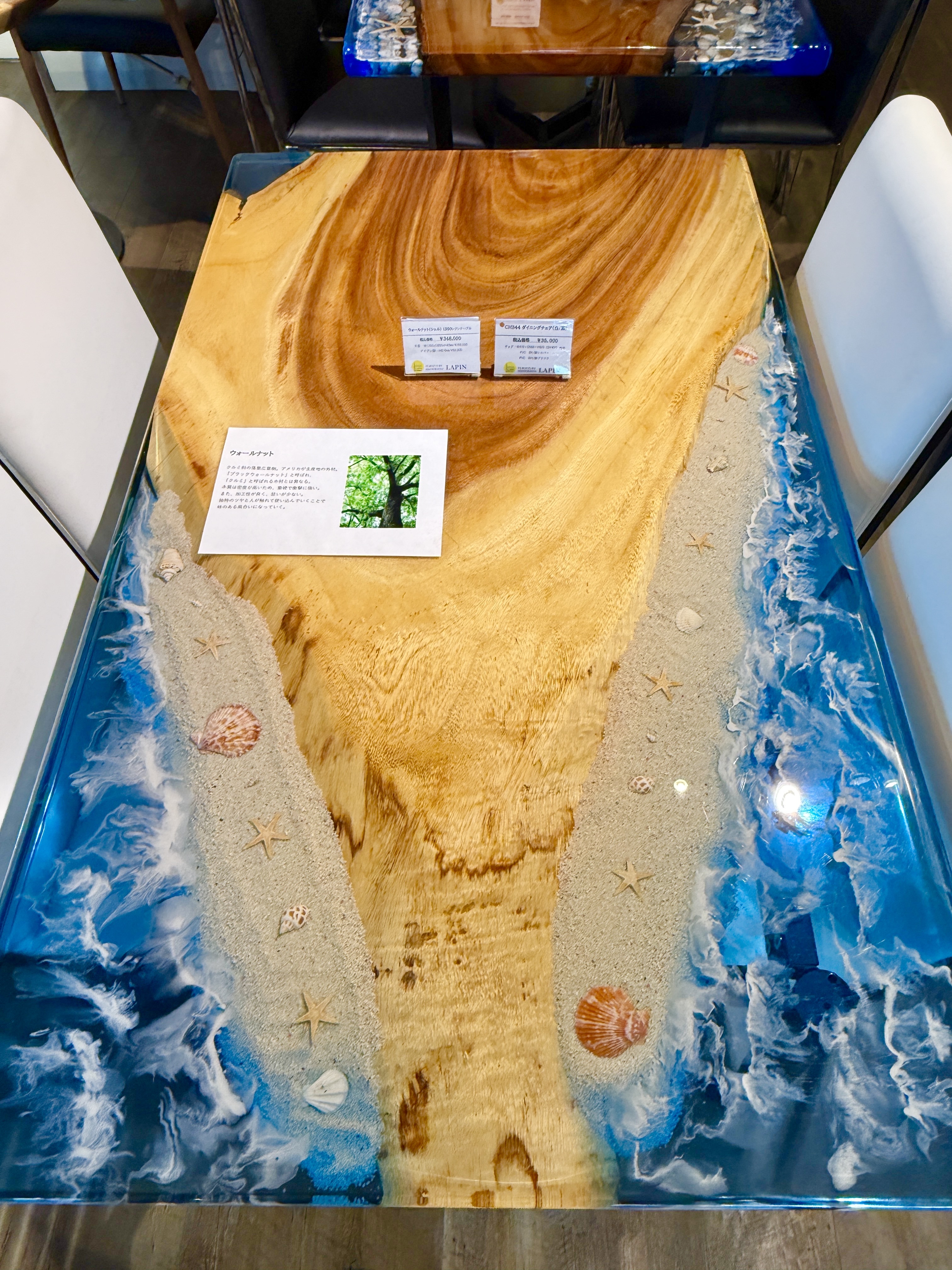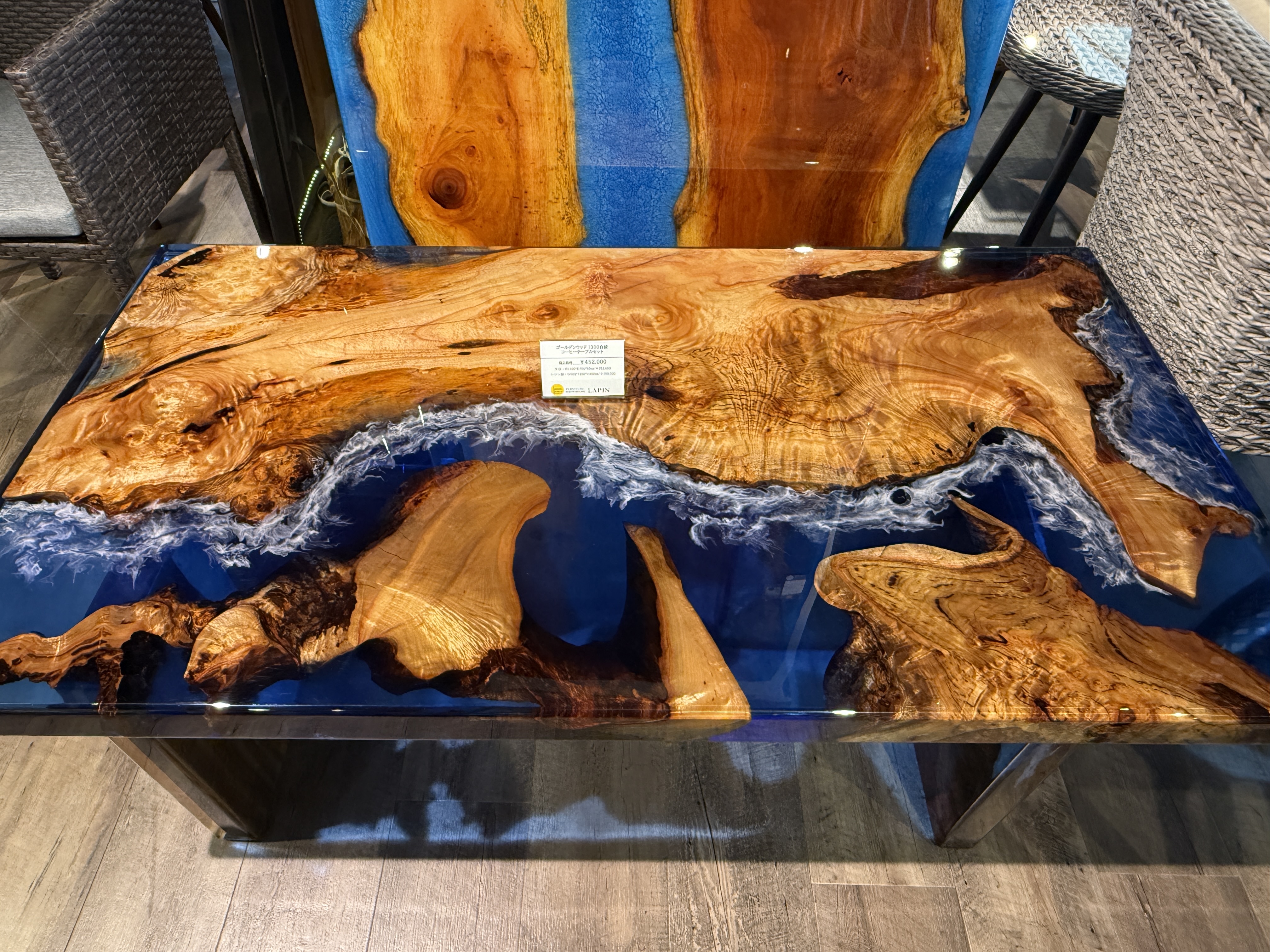 木そのものだけではなく、デザイン性が高いテーブルは、まるでアートとしても堪能できますね~!