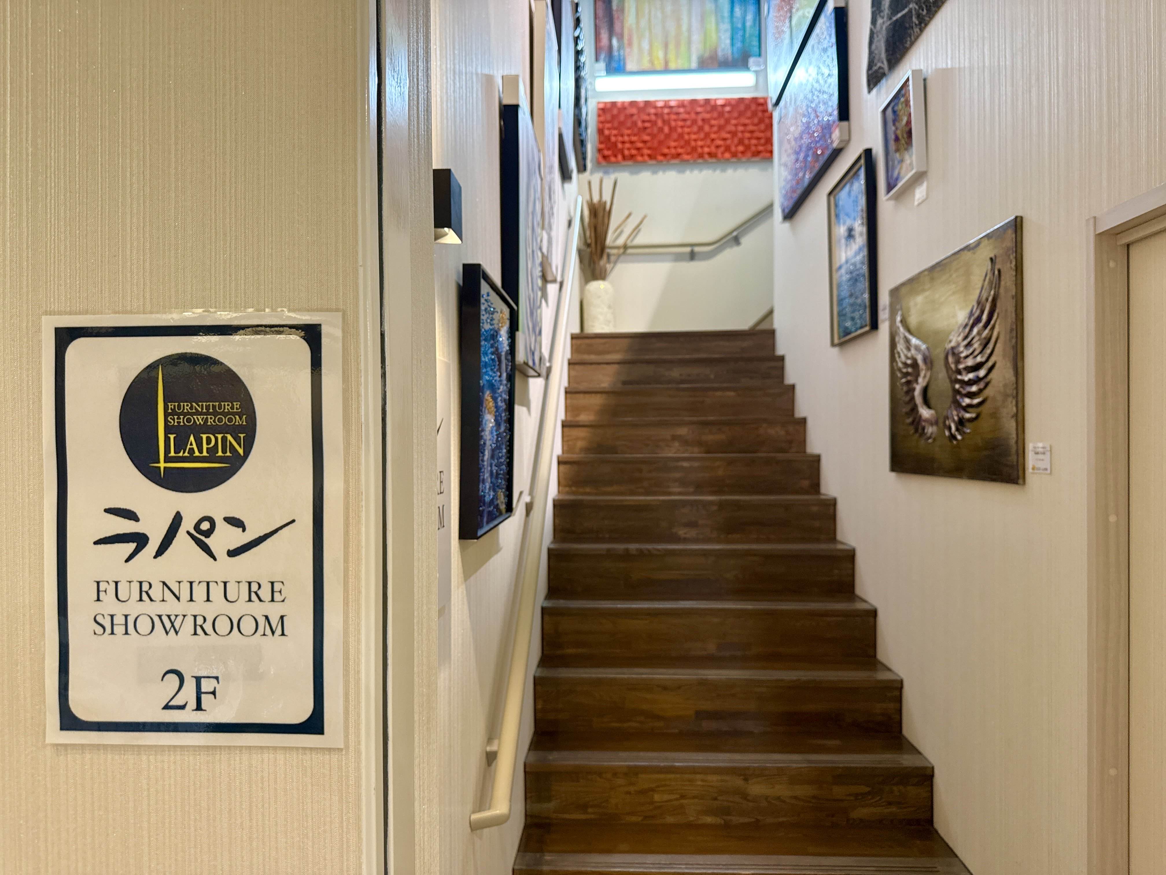 『家具の店ラパン 北谷ショールーム』は、1階にお花屋さん「Flower shop ラパン」があり、家具屋さんは2階にあります。