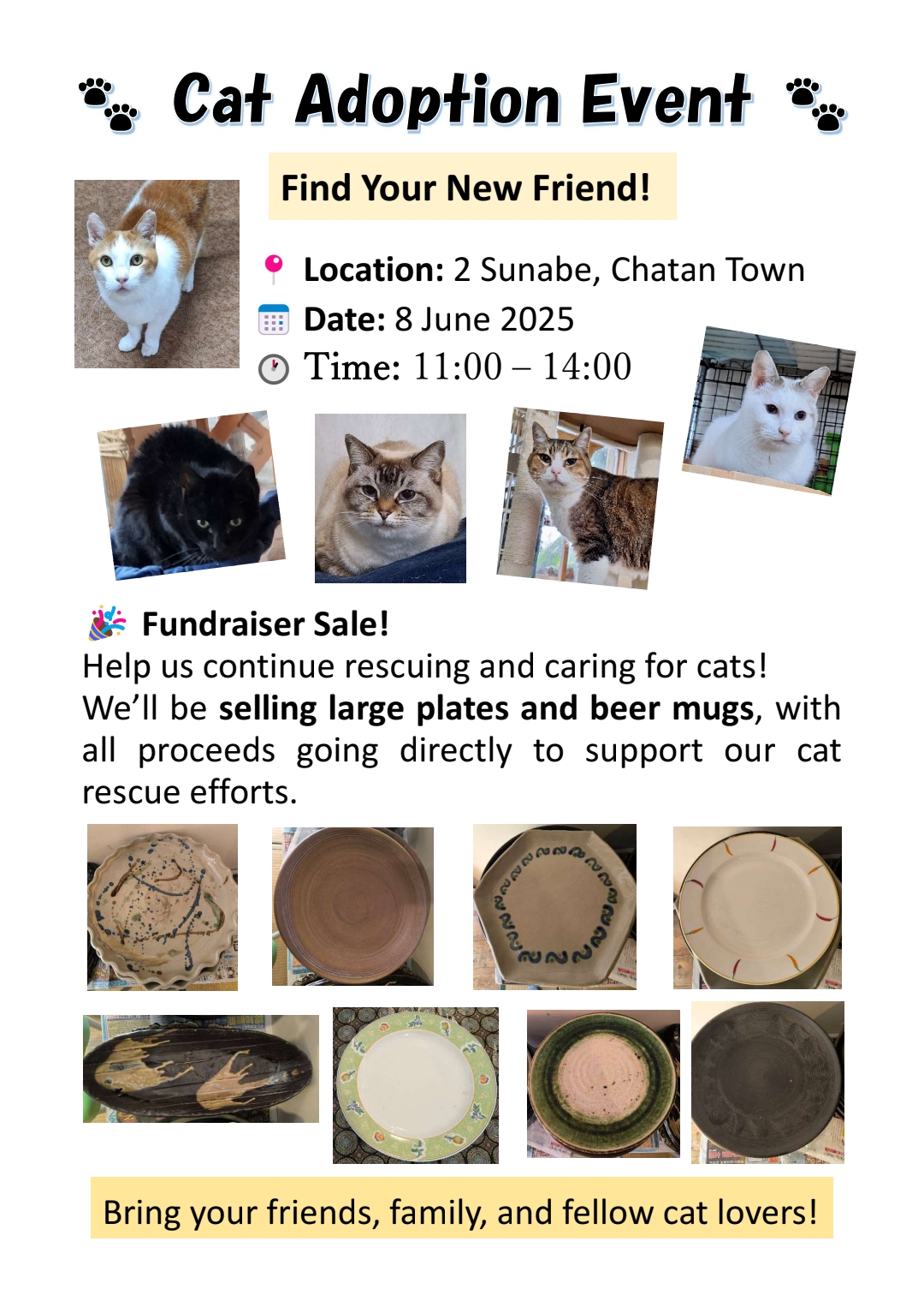 『砂辺子ども弁当』では、ねこ譲渡会も同時開催されます!