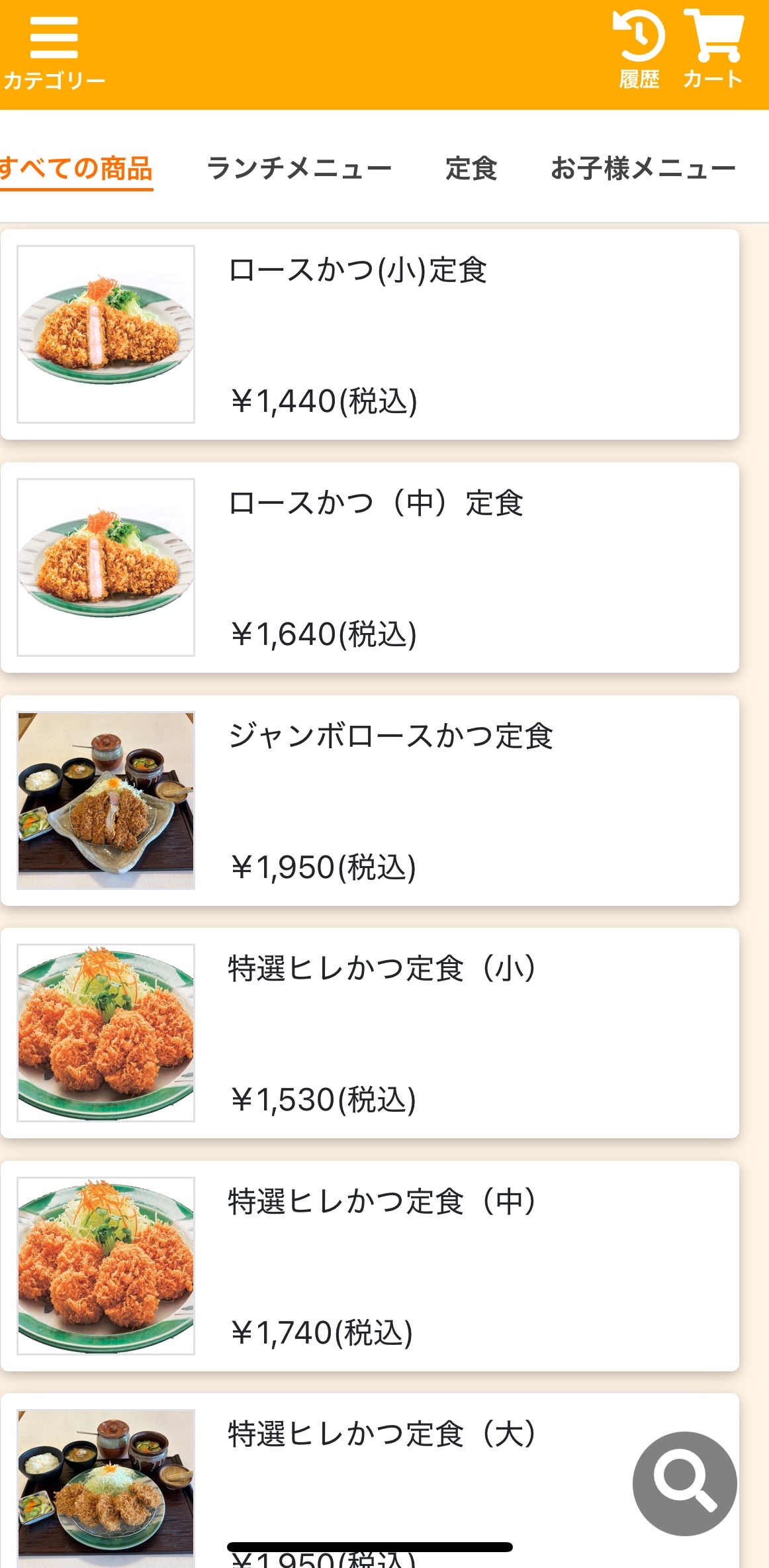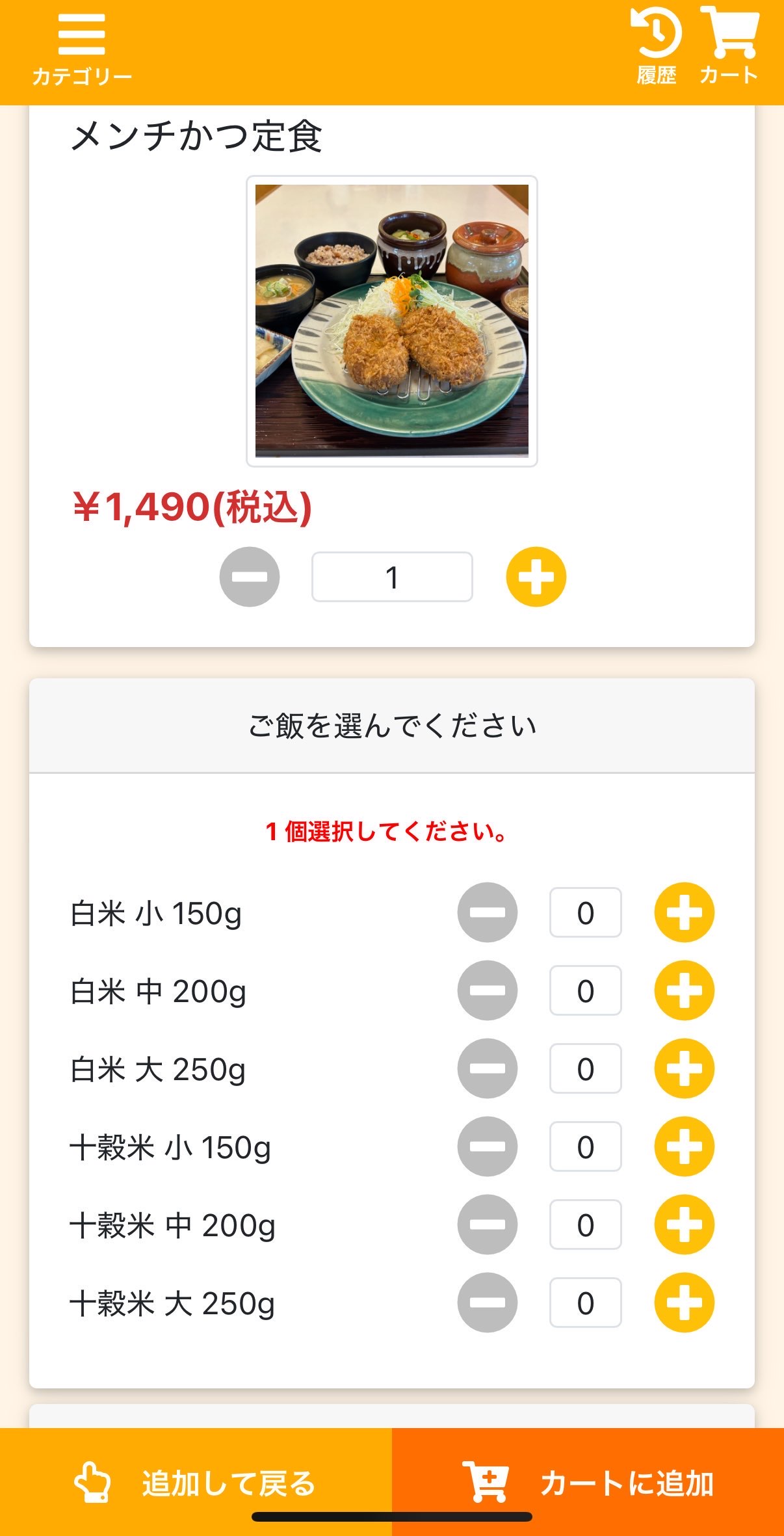 本来は、1,540円(税込)のメンチかつ定食が、50円引き後の料金 1,490円(税込)で表示されています。