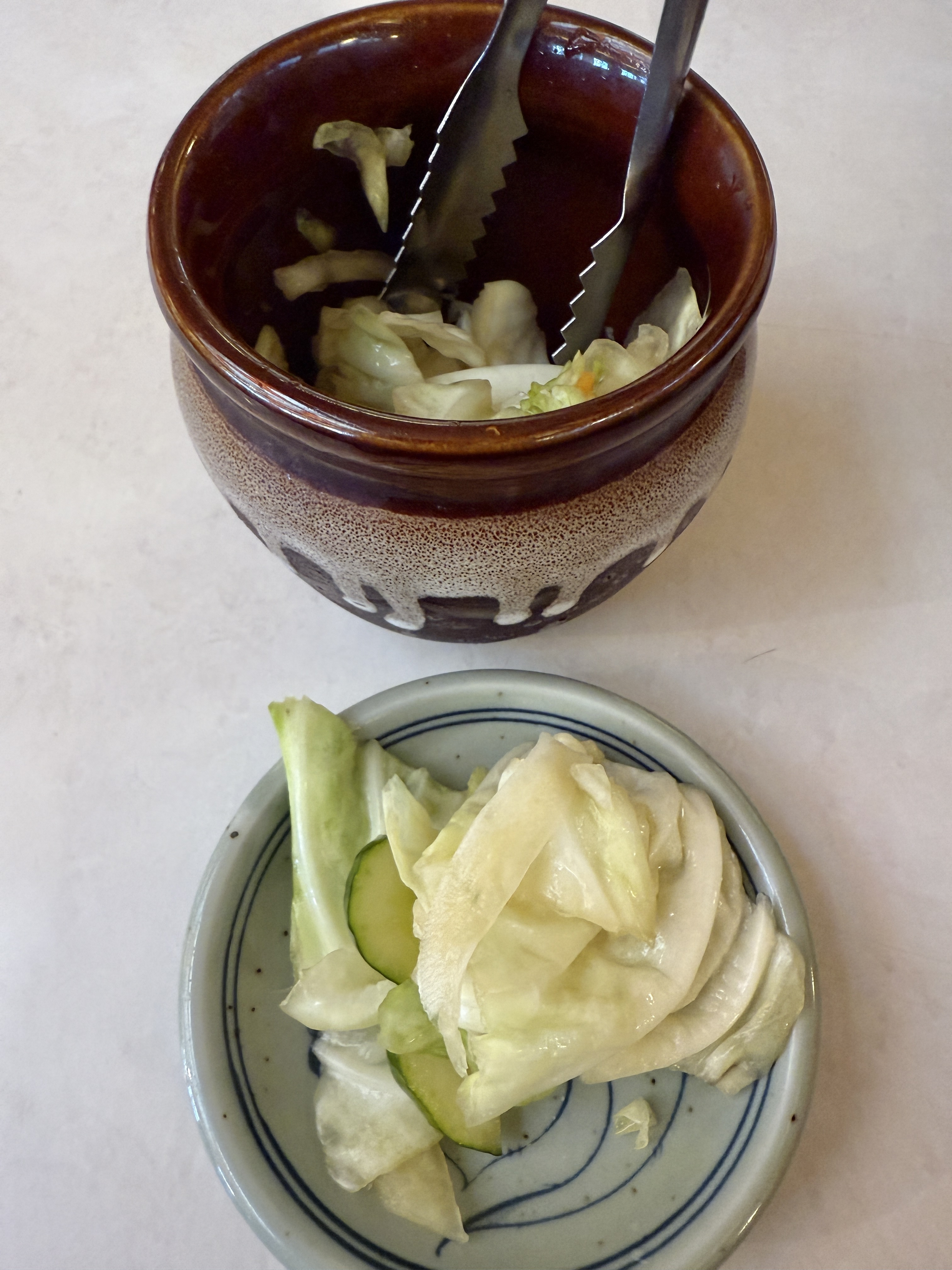 小皿に入ったお漬物をイメージしていましたが、予想を上回り壺に入った大満足の量です。