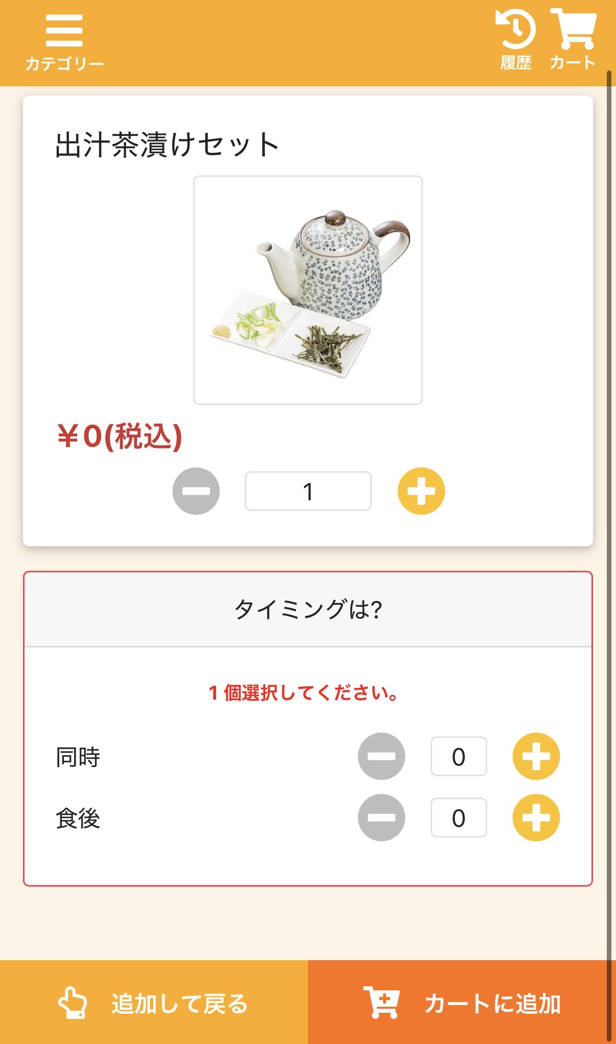 無料のお茶漬けもスマホからオーダーできます。