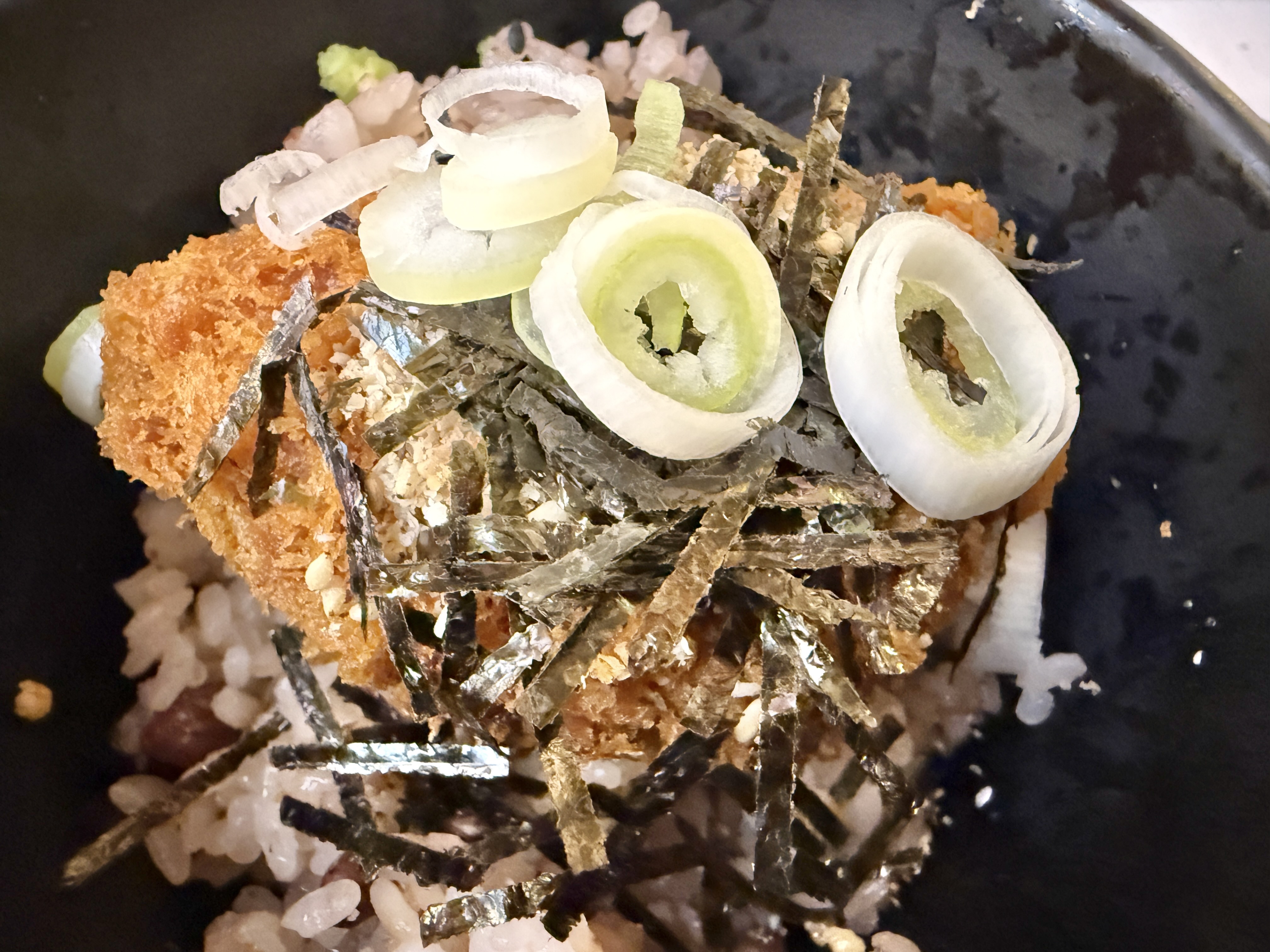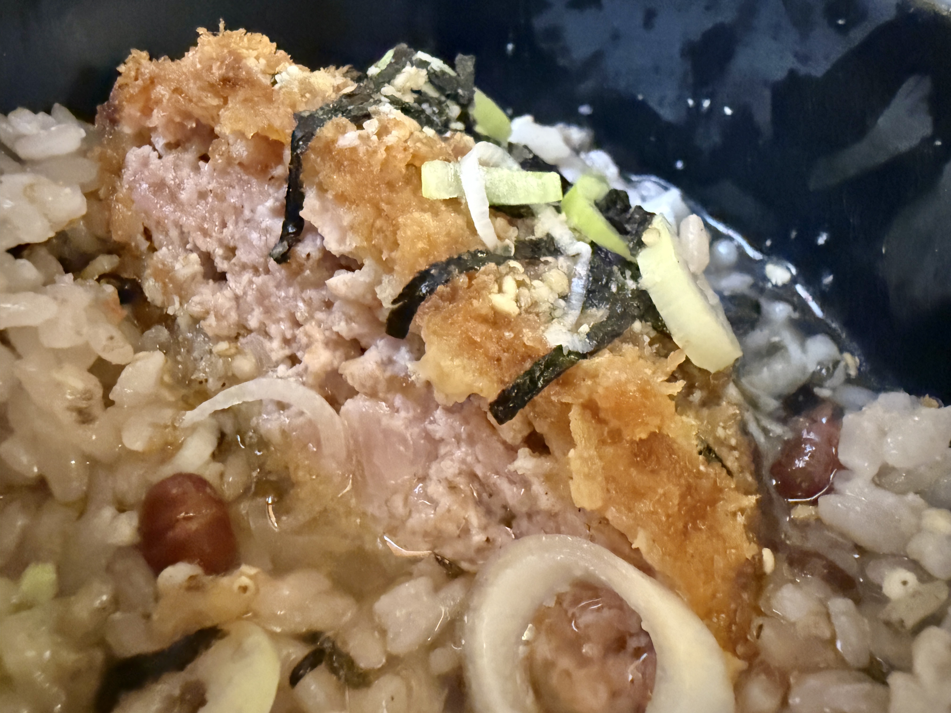 五臓六腑に染み渡る優しい味付けの出汁に、十穀米とメンチかつで贅沢にいただきました♪