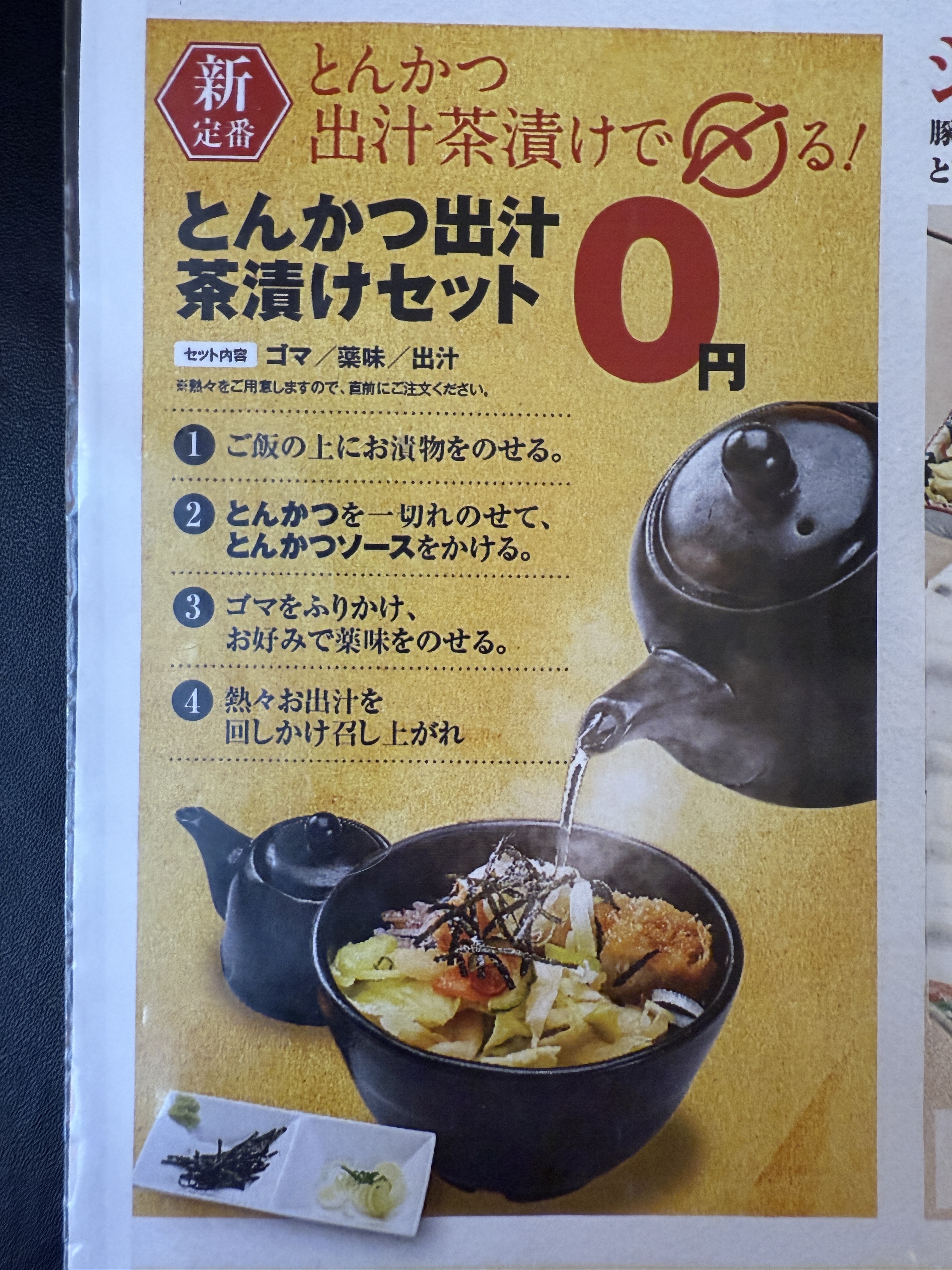 パクパクと食べ進めていると、「とんかつ出汁茶漬けセット」をみつけました!