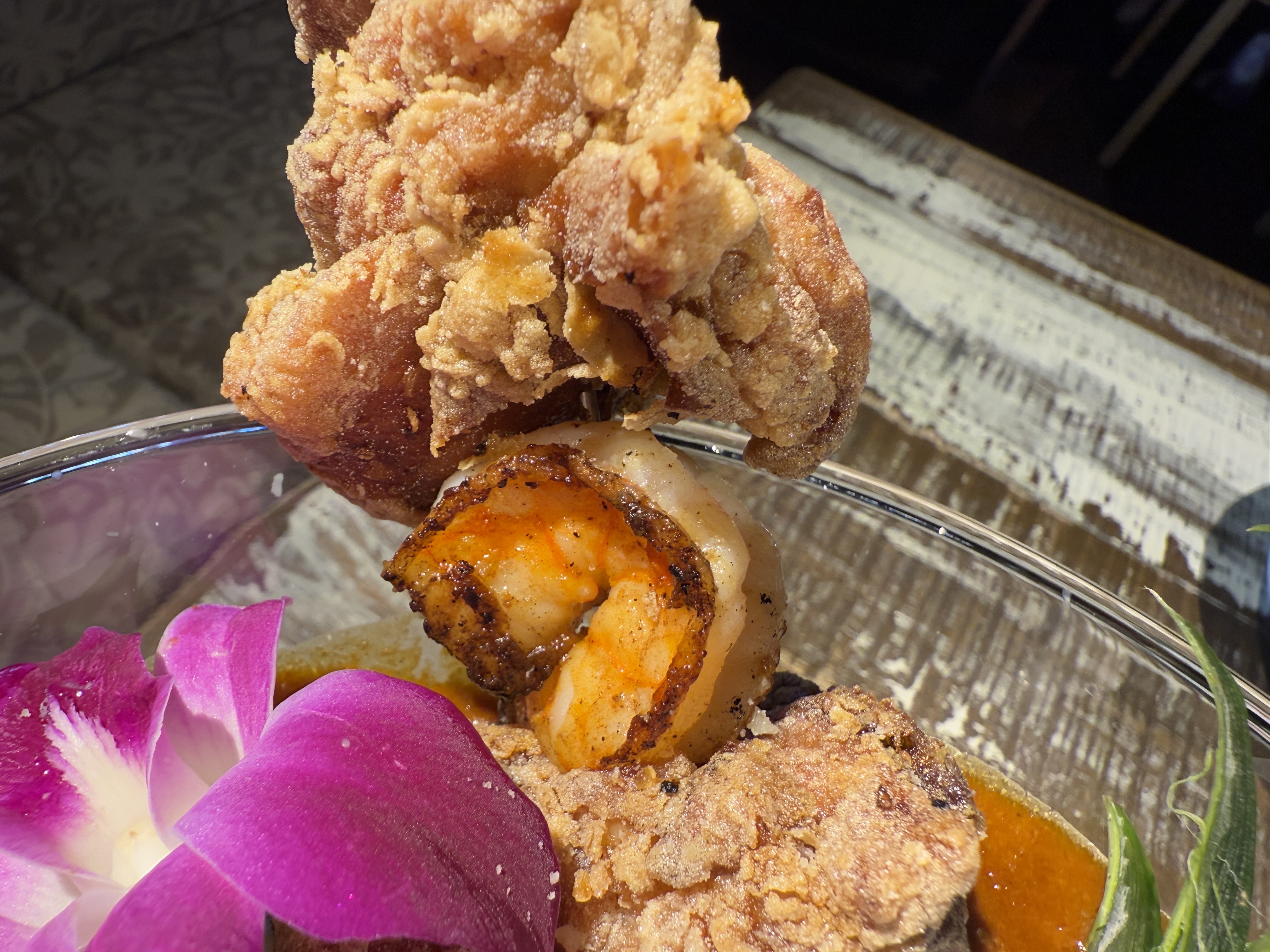 串にささったチキンとエビは、贅沢にも2個ずつどーん!と入っていてインパクト大です。