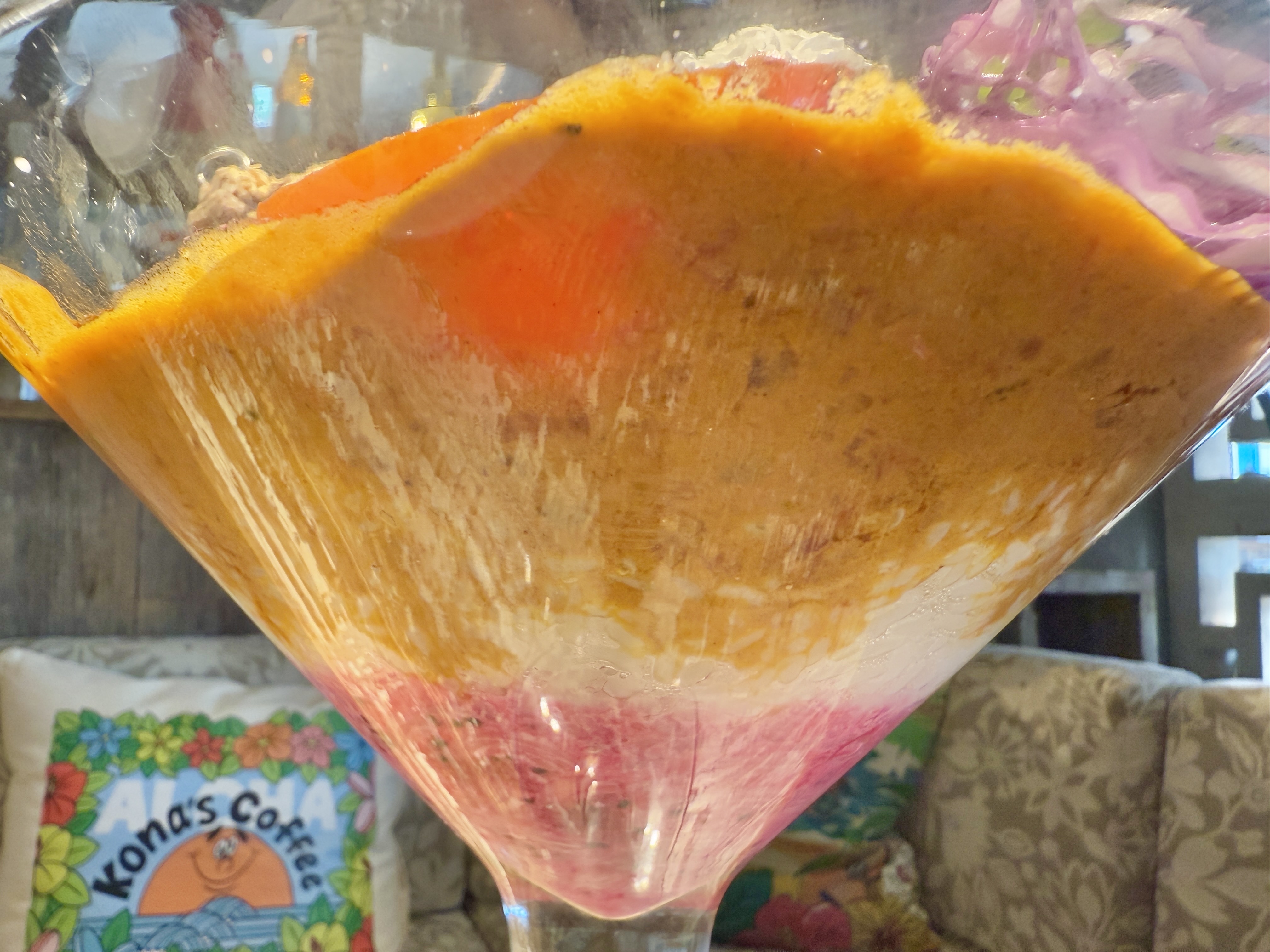 初めてみるほどの大きなカクテルグラスには、色とりどりのたくさんの具材が入っていてテンション上がります~!