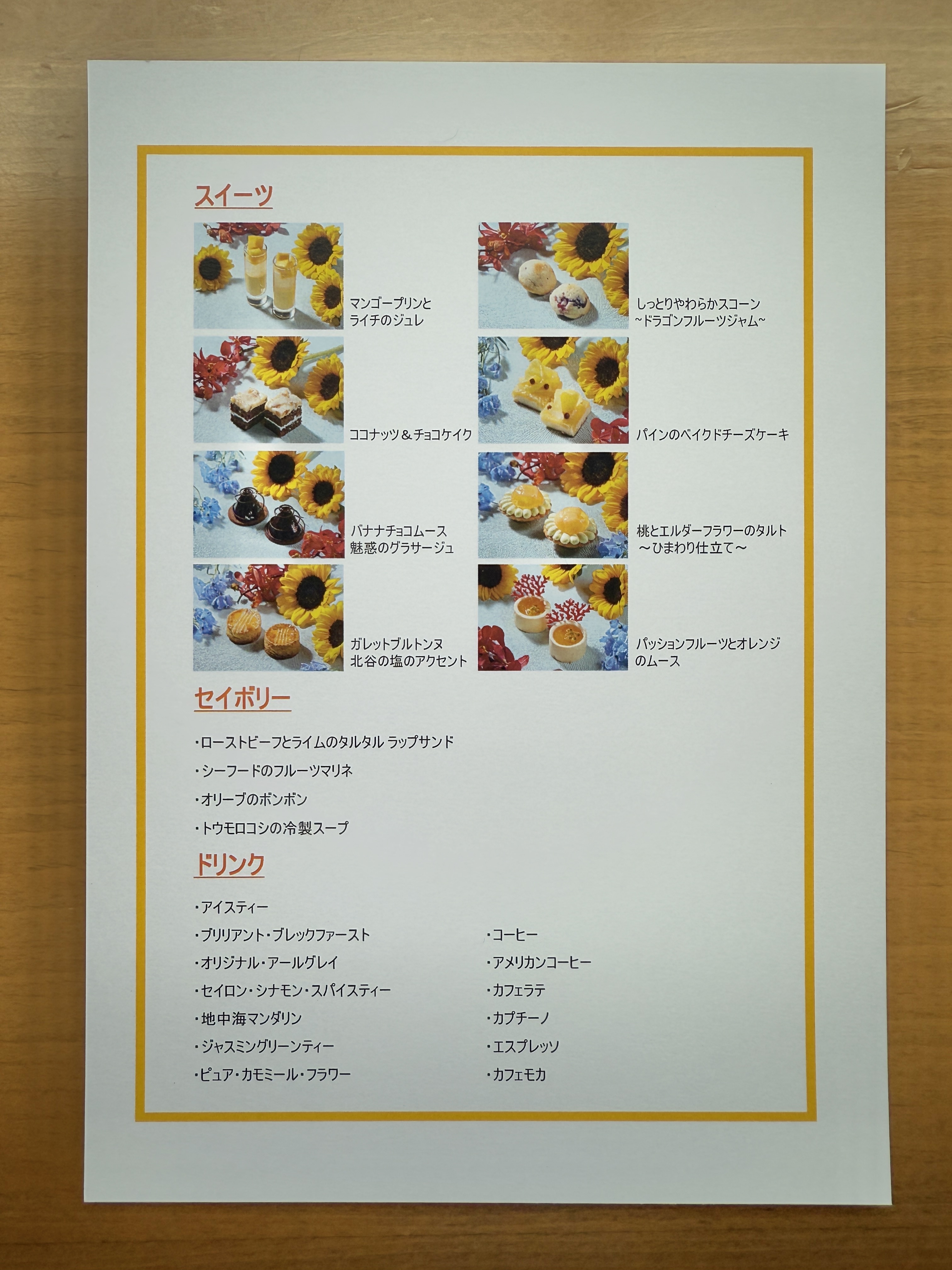 『トロピカルアフタヌーンティー』のメニューは、日本語版と英語版があります。